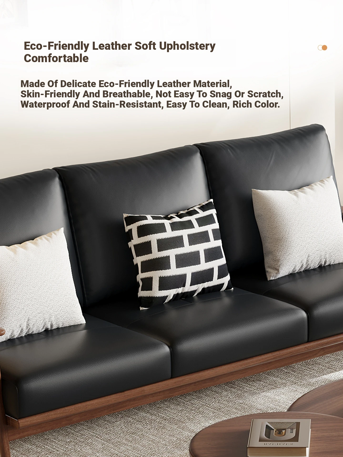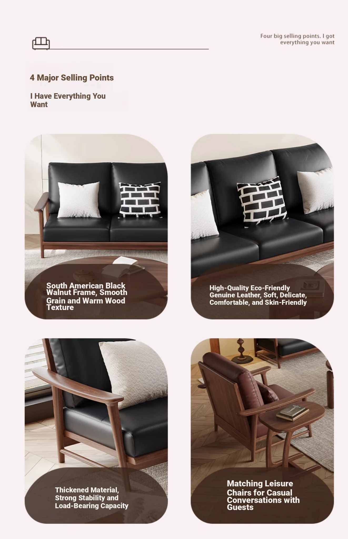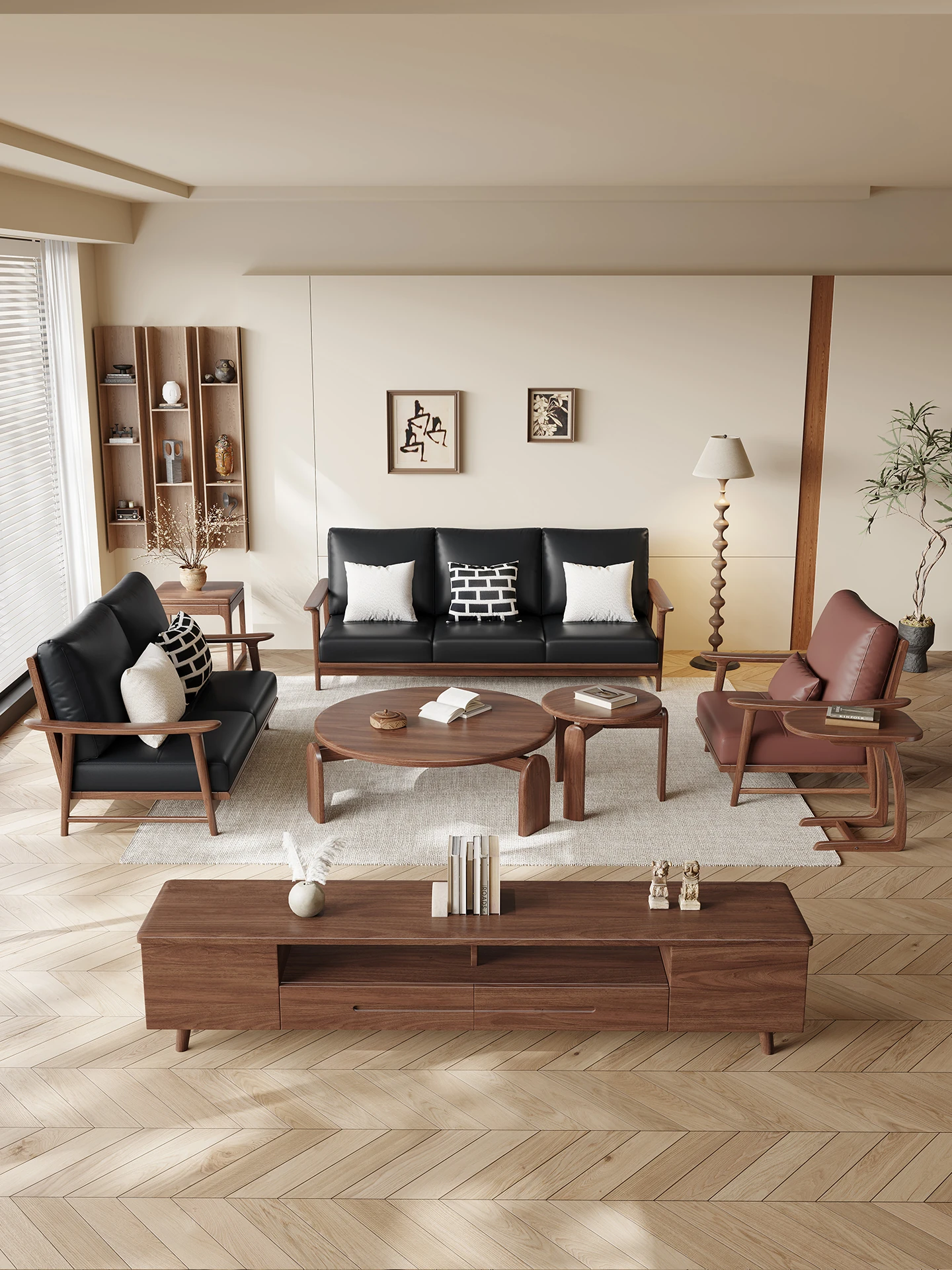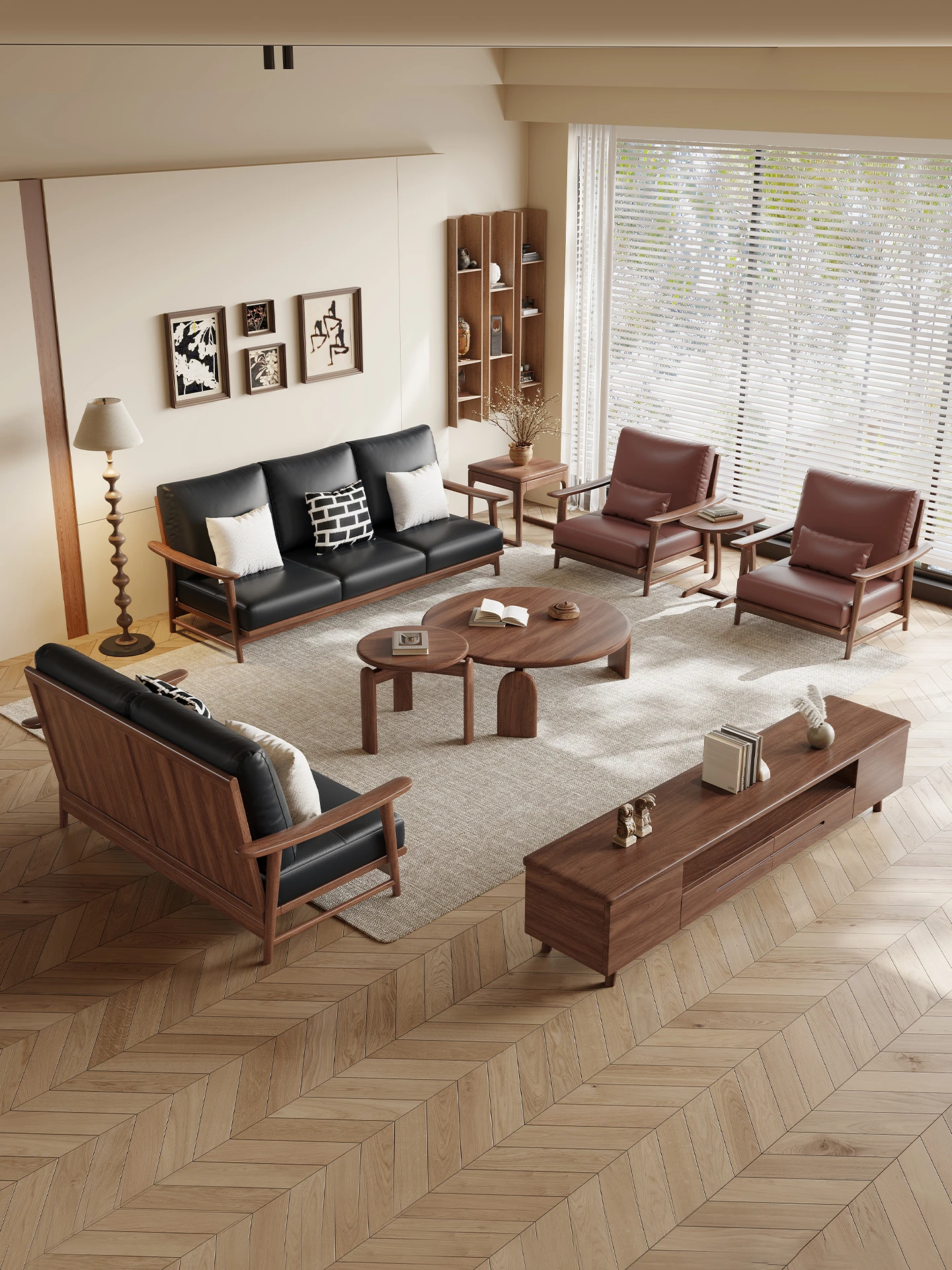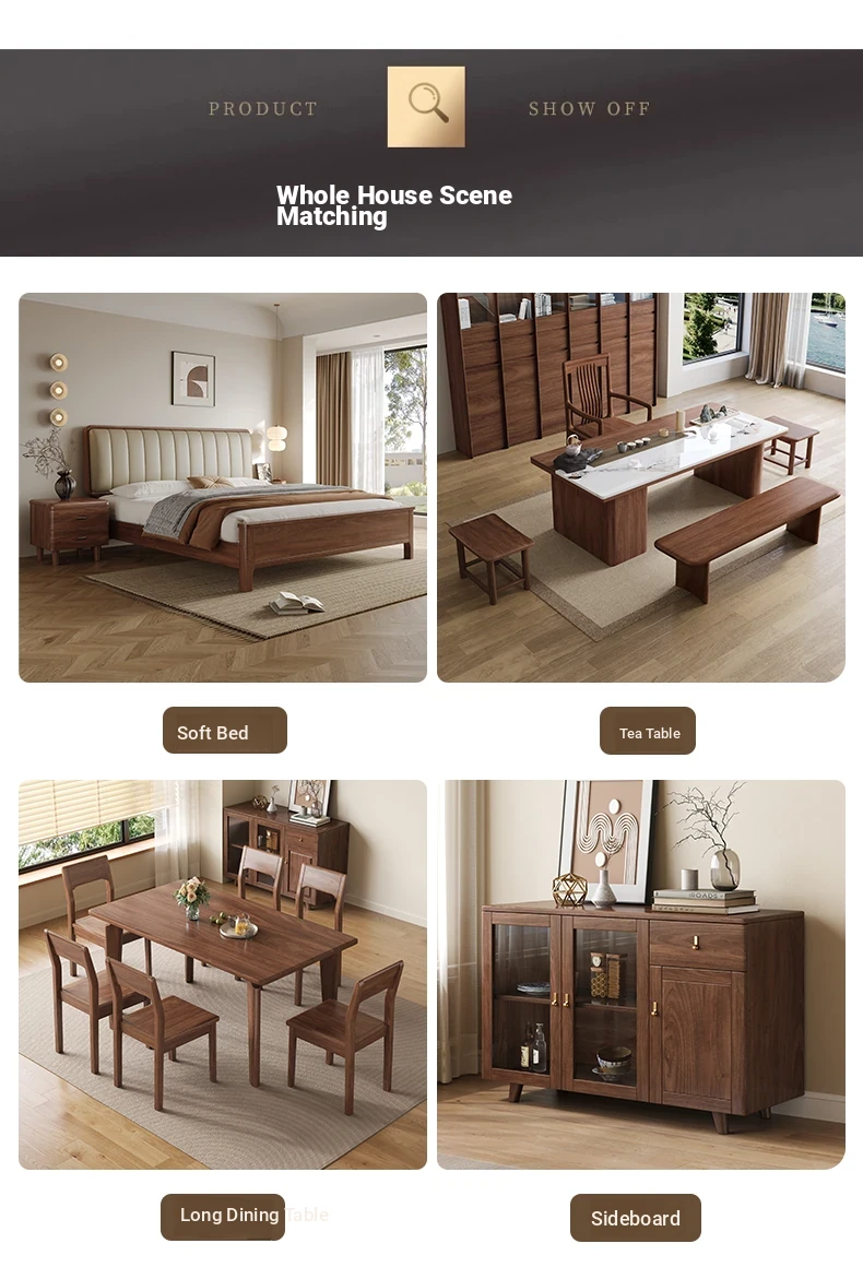 Modern Minimalist Walnut Solid Wood Sofa Set - Genuine Leather for Spacious Villas and Cozy Homes - Zen-inspired Chinese Style Living Room Furniture