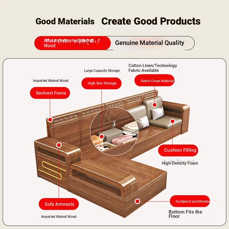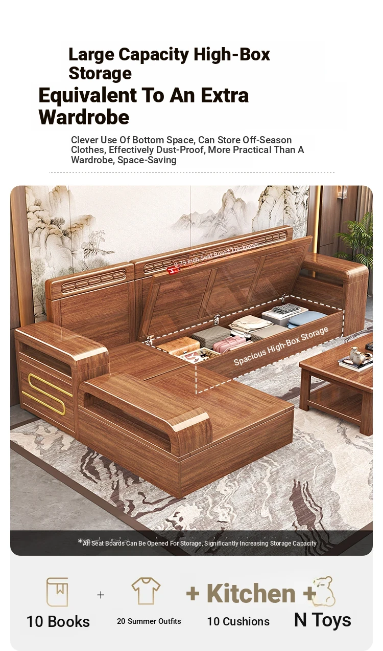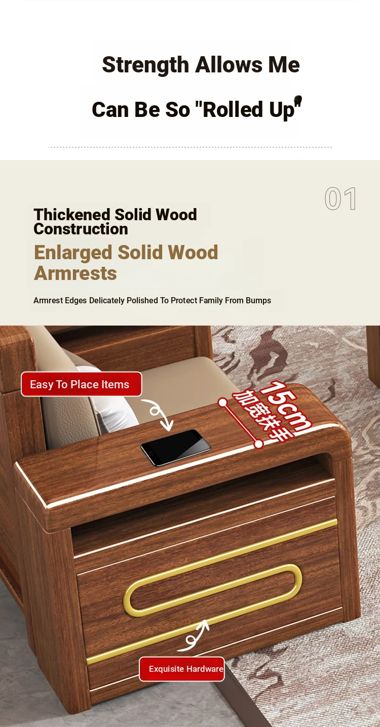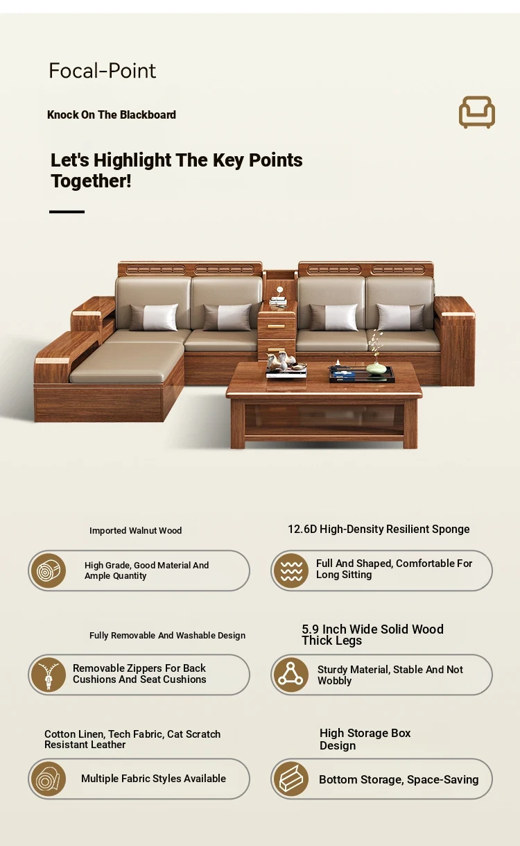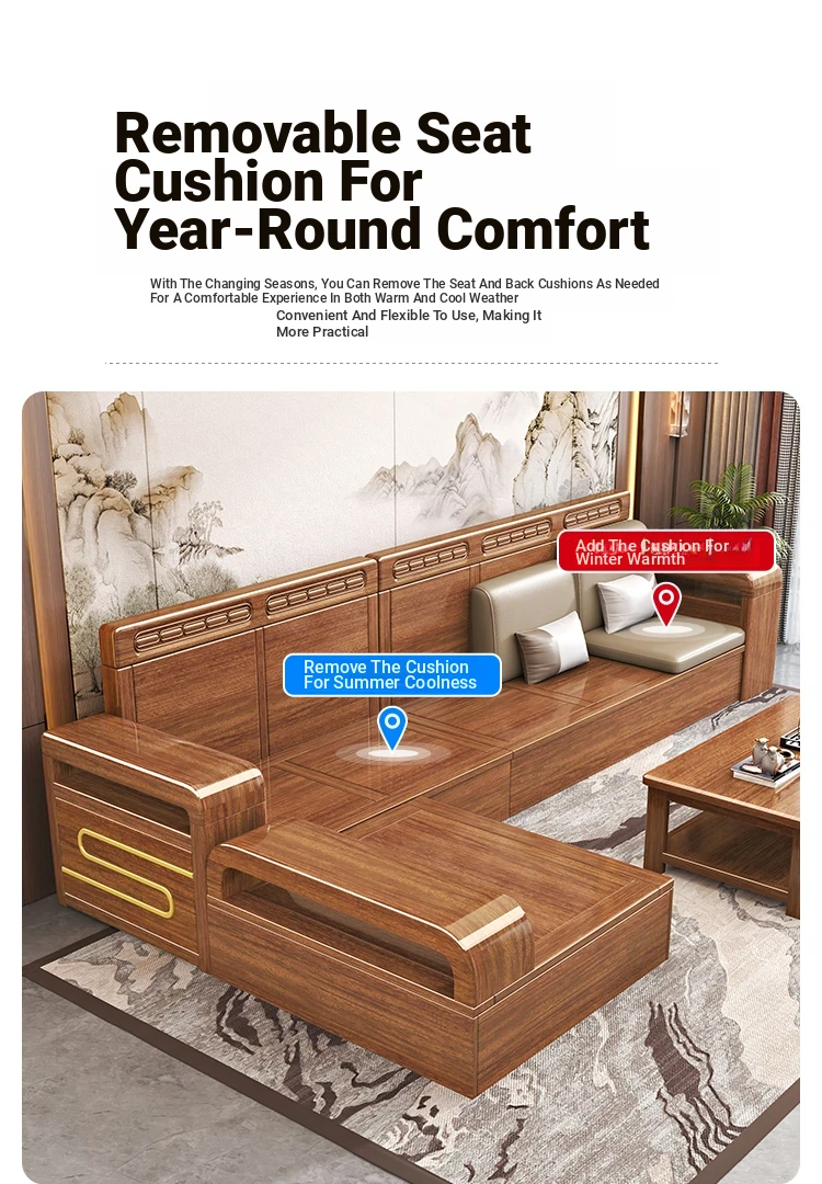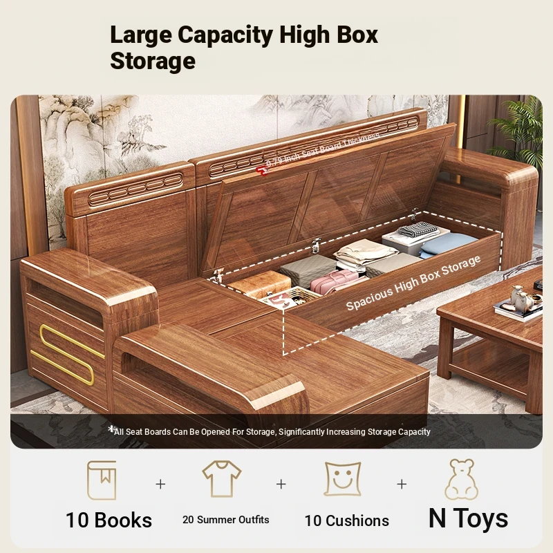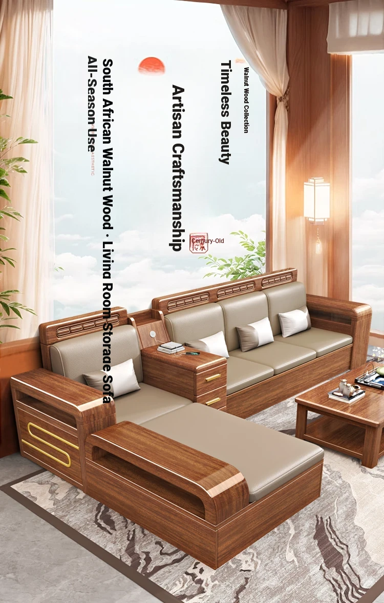 Modern Walnut Solid Wood Sofa Set for Living Room - Stylish and Functional Furniture for Small Spaces, Versatile for Winter and Summer Use, with Ample Storage Solutions