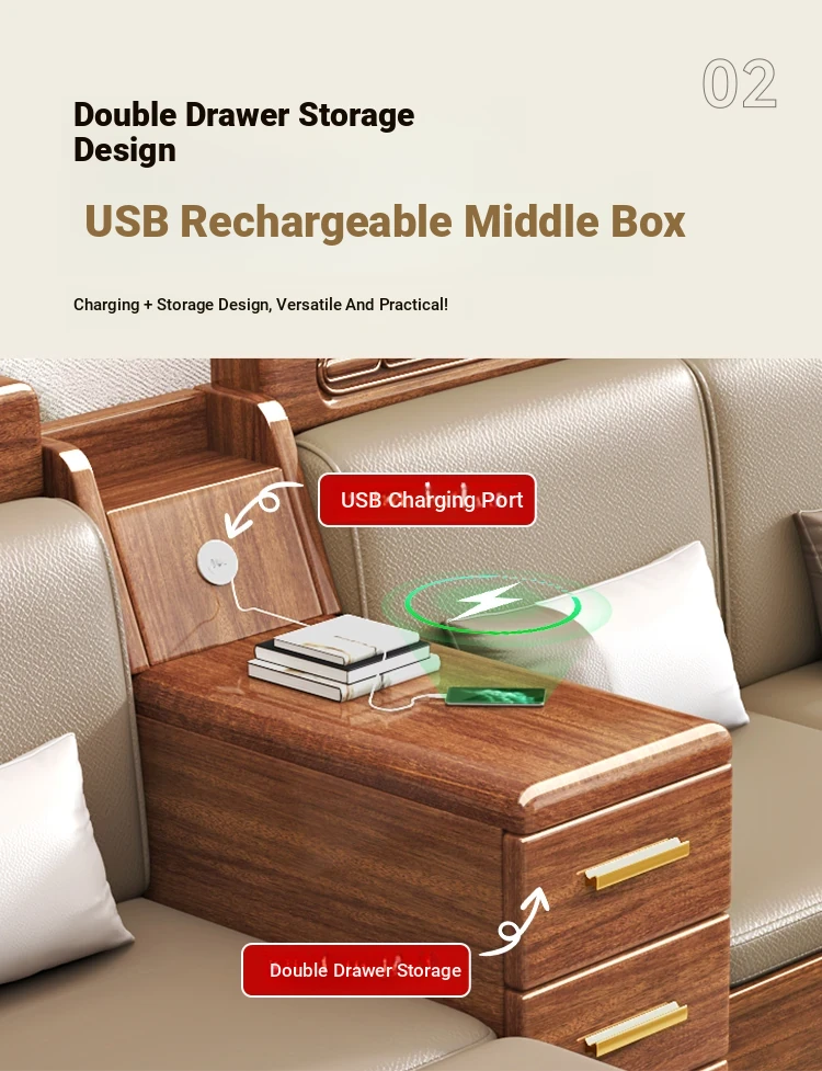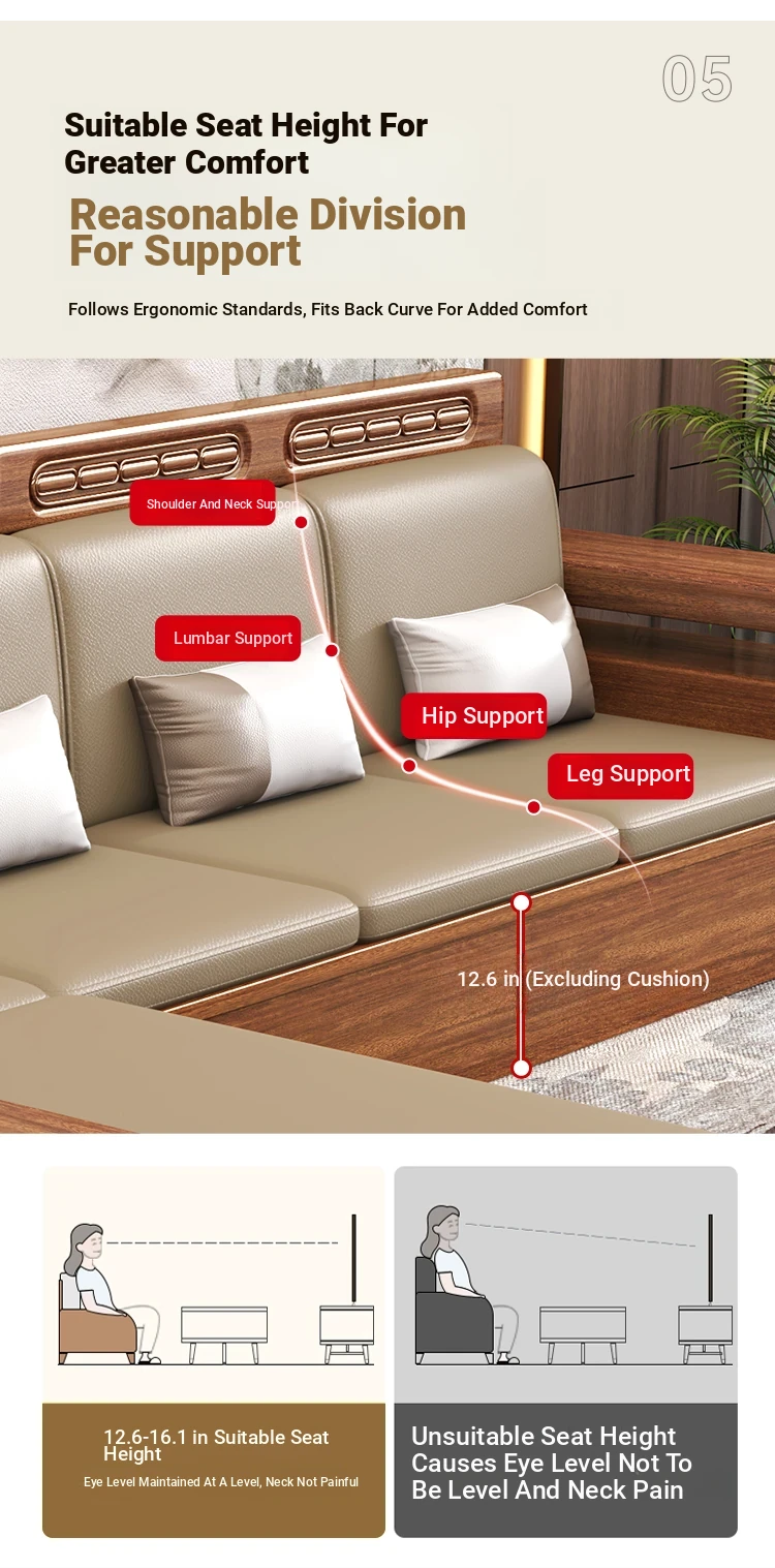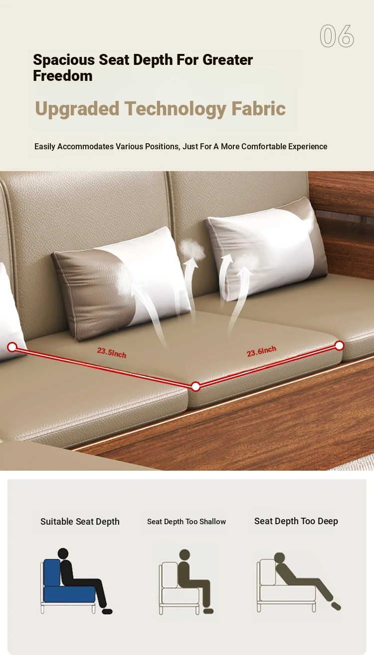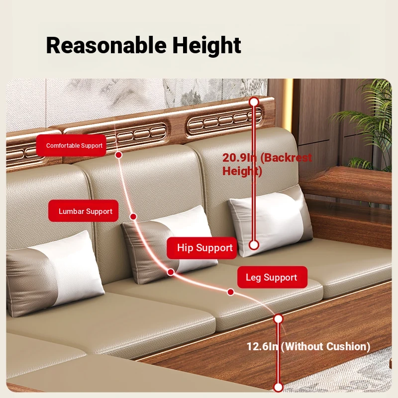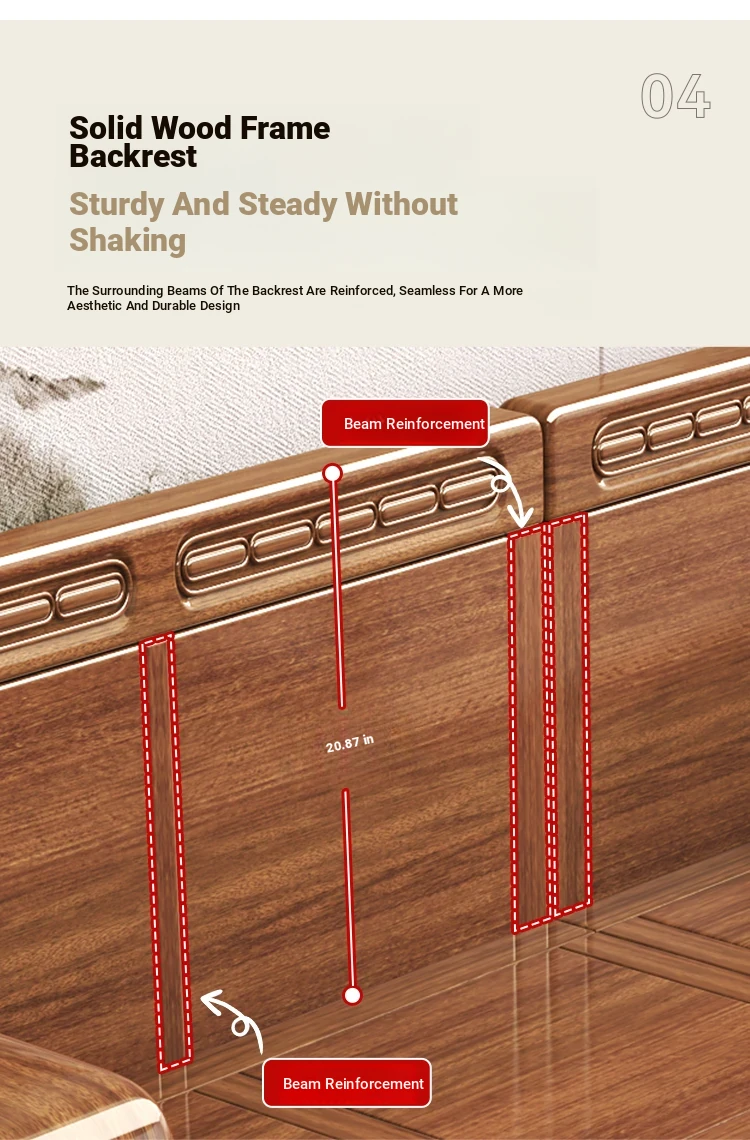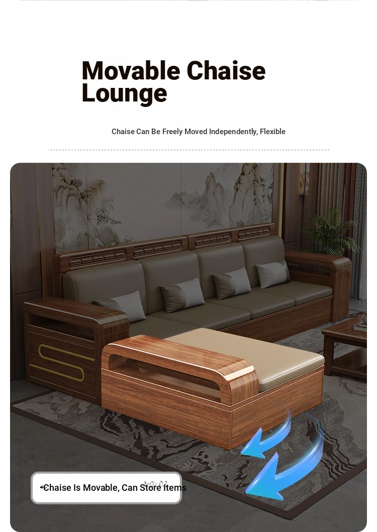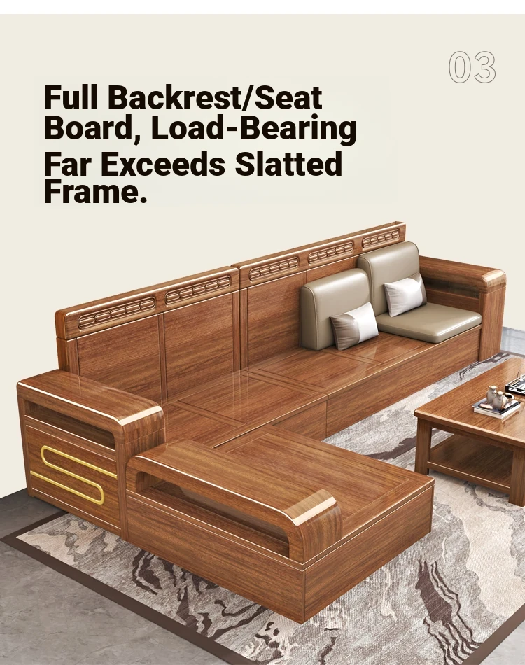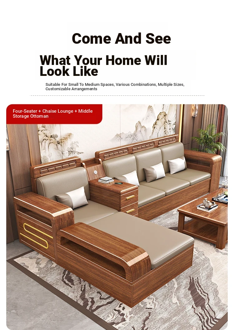 Modern Walnut Solid Wood Sofa Set for Living Room - Stylish and Functional Furniture for Small Spaces, Versatile for Winter and Summer Use, with Ample Storage Solutions