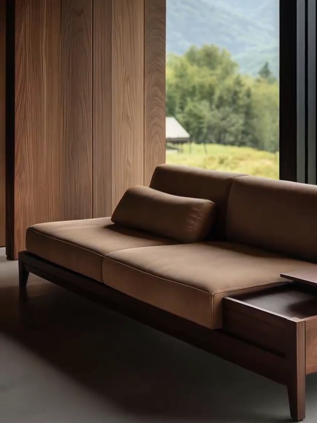 Modern Zen Minimalist Sofa in North American Black Walnut - Perfect for Living Rooms, Hotels, Villas, and Lounges of All Sizes