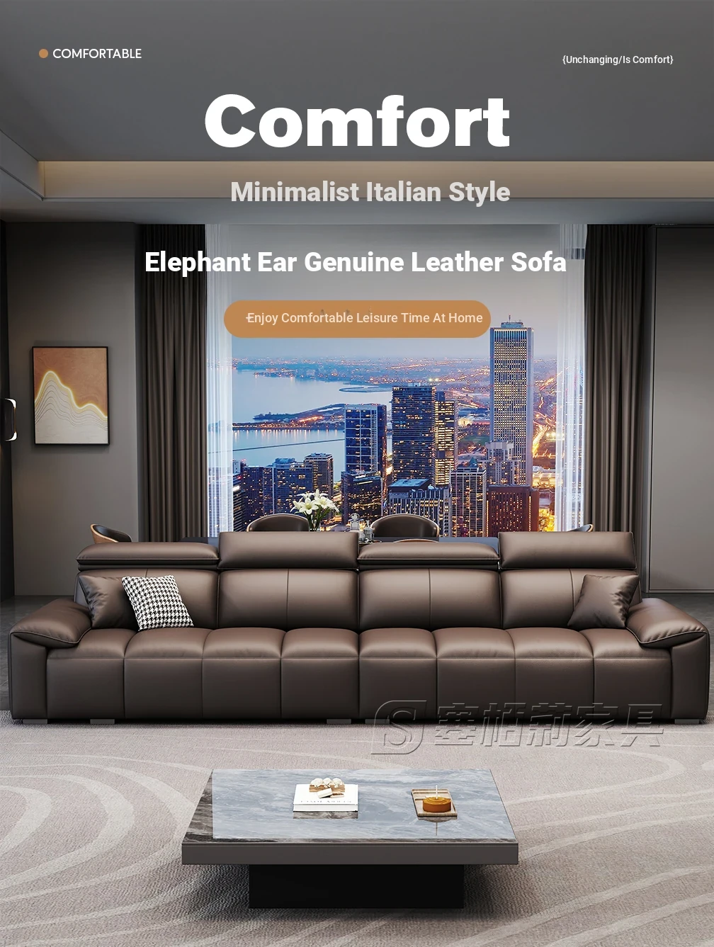 New Arrival: Italian Minimalist Genuine Leather Sofa - Spacious Three-Seat Design with Piano Key Style, Perfect for Any Home Size, Made with Top-Grade Cowhide for Ultimate Comfort and Elegance.
