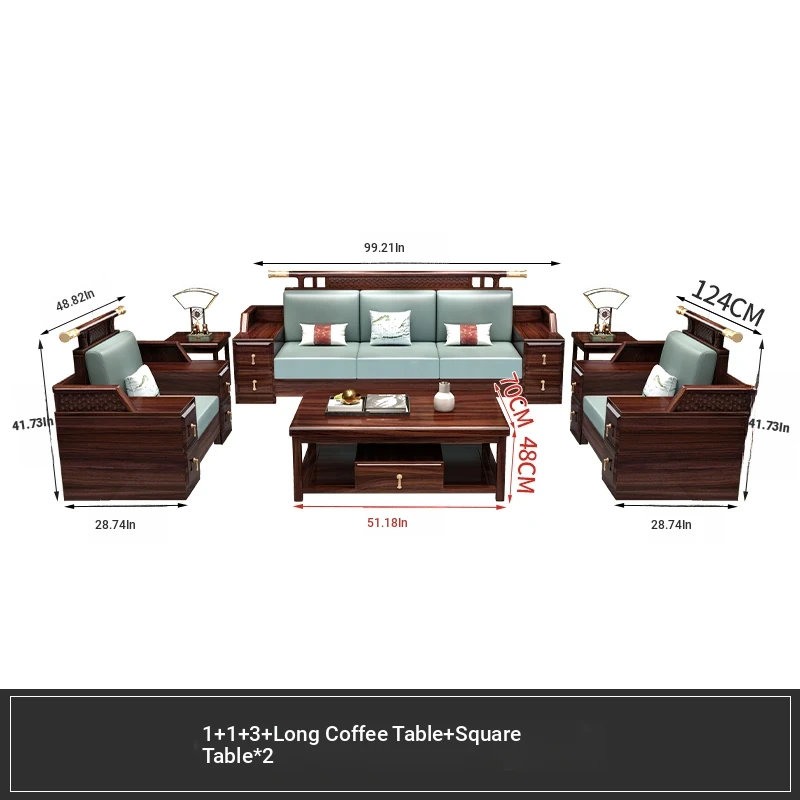 1+1+3 + long coffee table + square * 2 + TV cabinet
