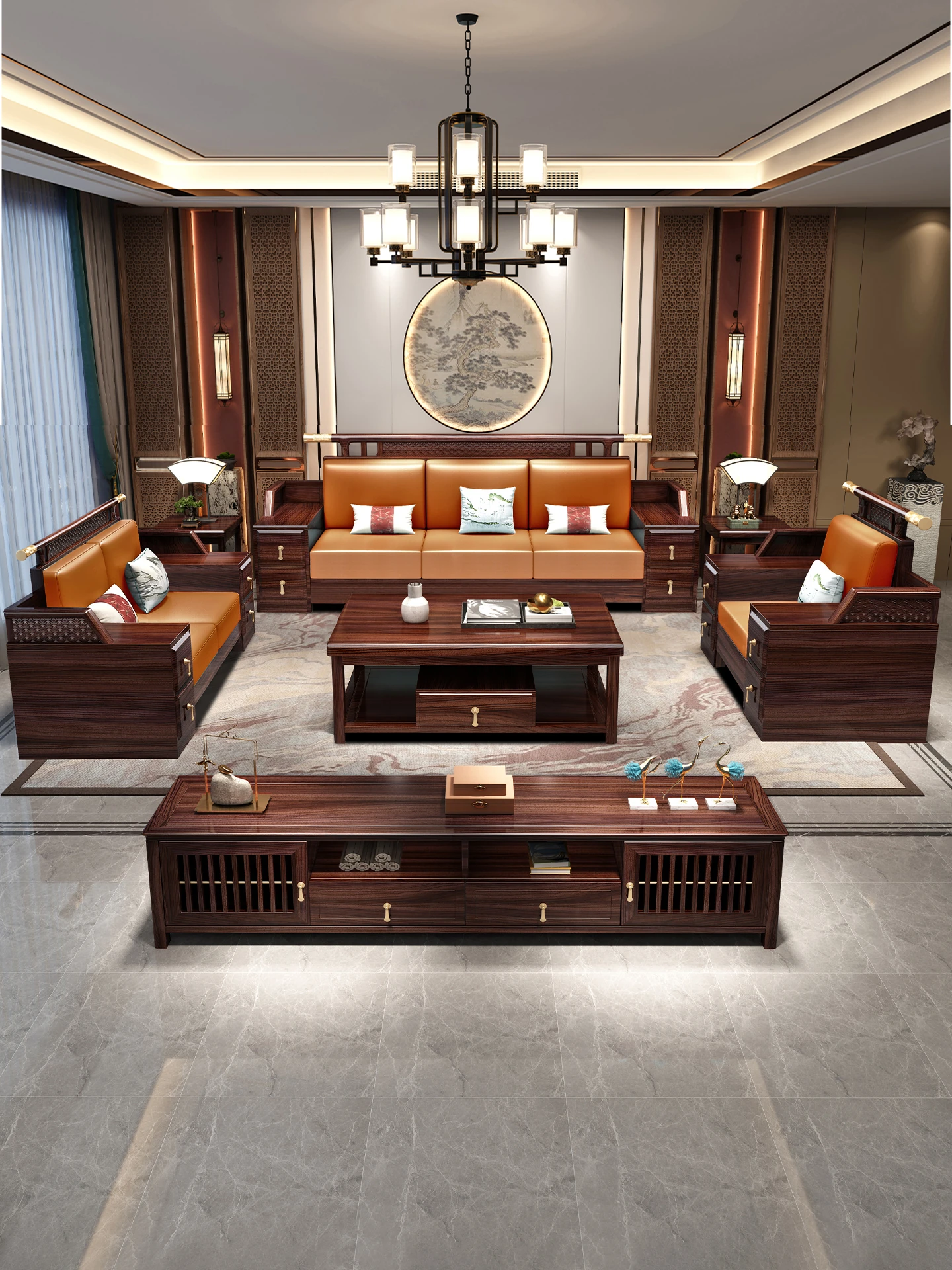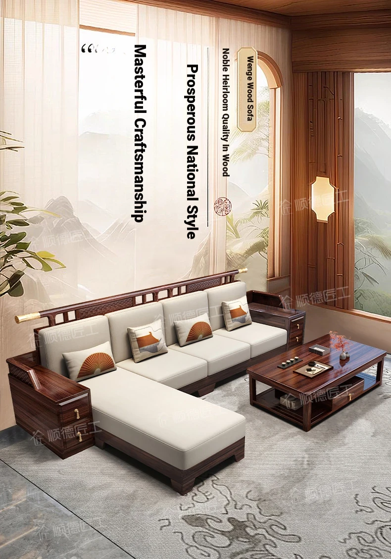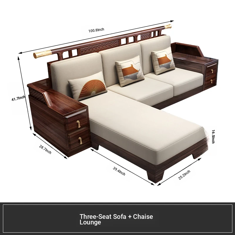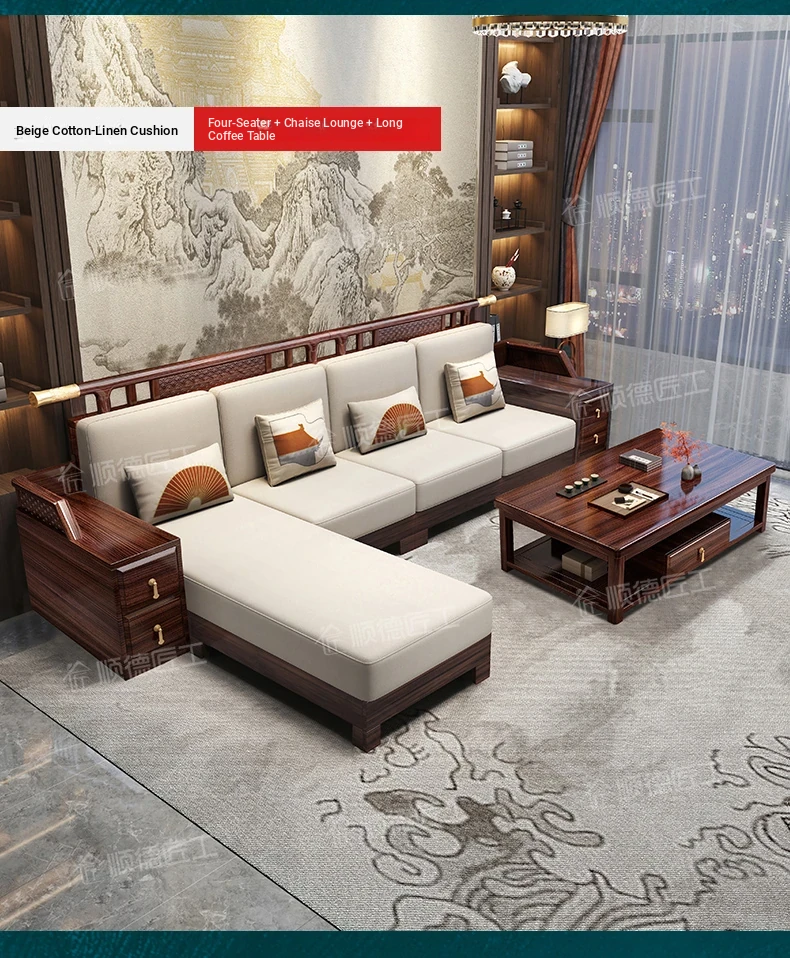 New Chinese Style Blackwood Solid Wood Sofa - Zen-Inspired Luxury L-Shaped Chaise Lounge, Complete Set of Elegant Chinese Furniture for Your Living Room