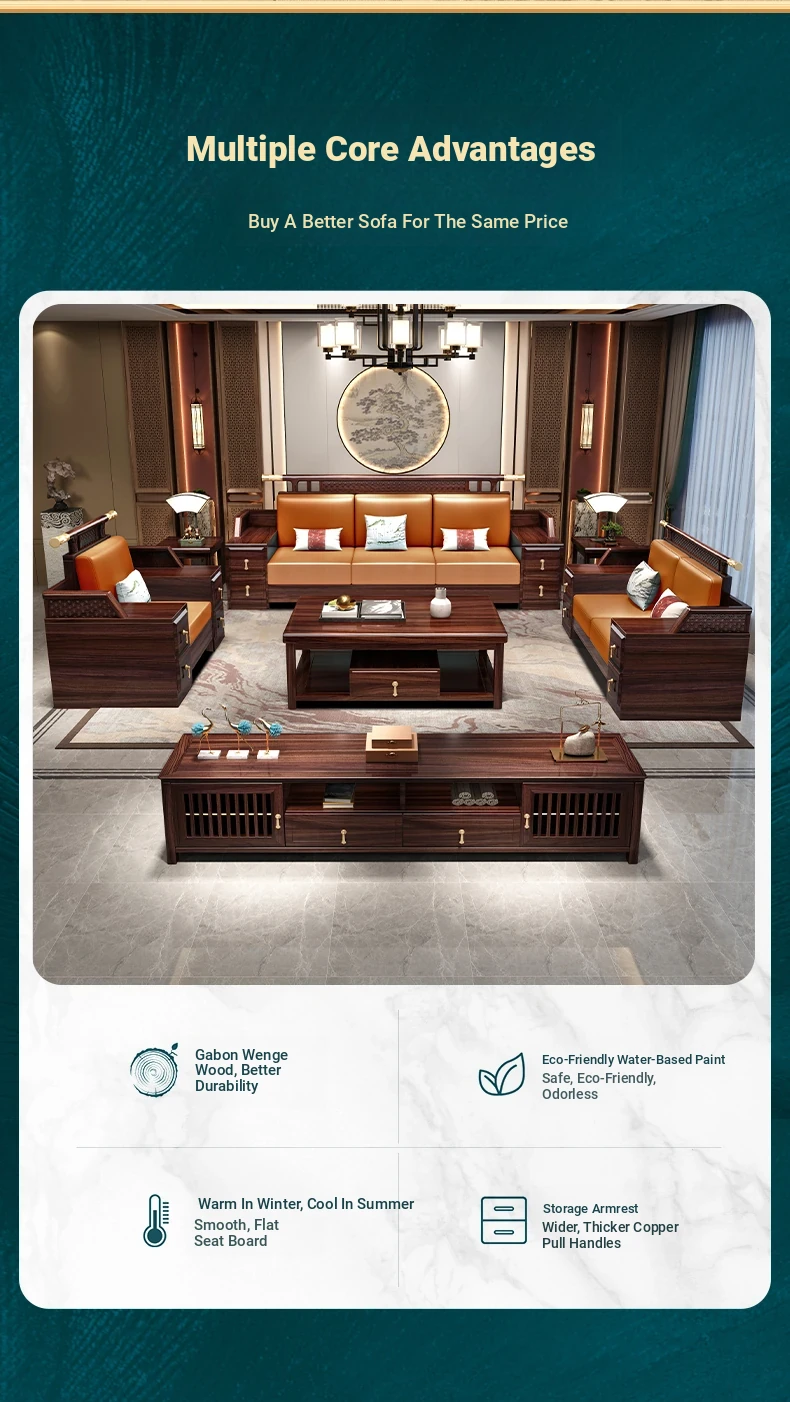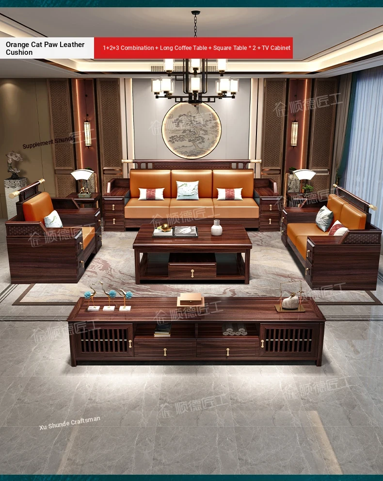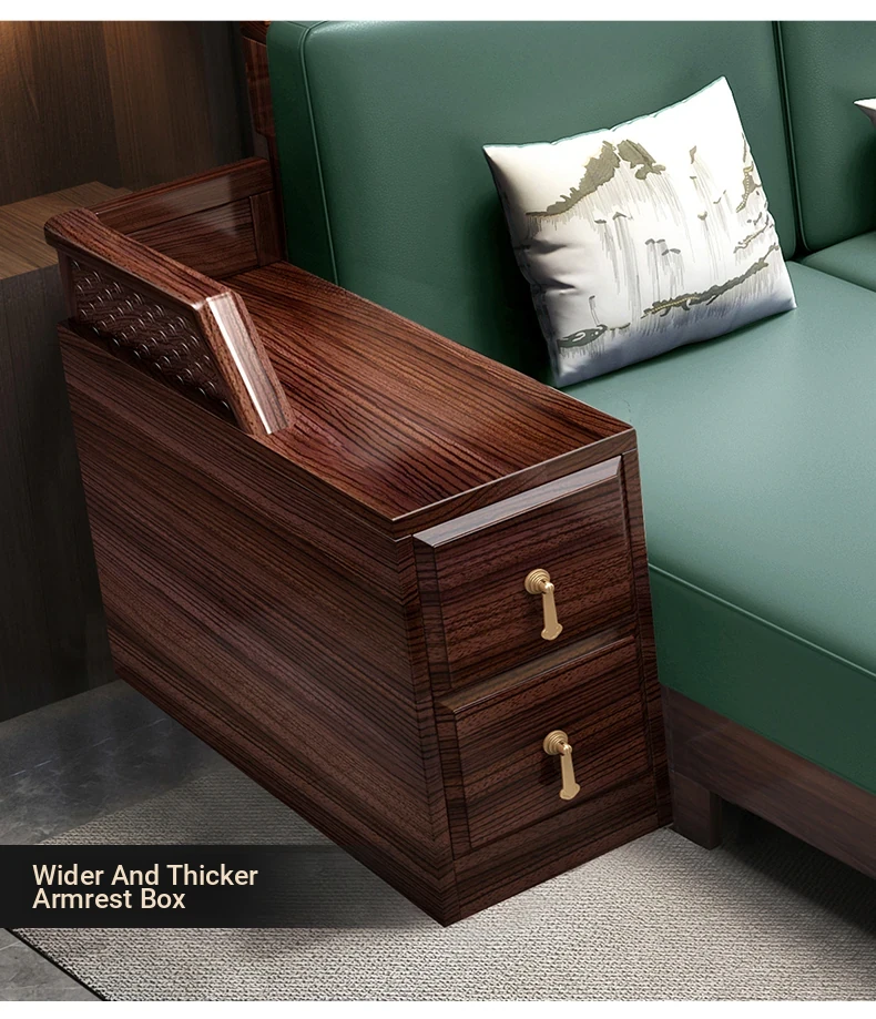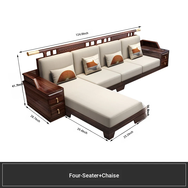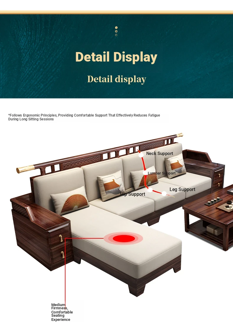 New Chinese Style Blackwood Solid Wood Sofa - Zen-Inspired Luxury L-Shaped Chaise Lounge, Complete Set of Elegant Chinese Furniture for Your Living Room