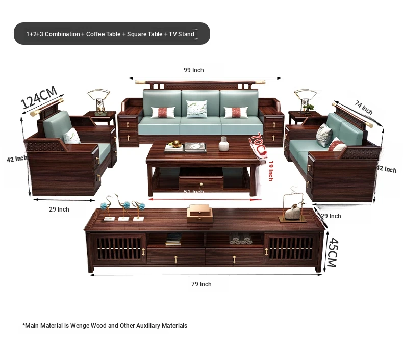 1+2+3 + long coffee table + square * 2 + TV cabinet