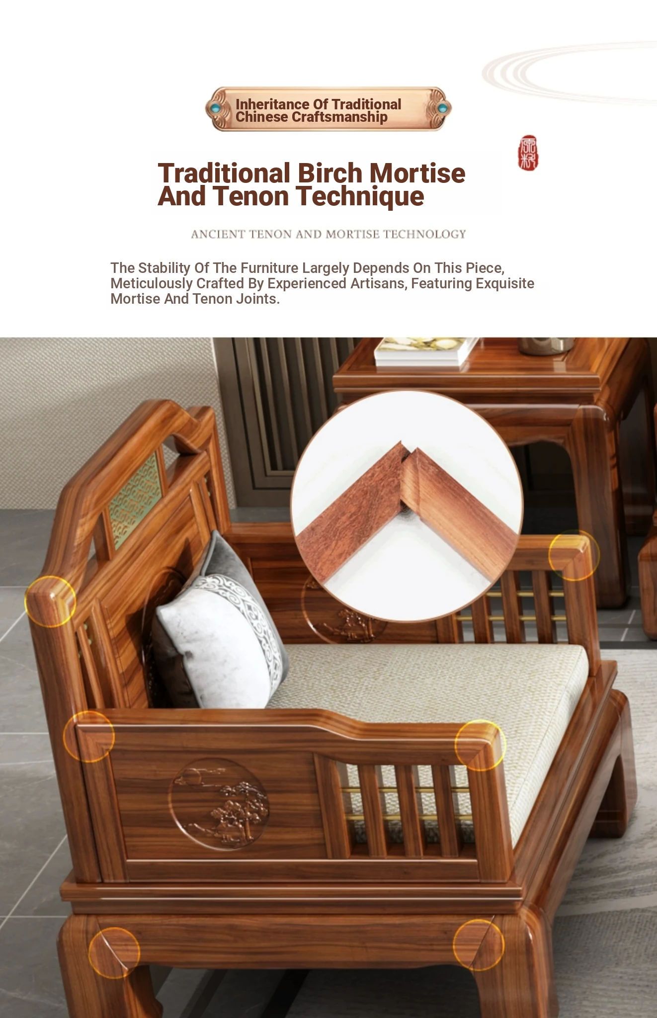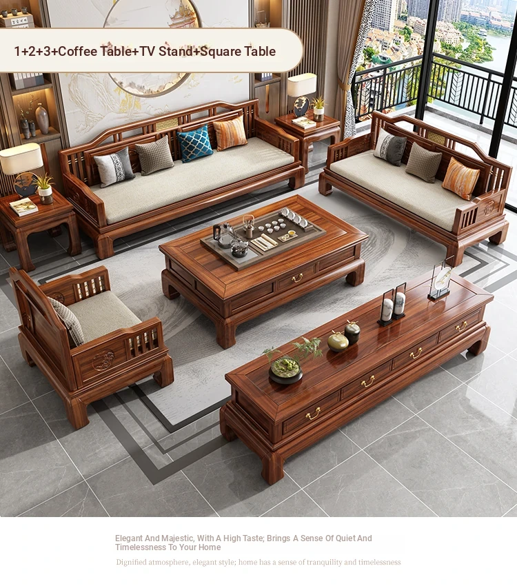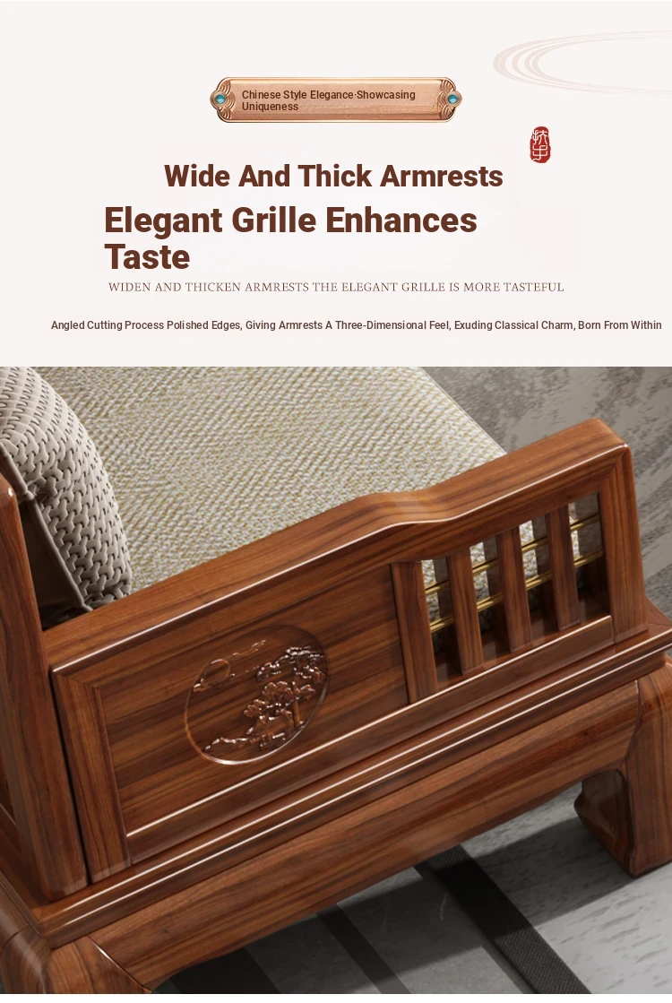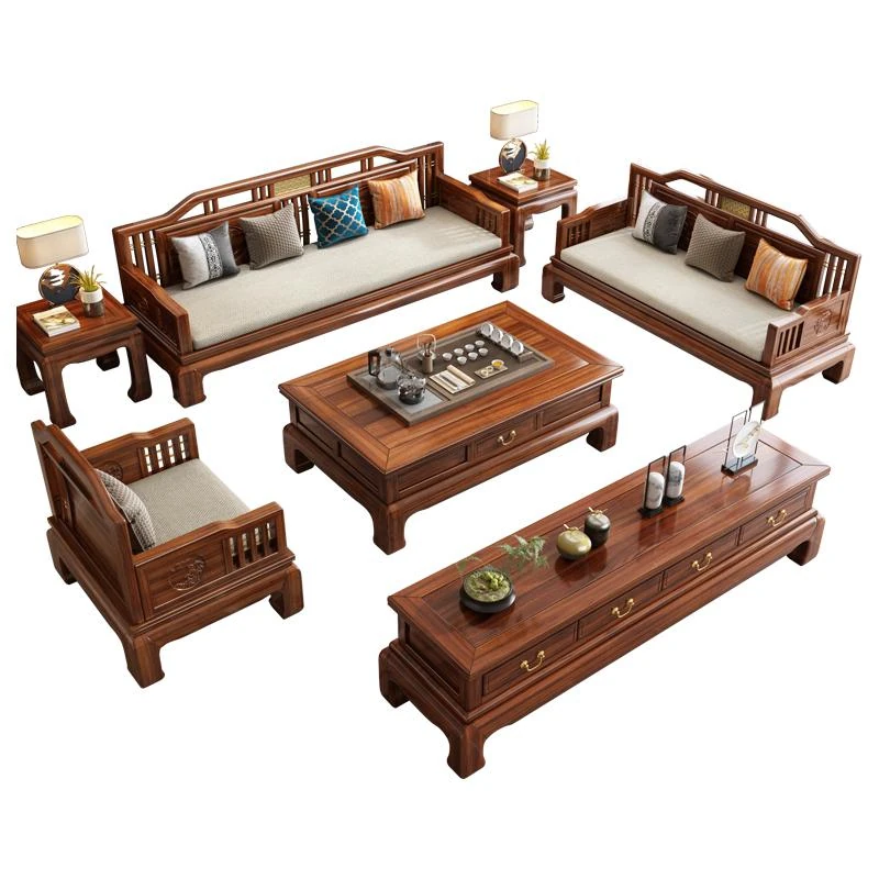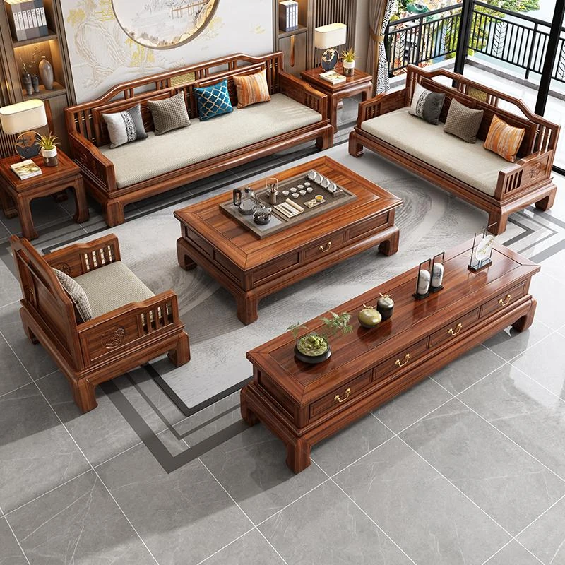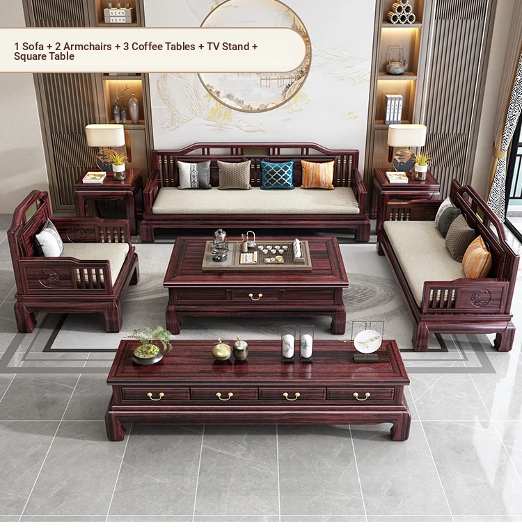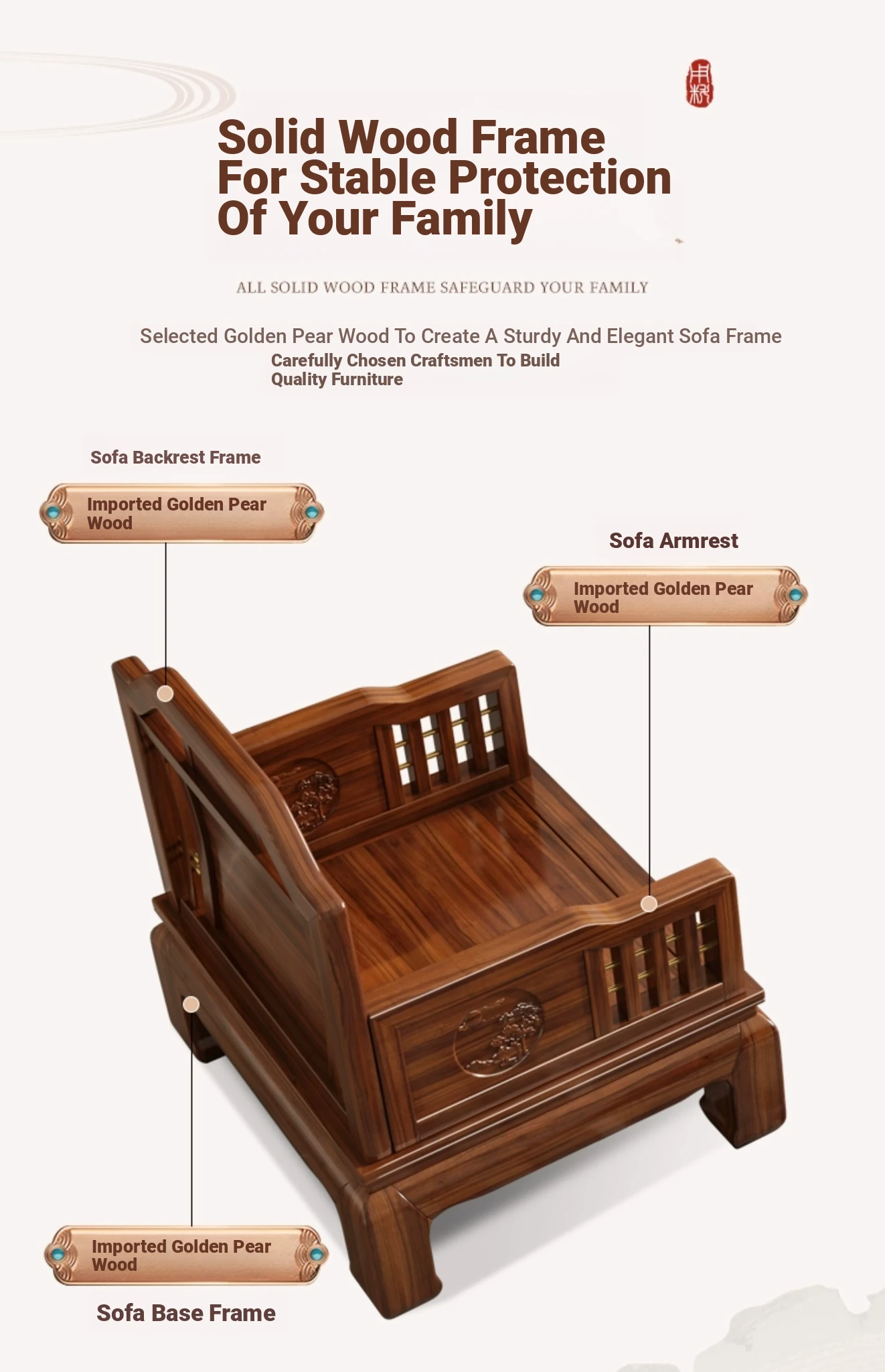 New Chinese Style Golden Pear Wood Solid Wood Living Room New Classical Imitation Mahogany 123 Combination Furniture Set with Mortise and Tenon Design