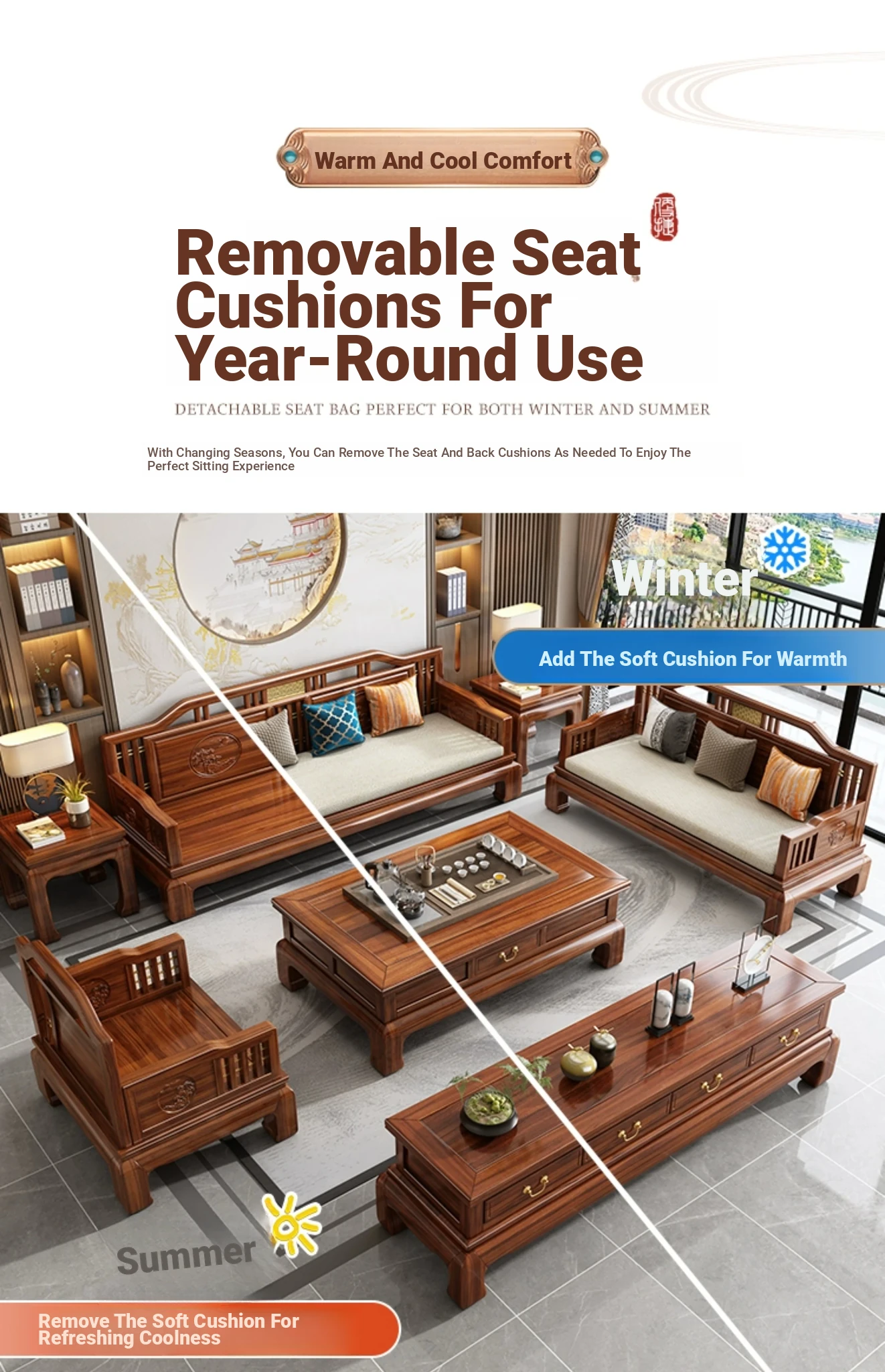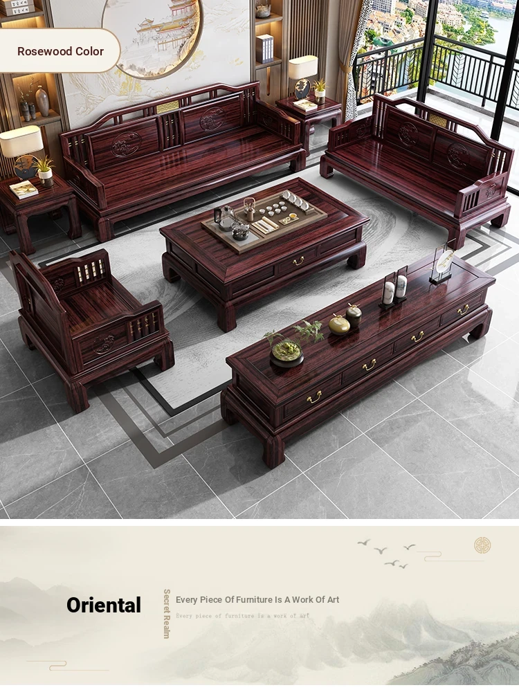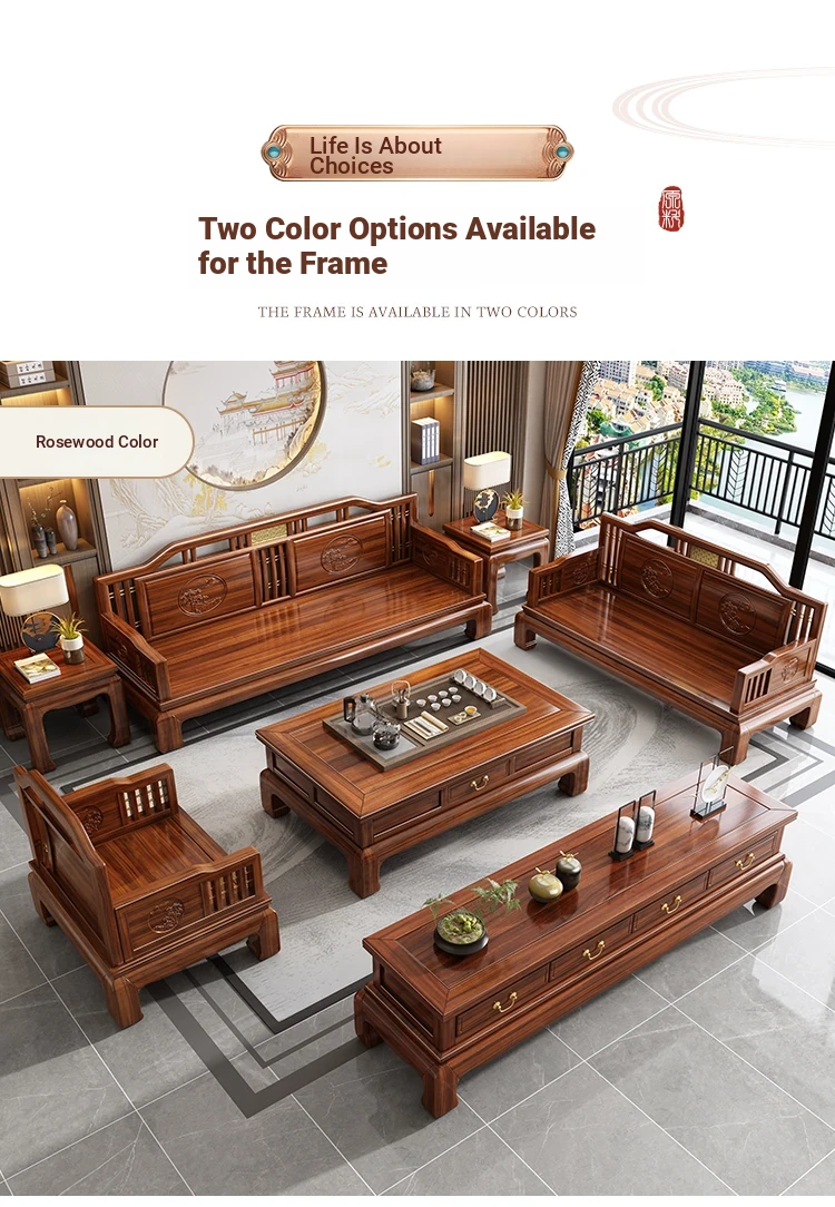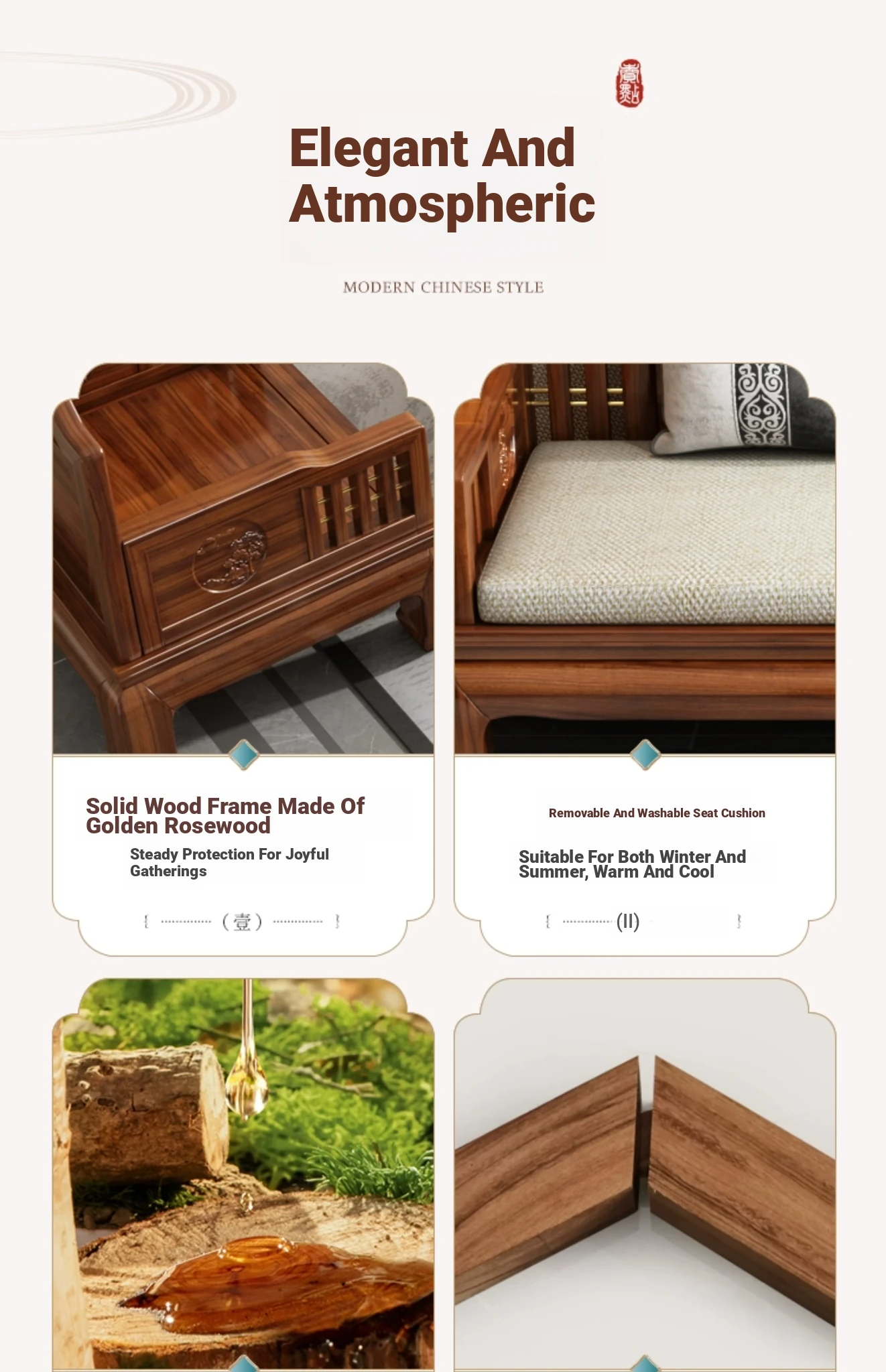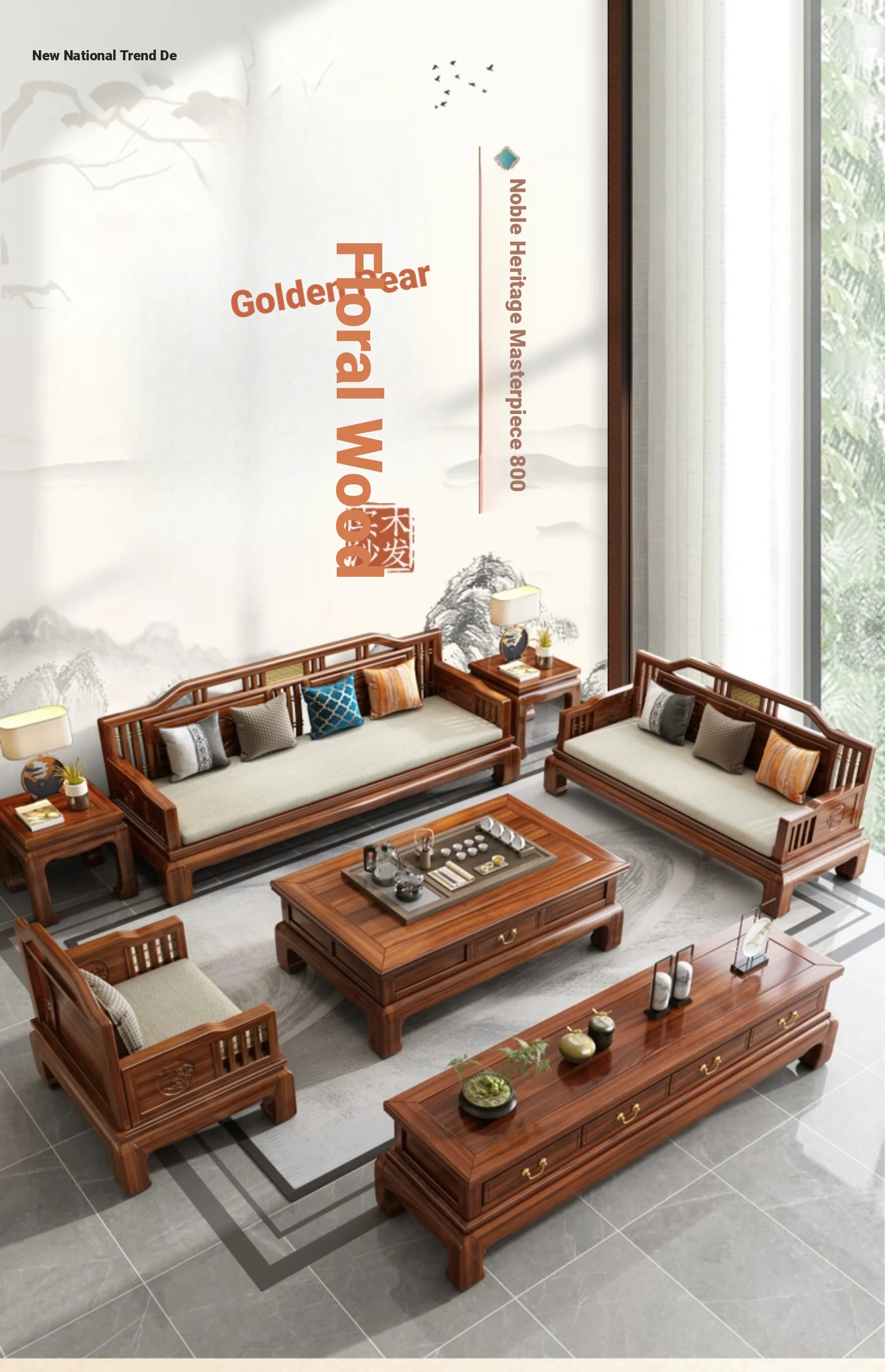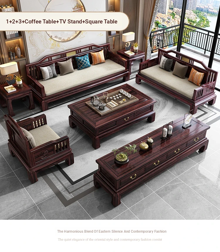 New Chinese Style Golden Pear Wood Solid Wood Living Room New Classical Imitation Mahogany 123 Combination Furniture Set with Mortise and Tenon Design