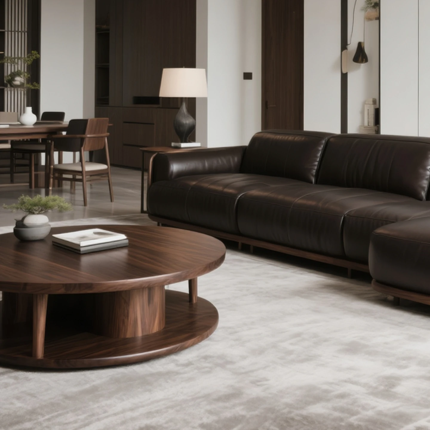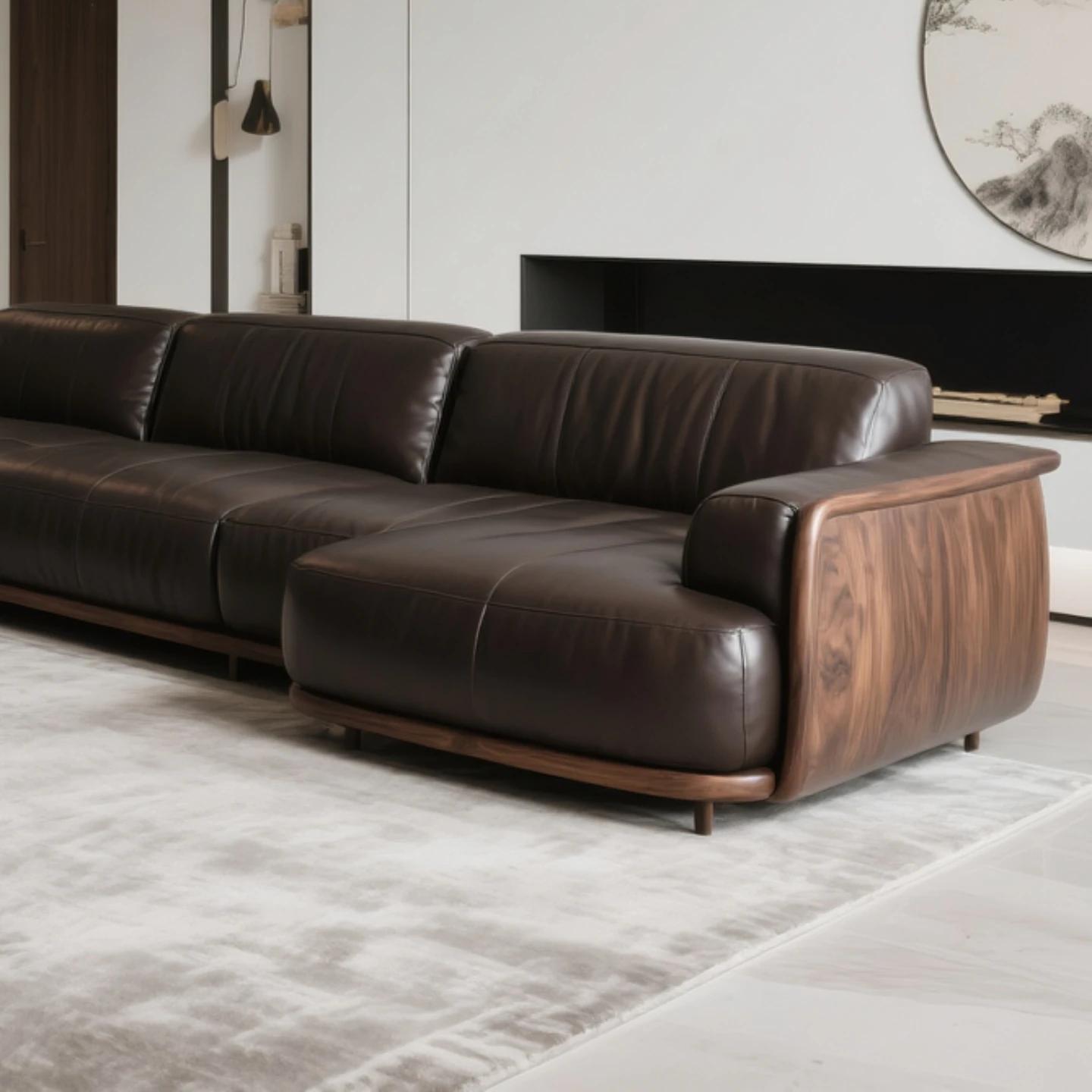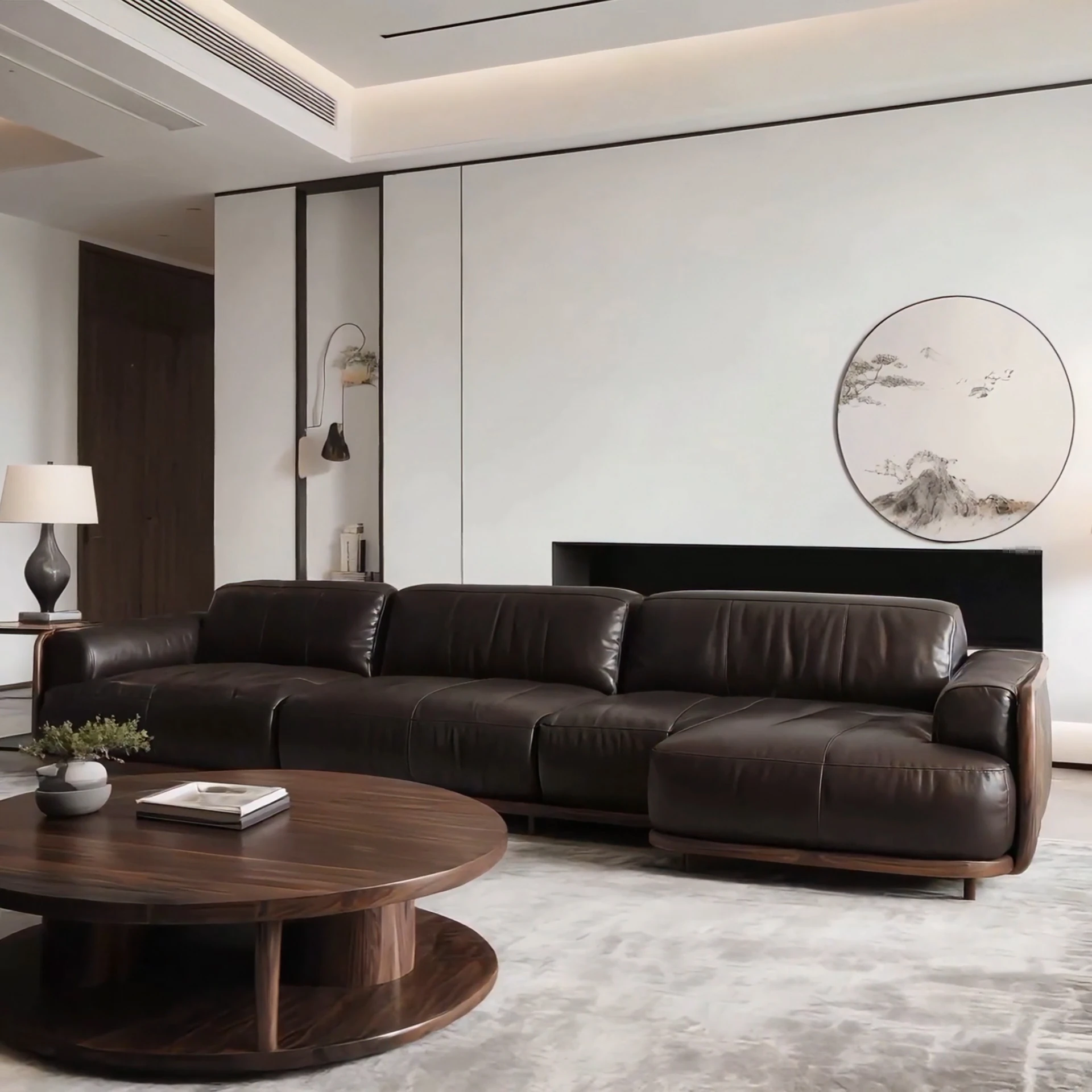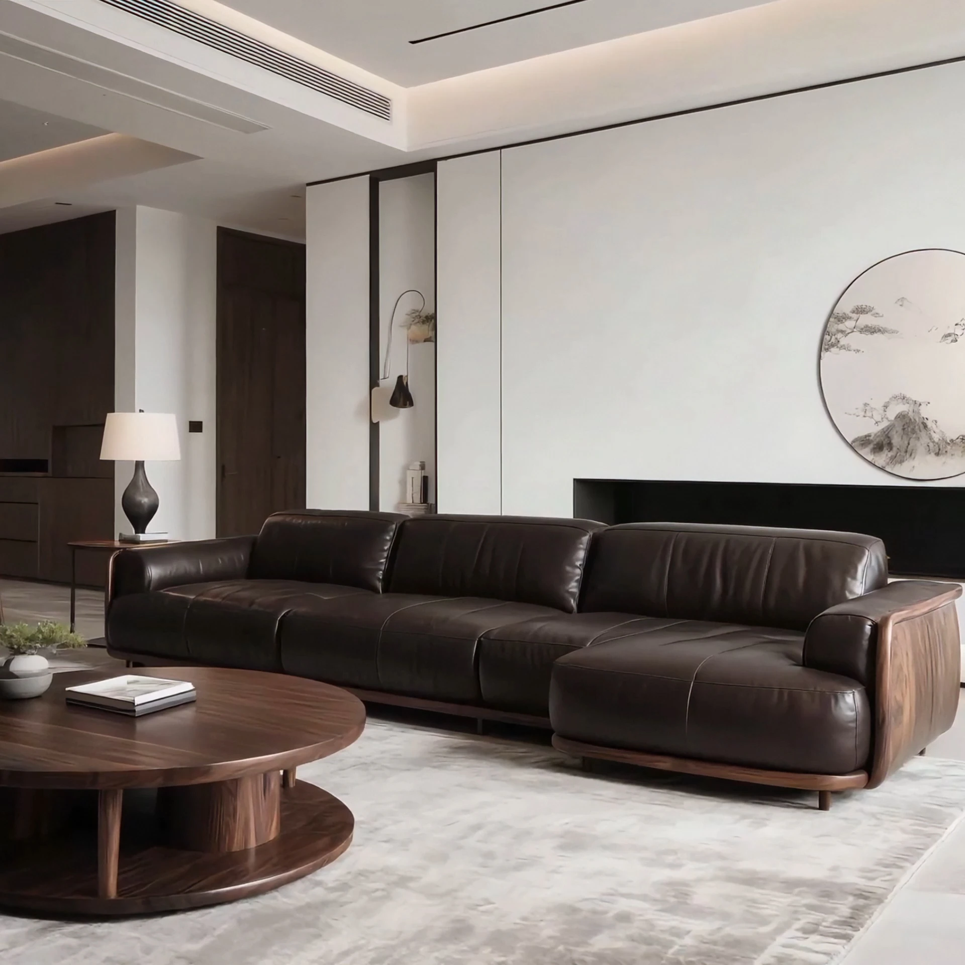 New Chinese Style North American Black Walnut Corner Sofa - Luxurious Genuine Leather and Solid Wood for Villa Living Room and Model Home Furniture