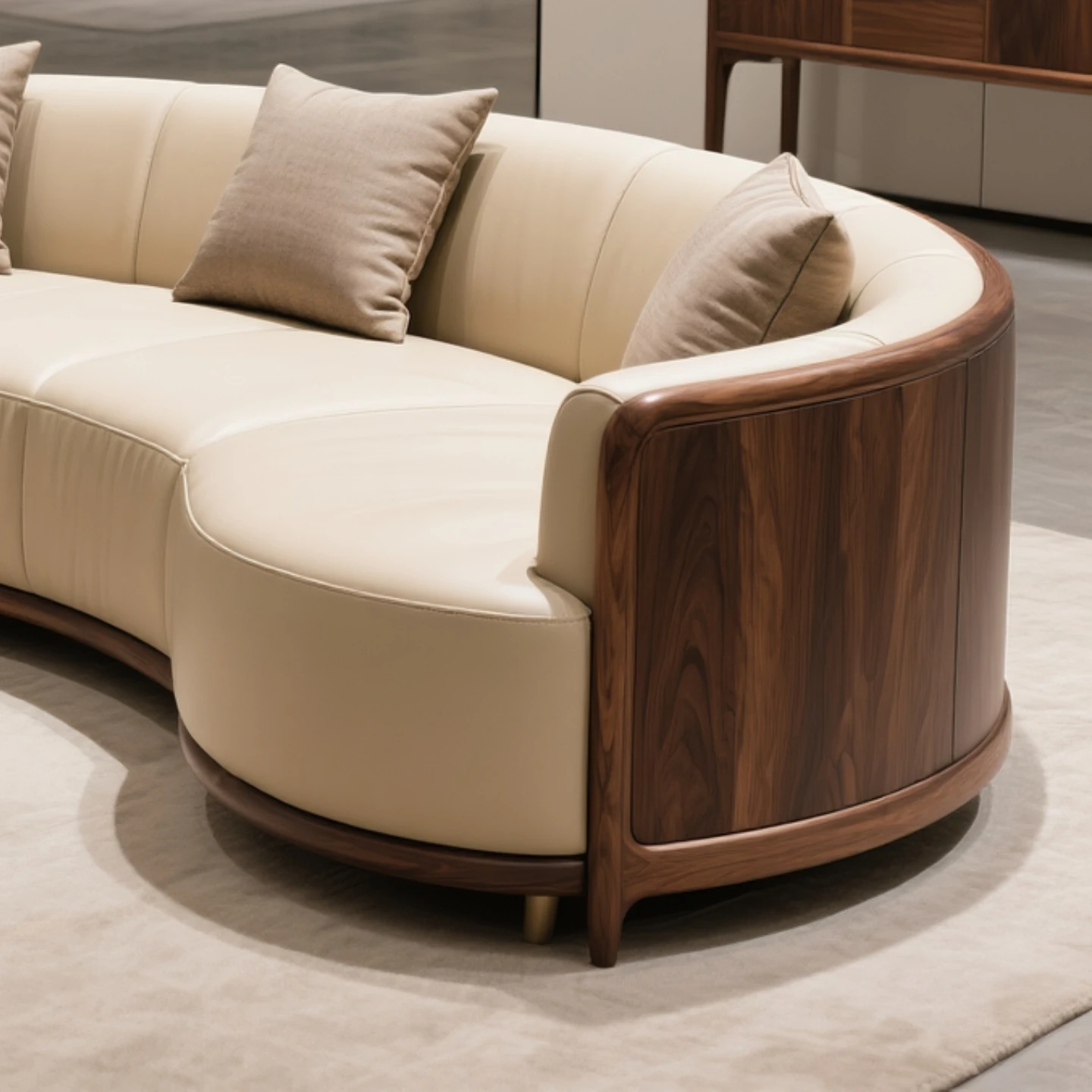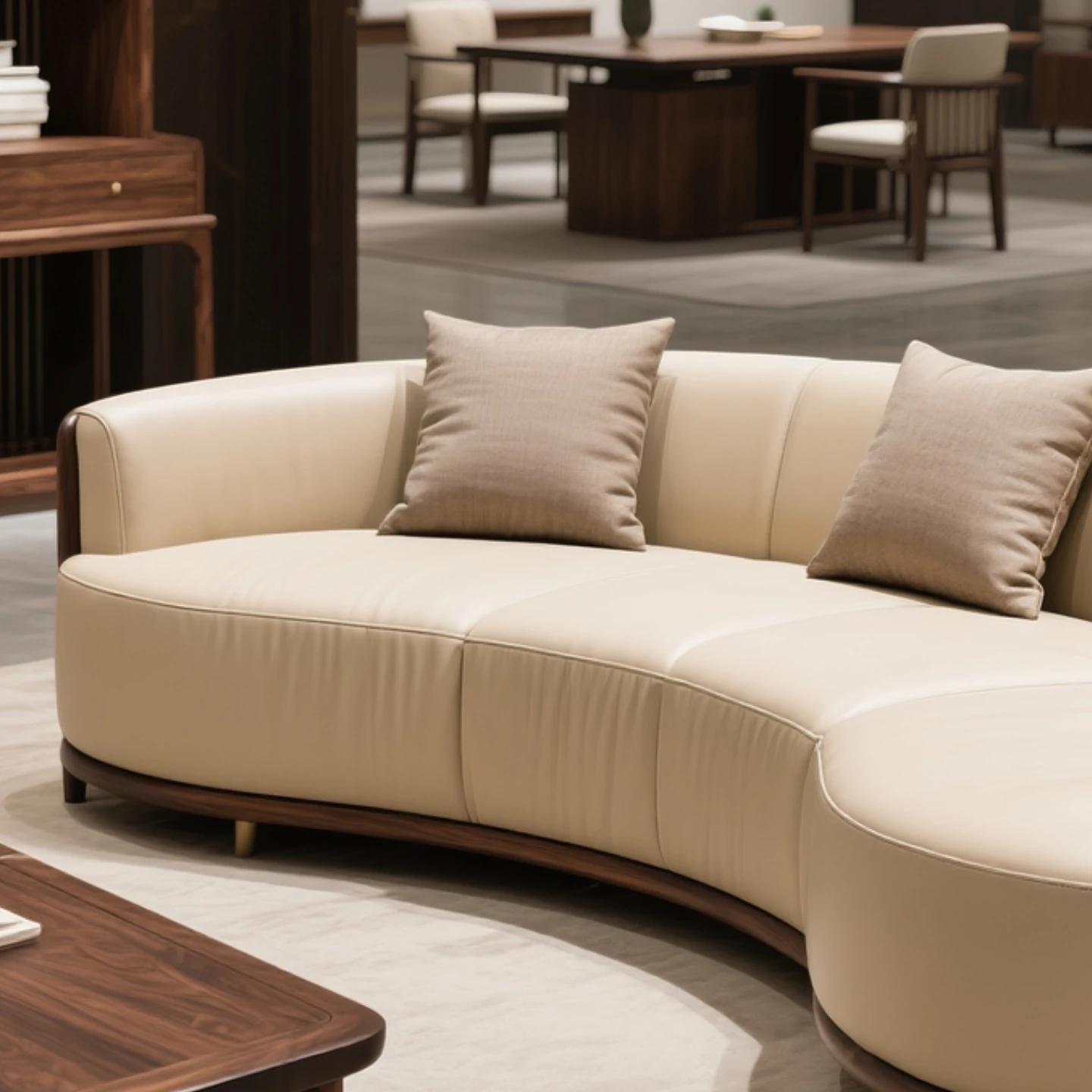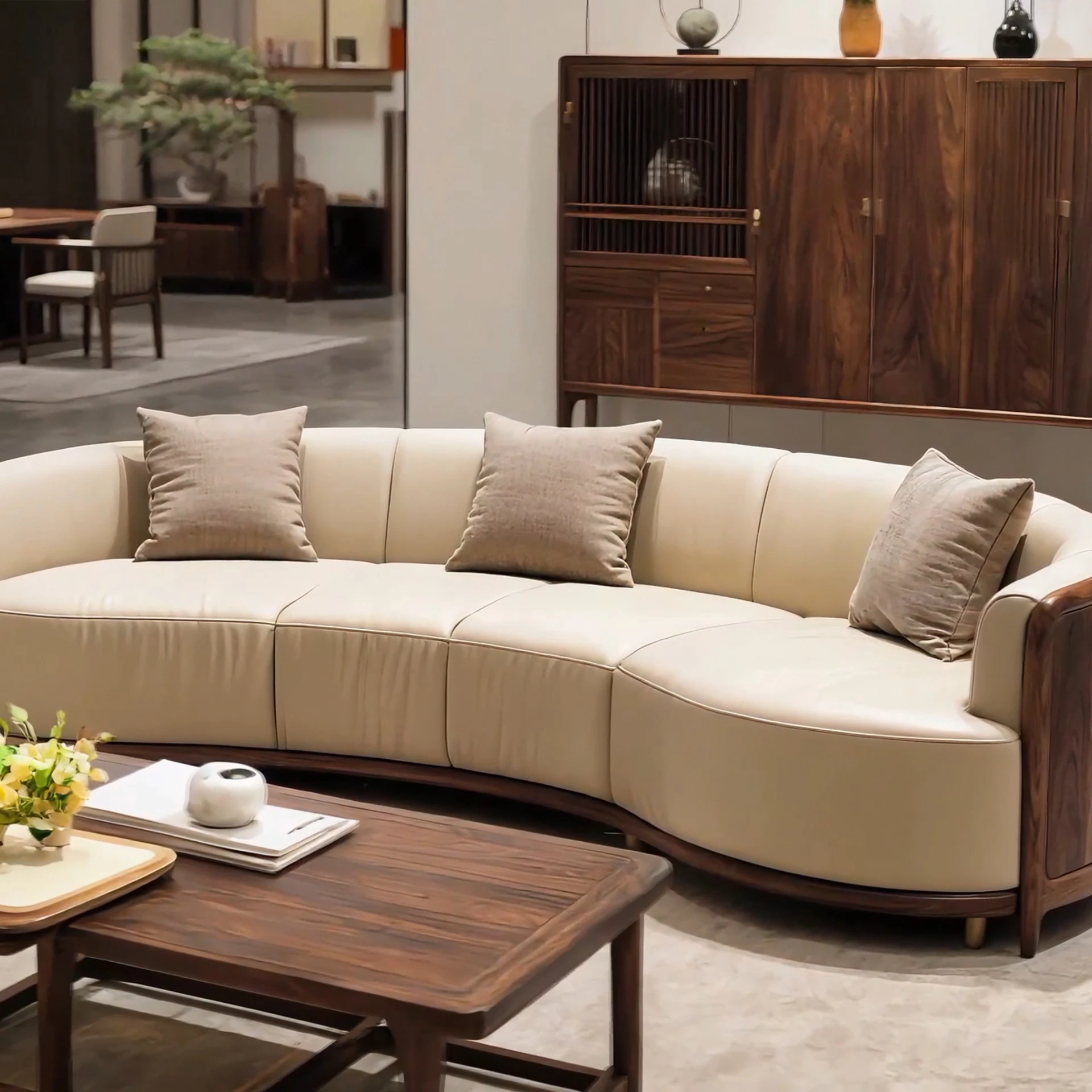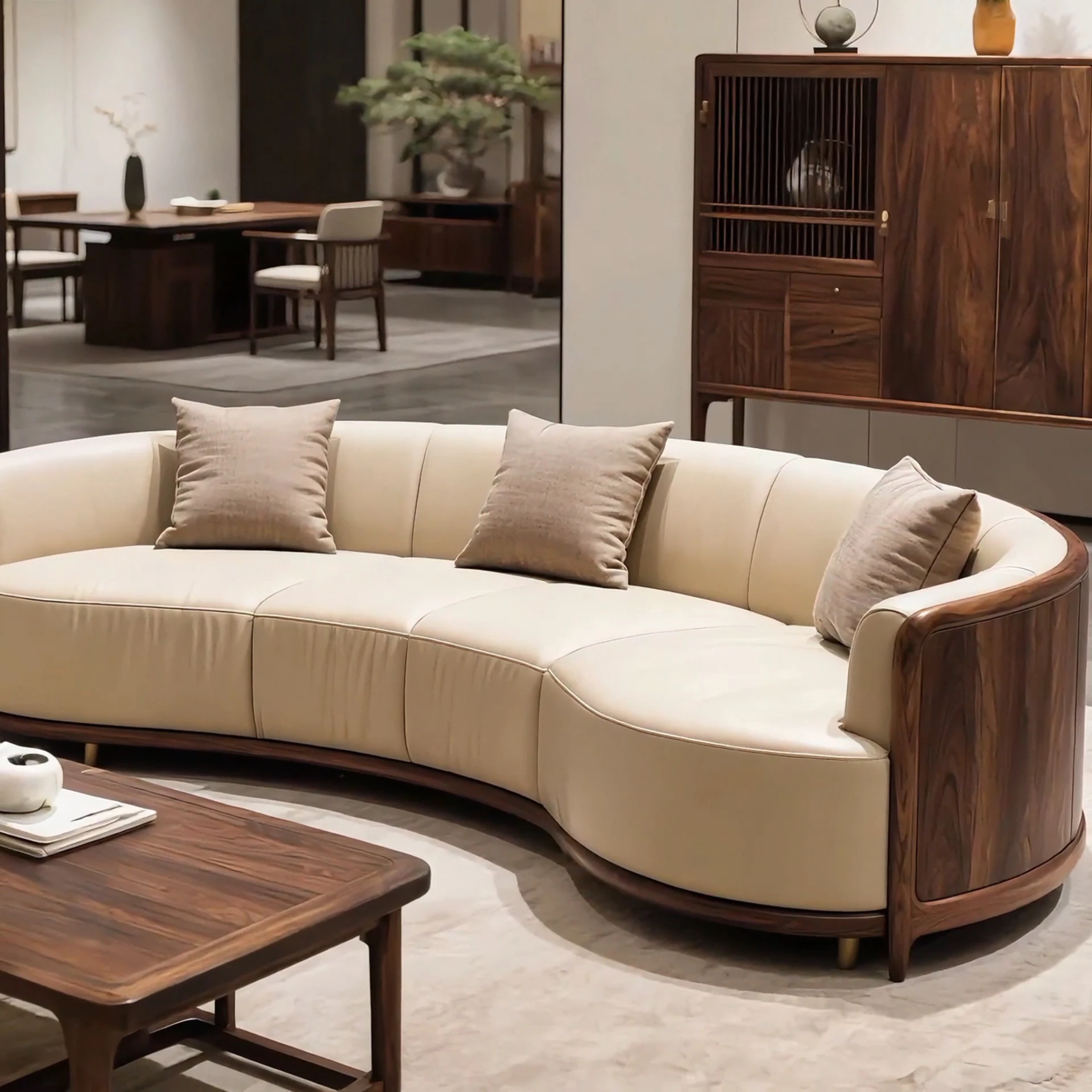 New Chinese Style North American Black Walnut Curved Vintage Sofa - Four-Seater Retro Solid Wood Design with Round Edges
