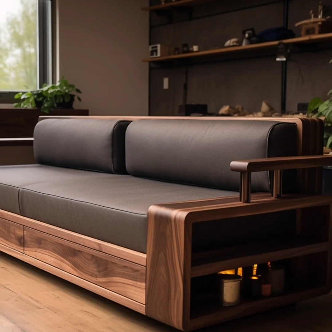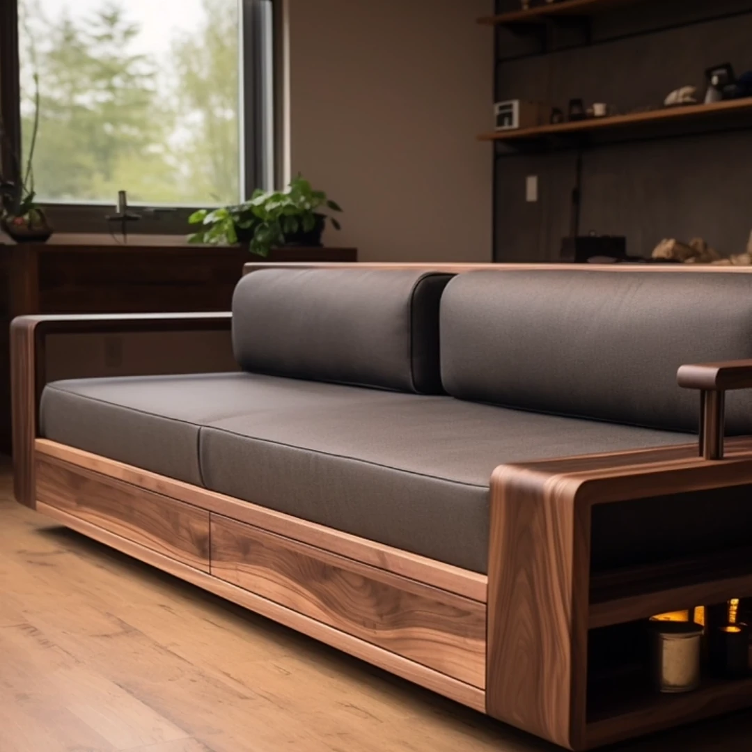 New Chinese Style North American Black Walnut Solid Wood Sofa - 2025 New Model for Small to Medium Living Rooms and Relaxation Spaces