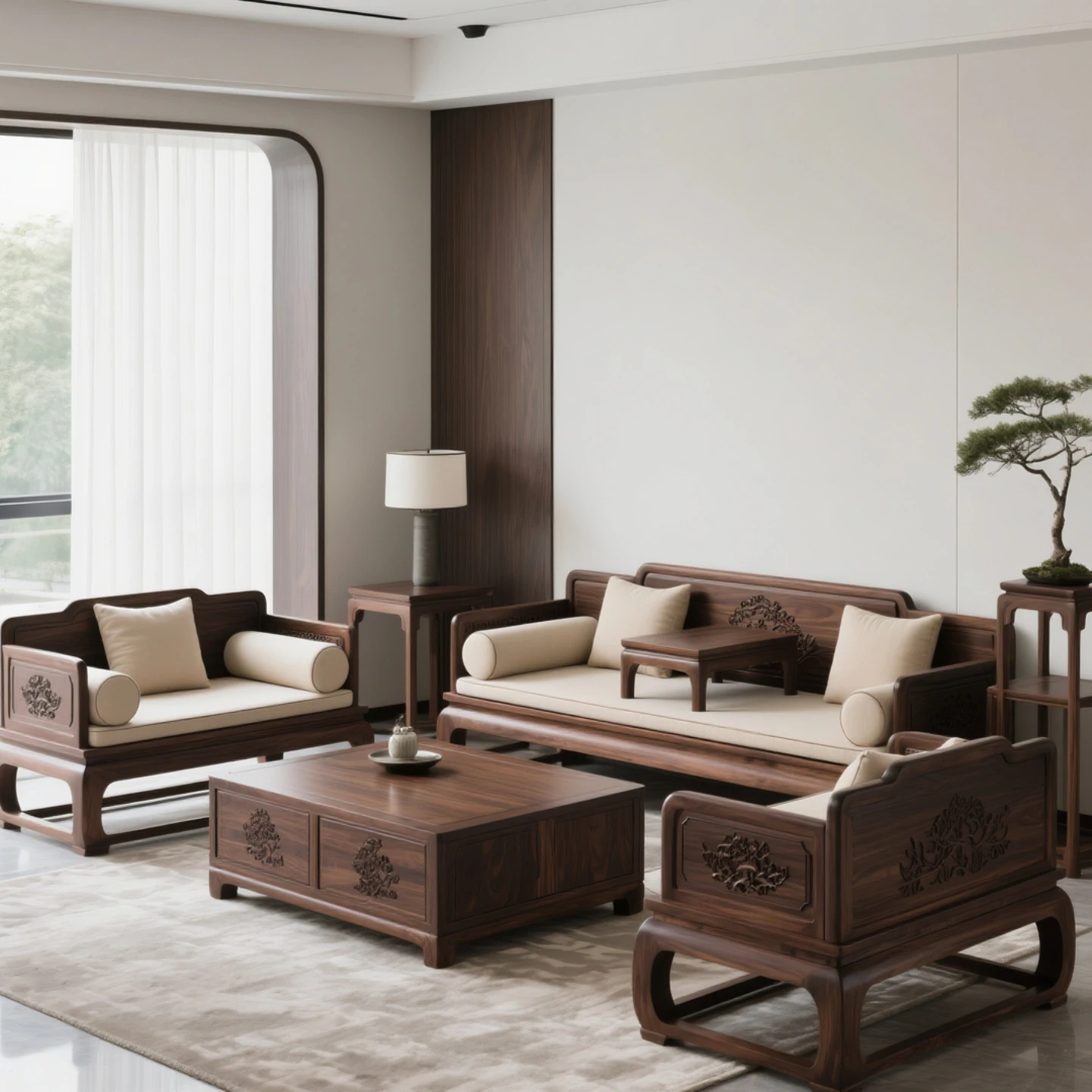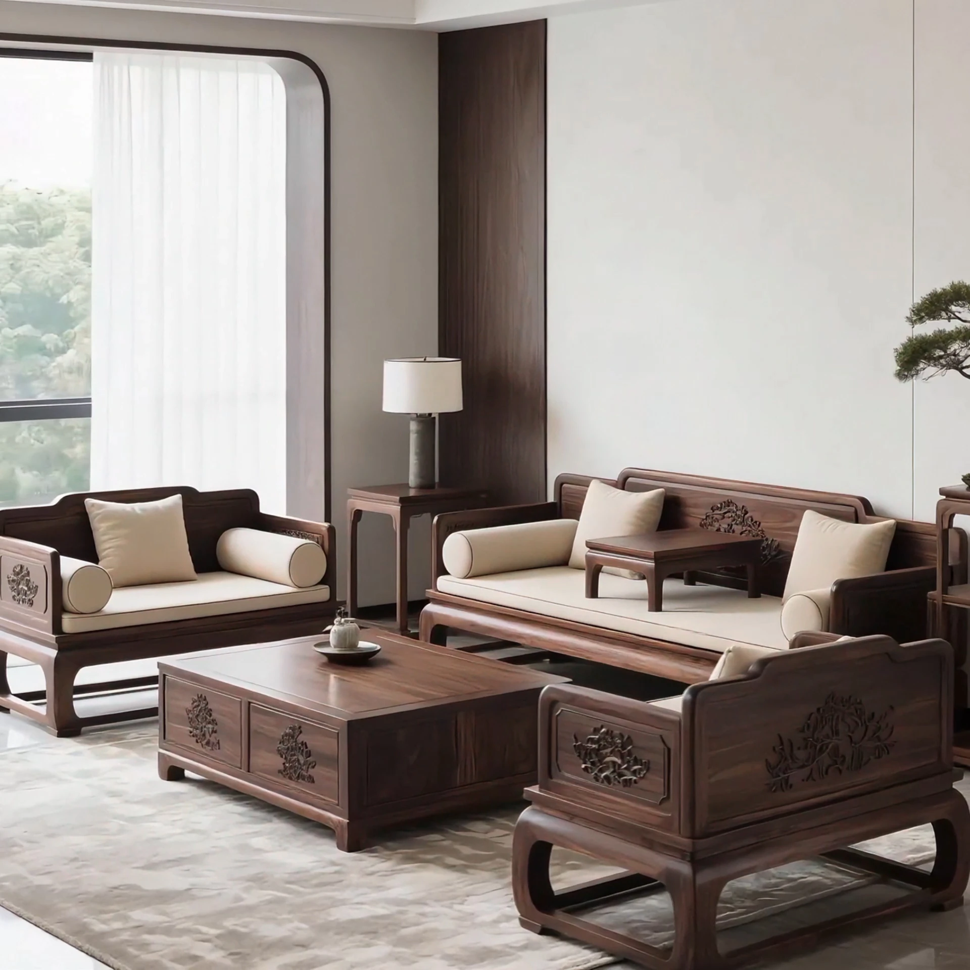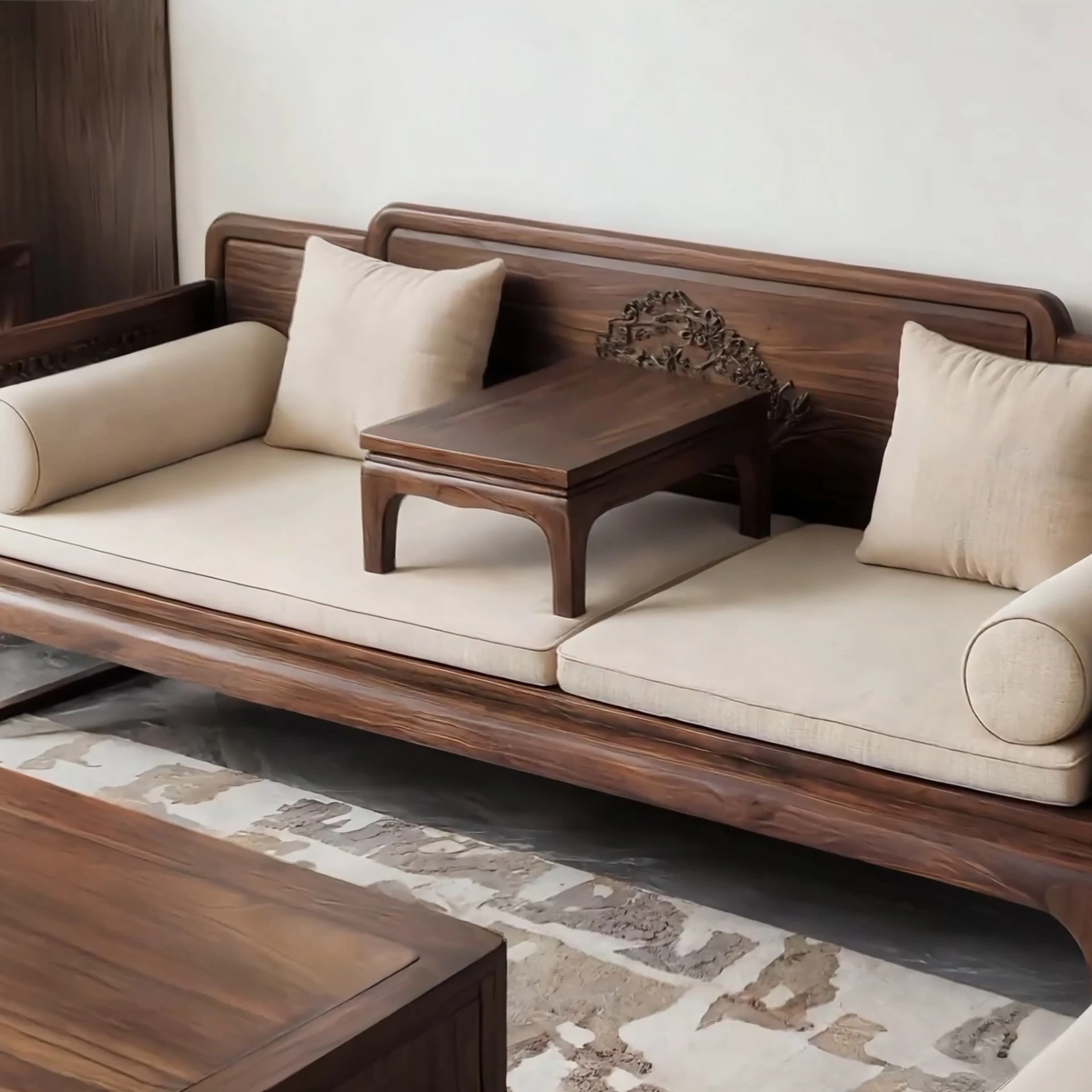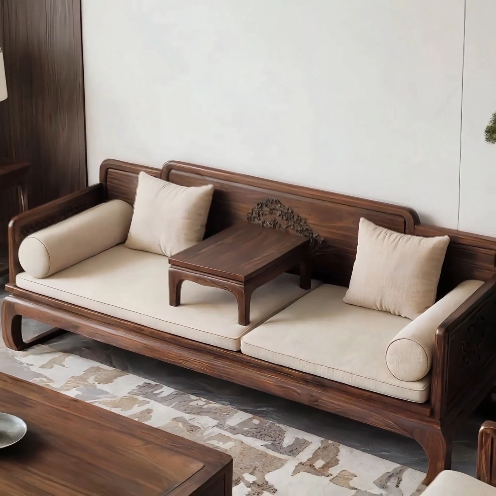 New Chinese Style North American Black Walnut Solid Wood Sofa Set - Song Aesthetic Zen Minimalist Luohan Bed and Daybed