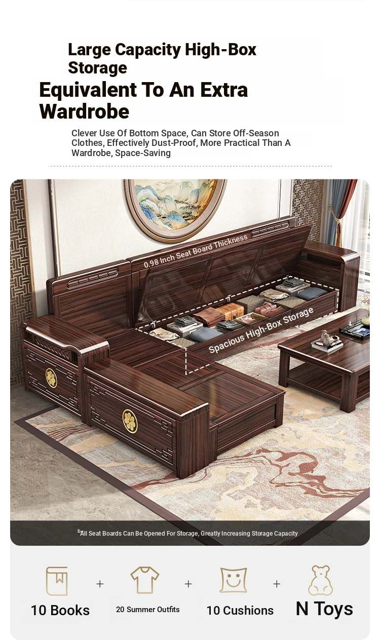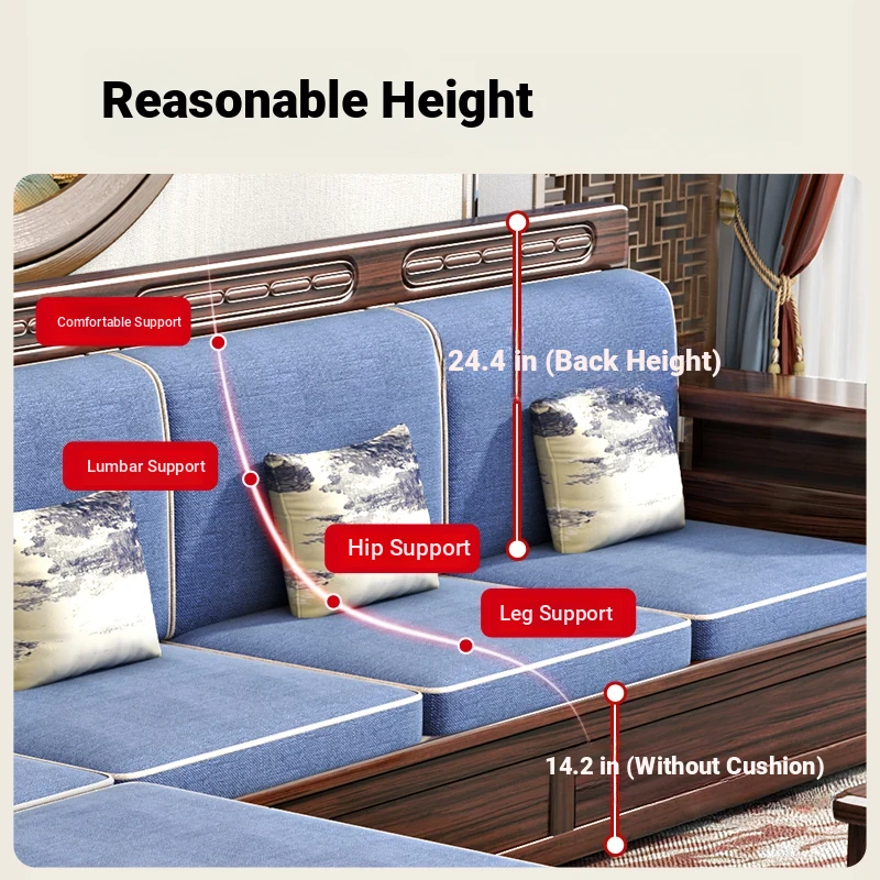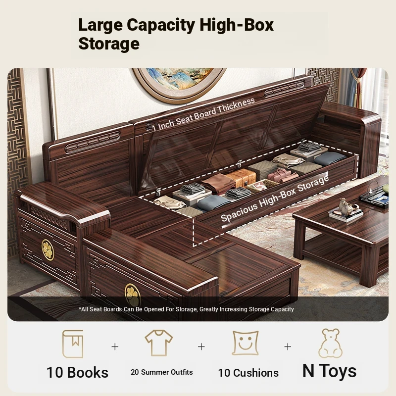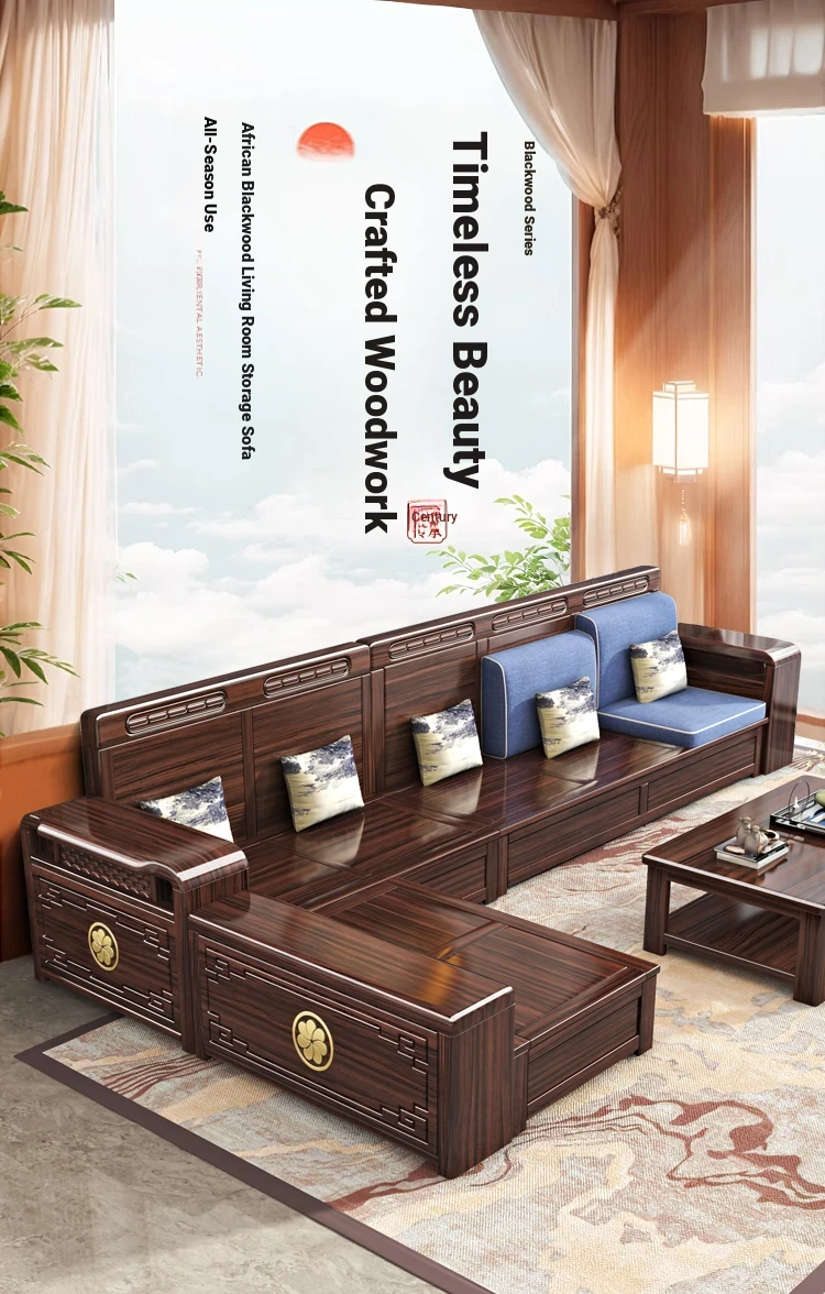 New Chinese Style Solid Rosewood Sofa - All Solid Wood, Minimalist Design for Small Living Spaces, High-Box Model, Direct Factory Sale