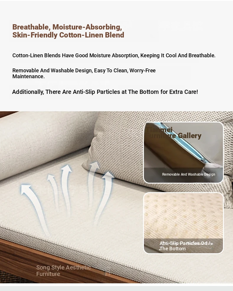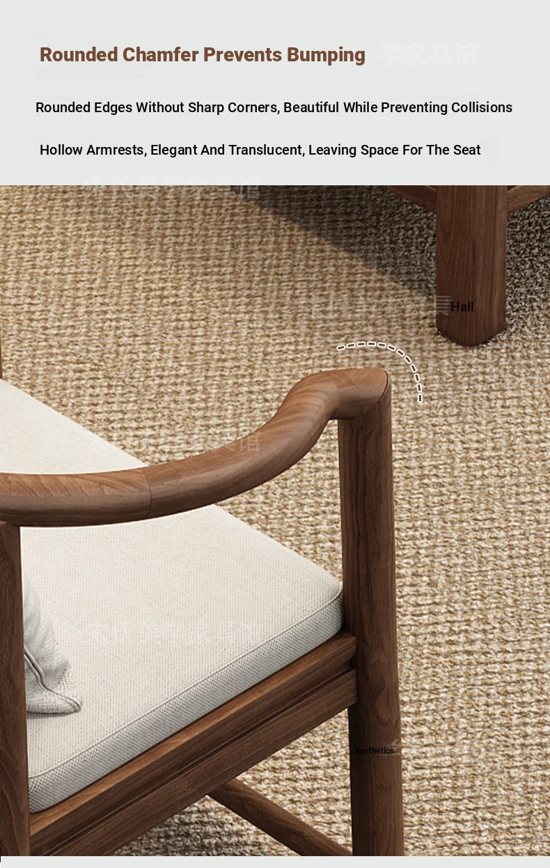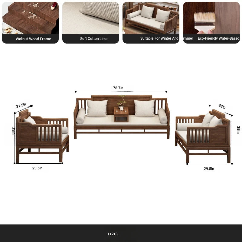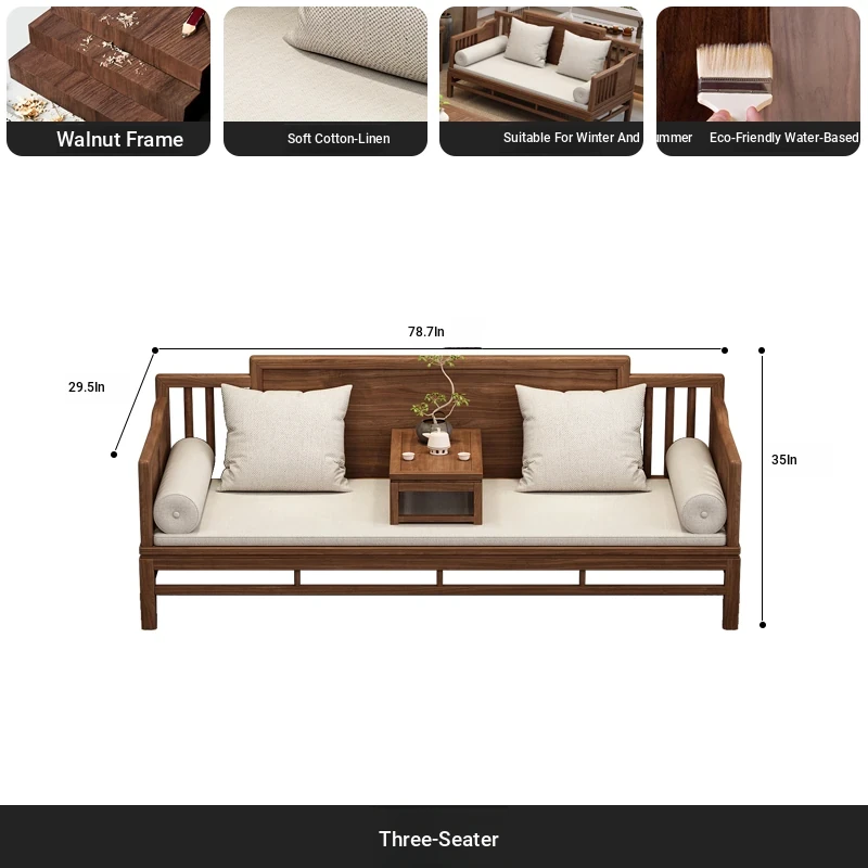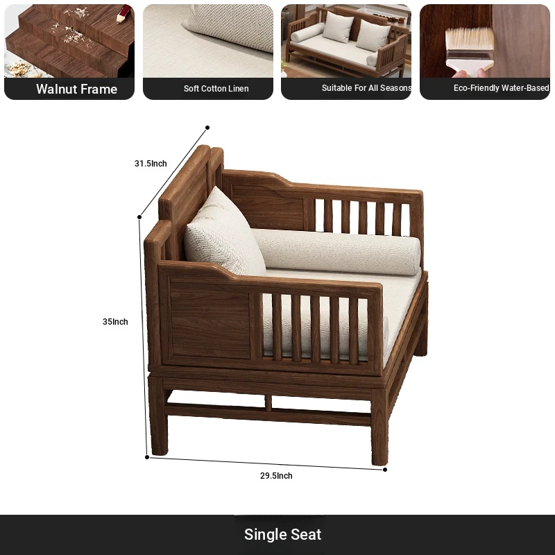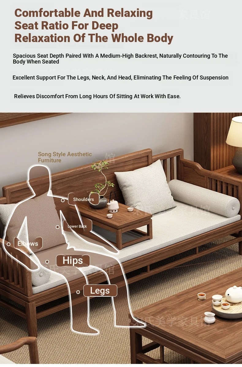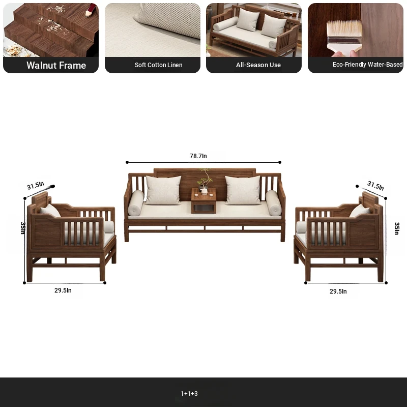 New Chinese Style Solid Walnut Sofa Set - Full Solid Wood, Perfect for Small Spaces, Featuring Modern Song Aesthetic and High-End Zen Furniture Design