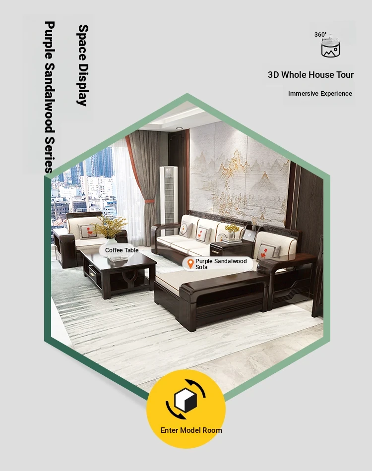 "New Chinese Style Solid Wood Sofa - All-Season Use, Made from Premium Purple Gold Sandalwood, Ideal for Small Spaces, Zen-Inspired Design for Your Living Room"