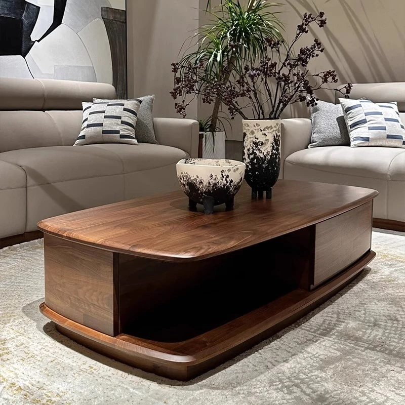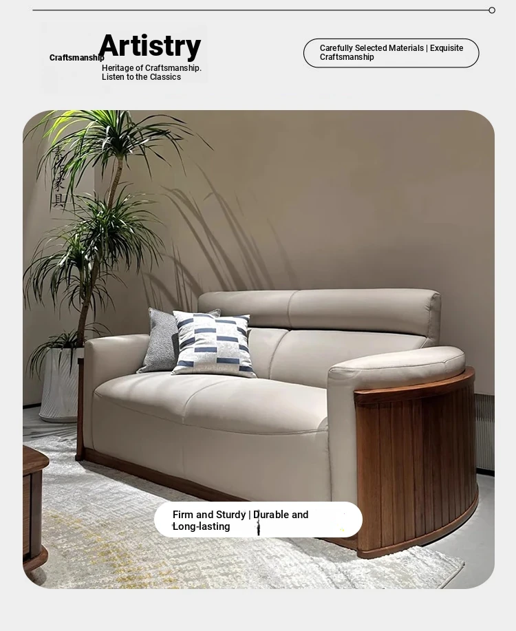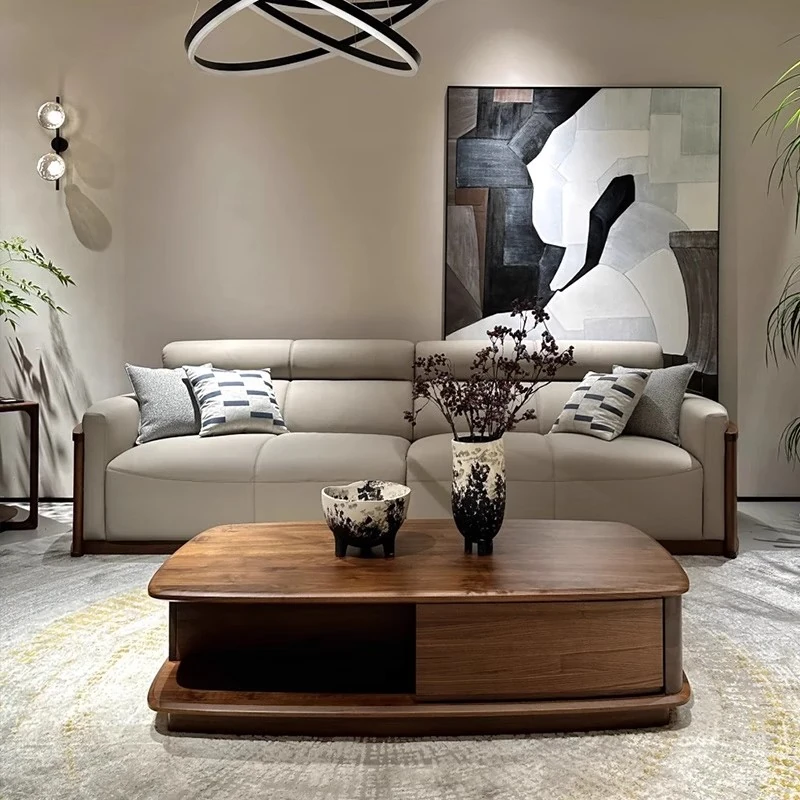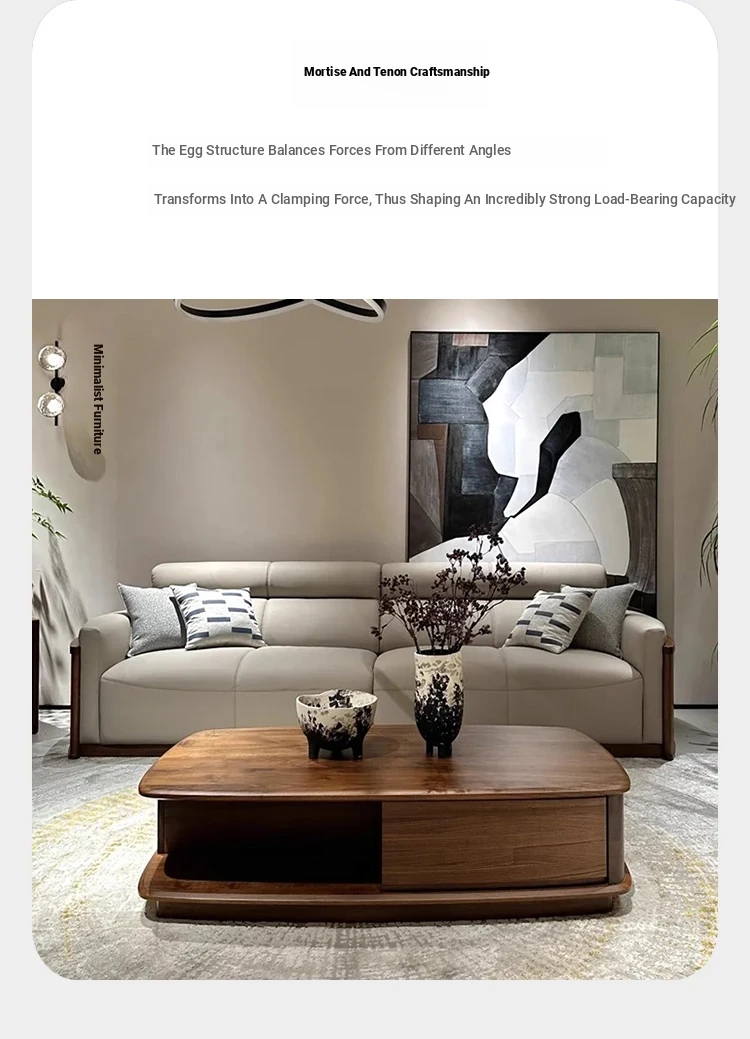 New Chinese Style Solid Wood Sofa in North American Black Walnut and Ash – Modern Nordic Minimalist Living Room Furniture for Small to Medium Spaces