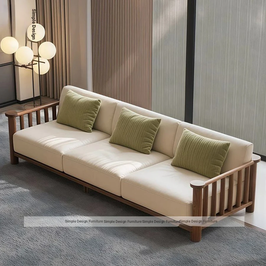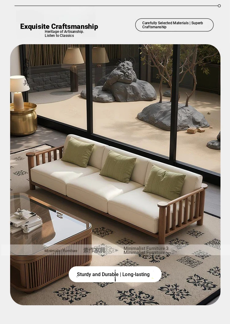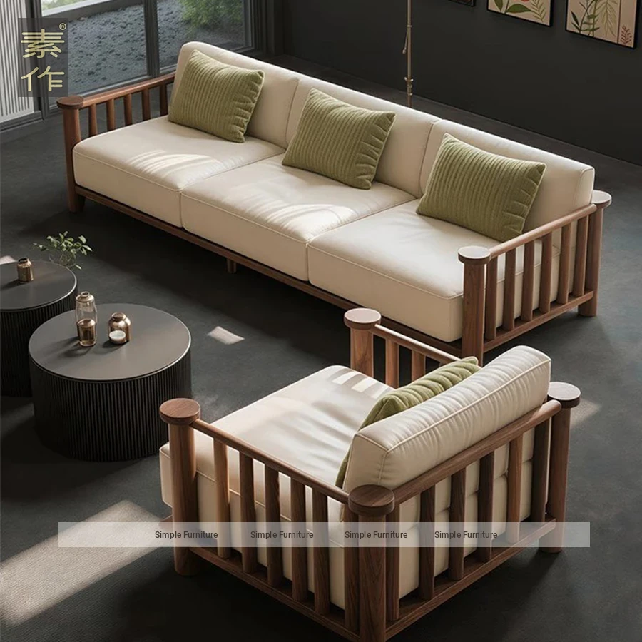 New Chinese Style Solid Wood Sofa with Genuine Leather for Living Room - 2025 Modern Minimalist Design, Perfect for Small Spaces, High-End Comfort for Your Home