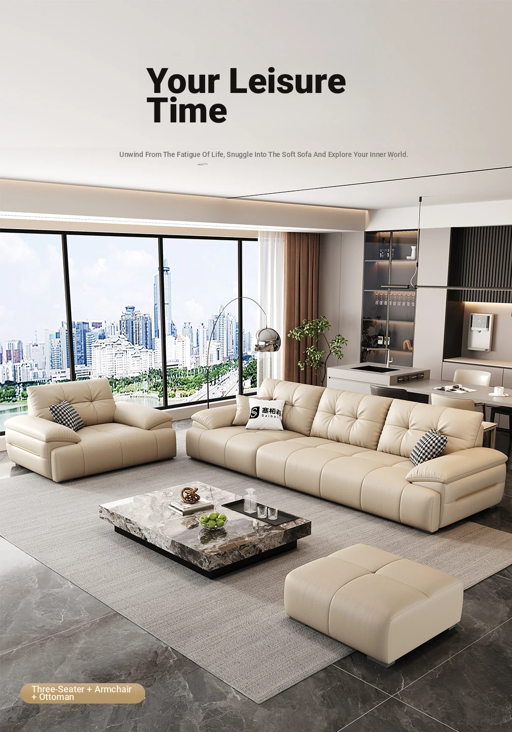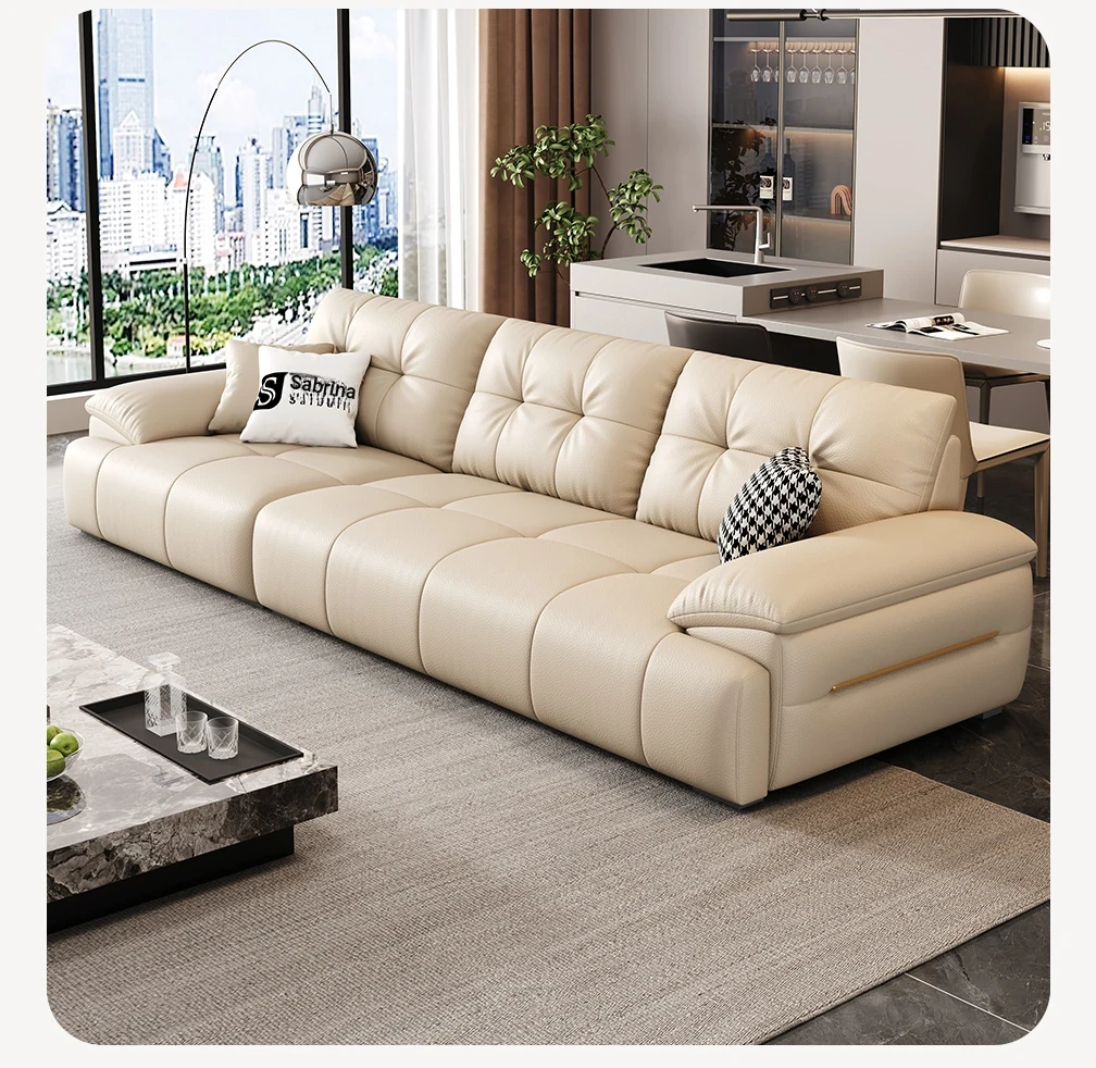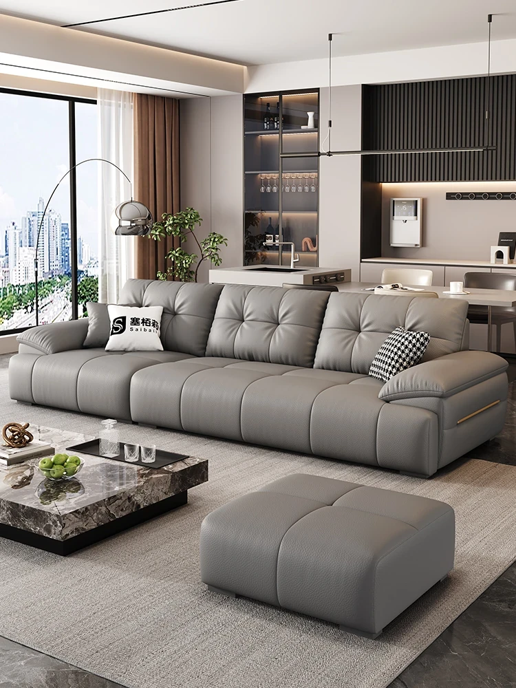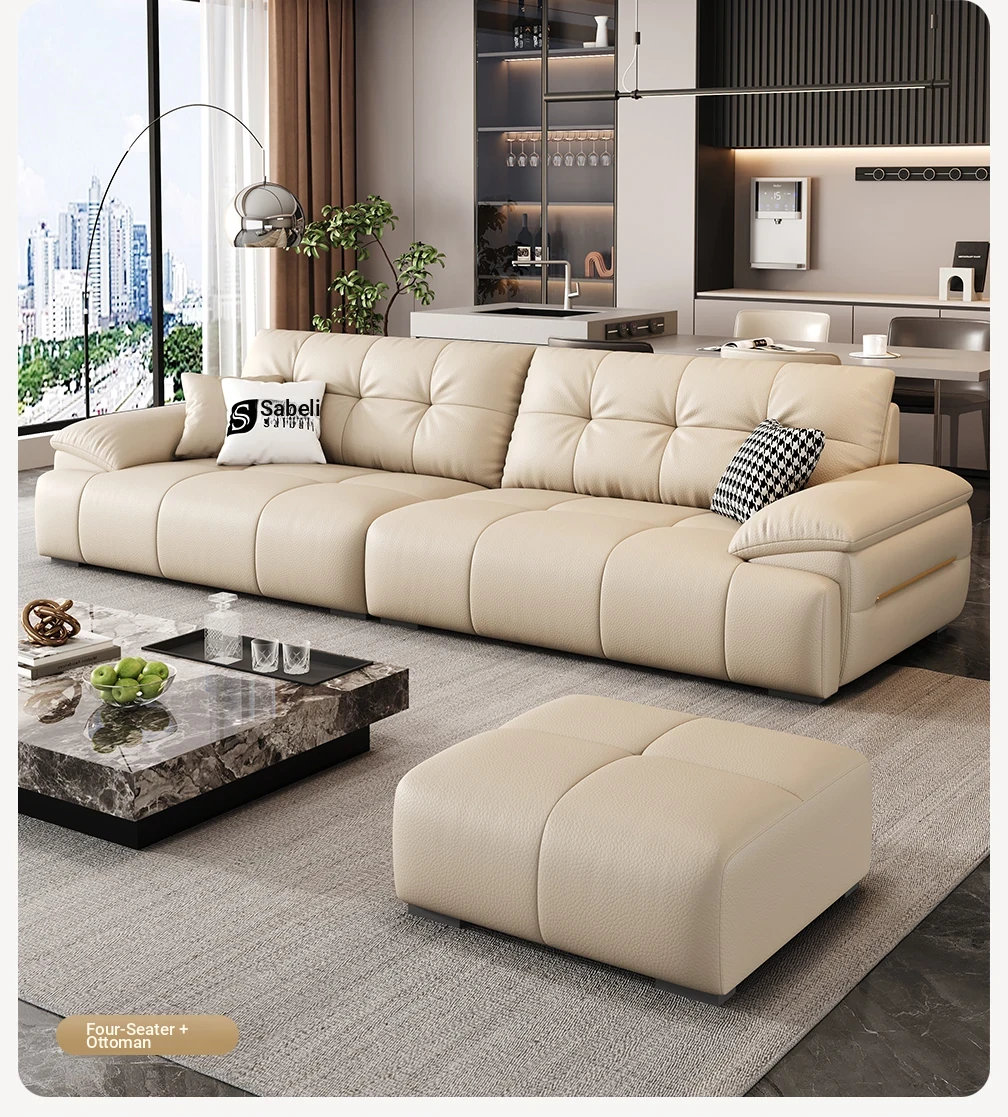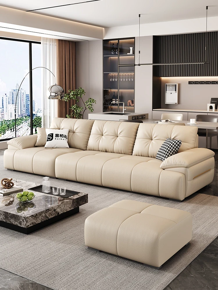 New Italian Minimalist Modern Genuine Leather Sofa Set - Luxurious and Stylish 3-Seater and 4-Seater Combination for Small to Medium Living Rooms