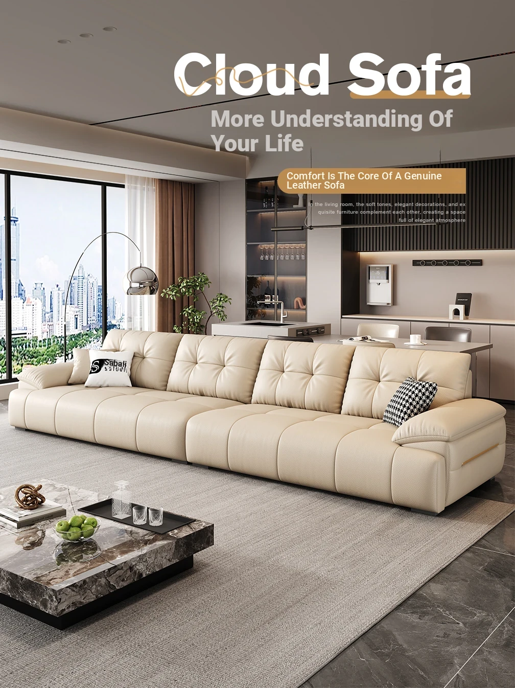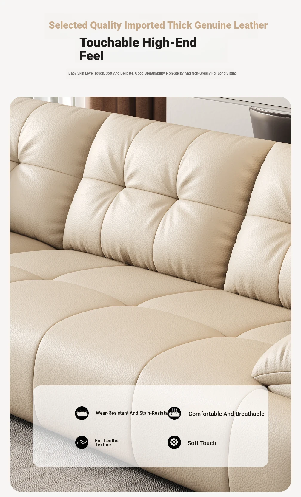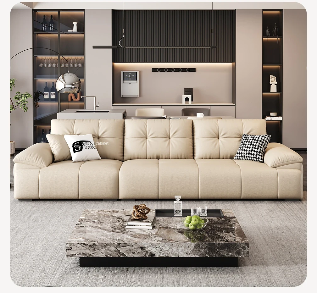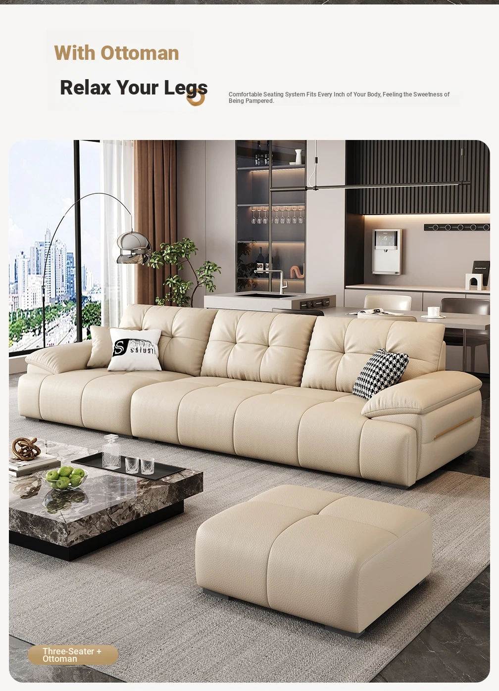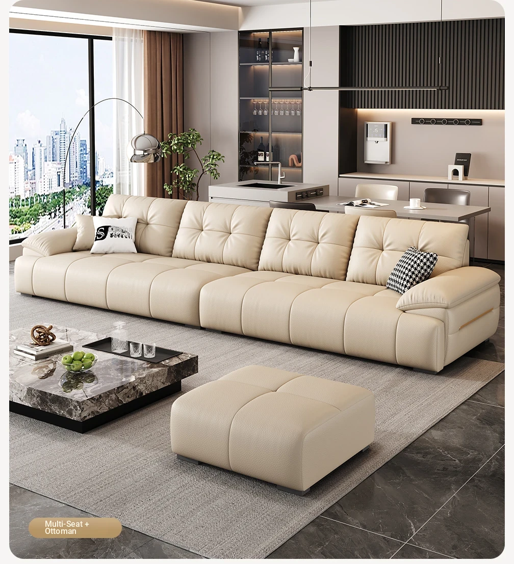 New Italian Minimalist Modern Genuine Leather Sofa Set - Luxurious and Stylish 3-Seater and 4-Seater Combination for Small to Medium Living Rooms