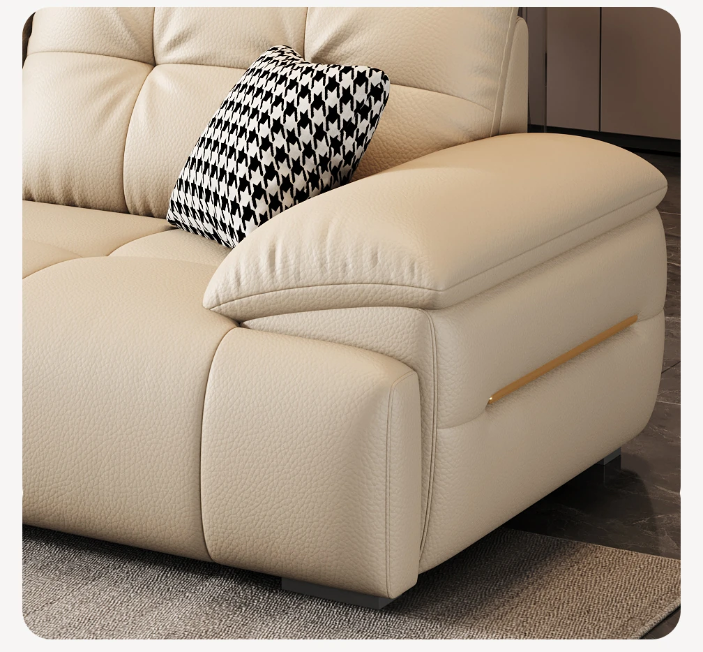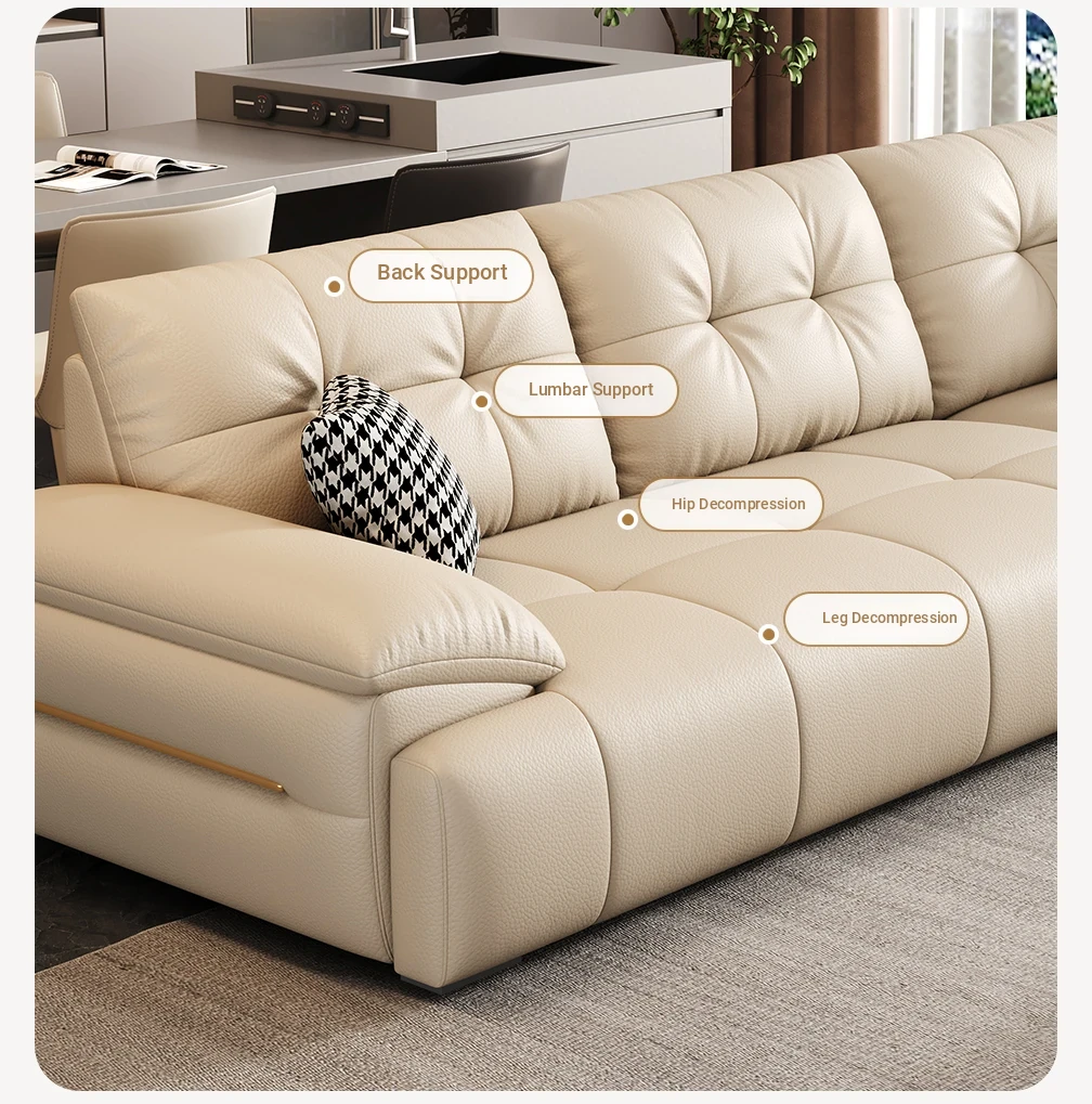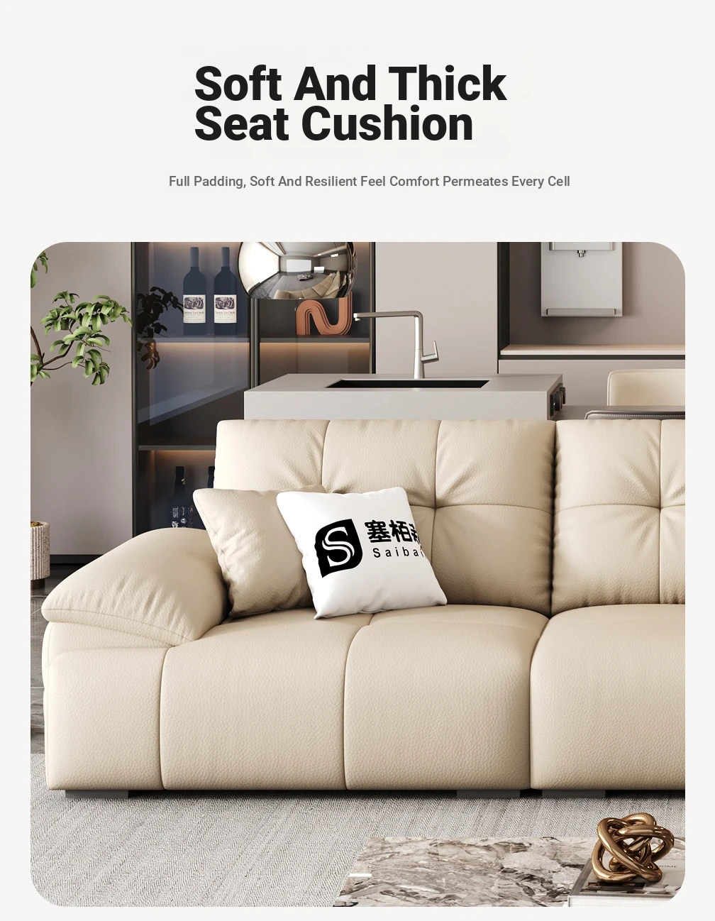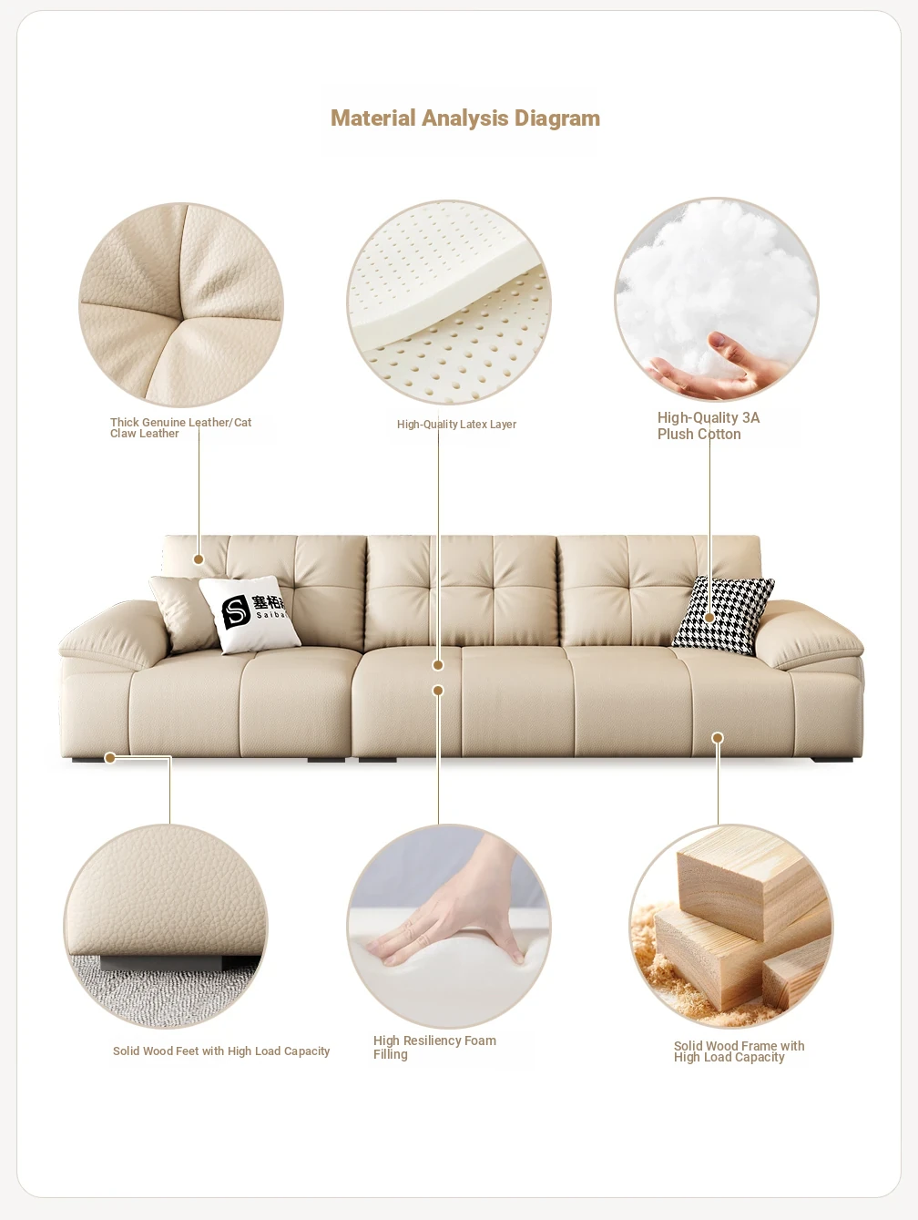 New Italian Minimalist Modern Genuine Leather Sofa Set - Luxurious and Stylish 3-Seater and 4-Seater Combination for Small to Medium Living Rooms