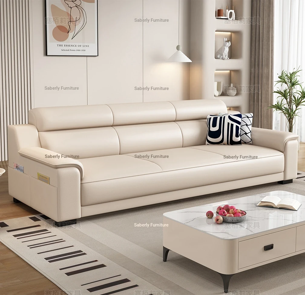 Nordic 2025 New Arrival Modern Minimalist Cat Scratch-Resistant Leather Sofa for Small Living Rooms - Stylish 3-Seater Design, Perfect for Trendy Homes!