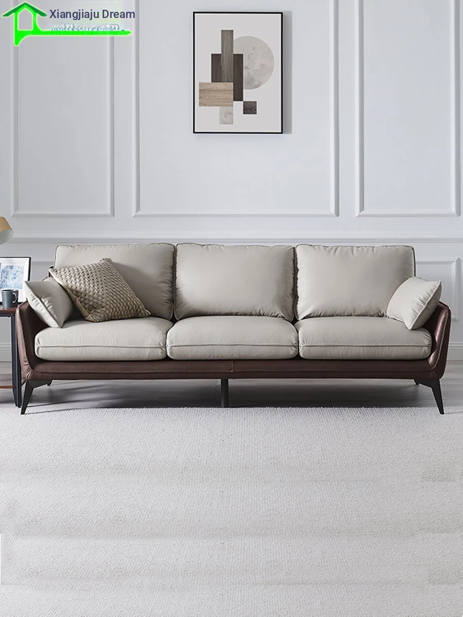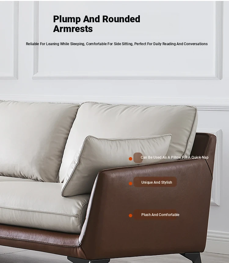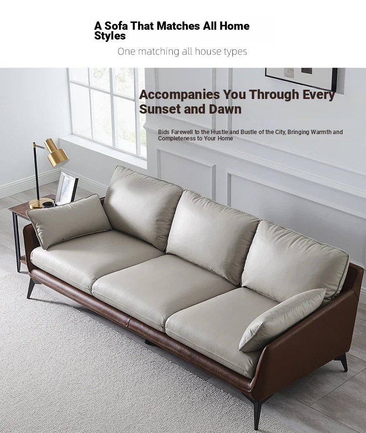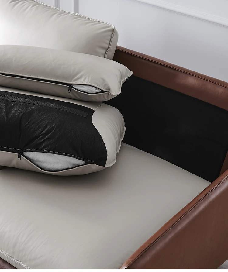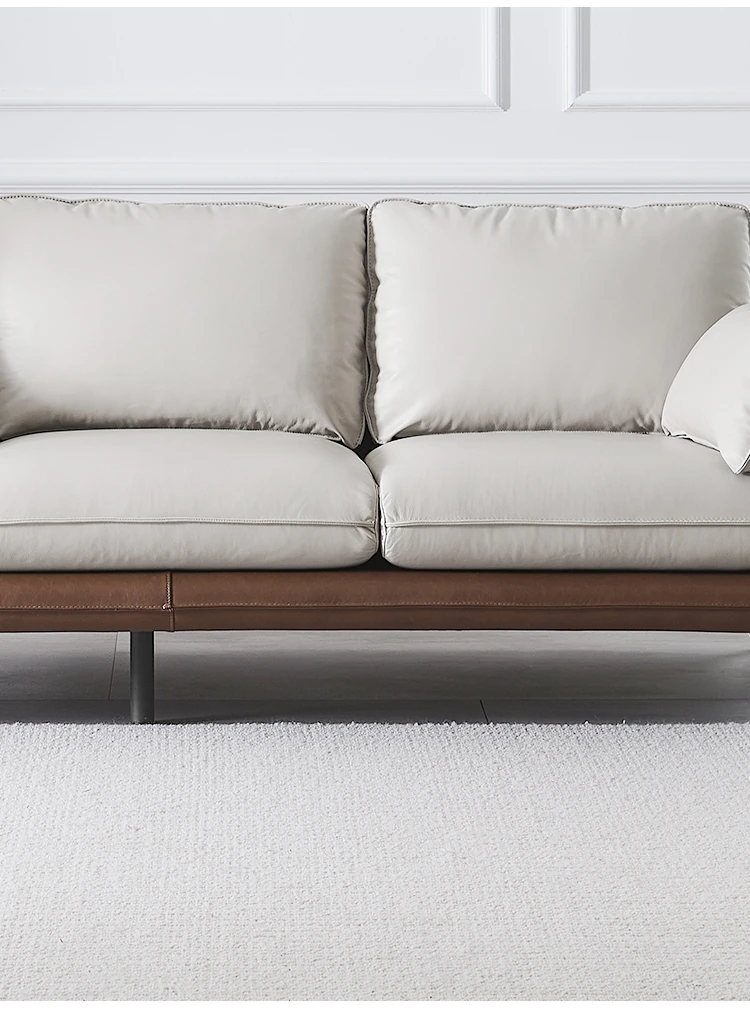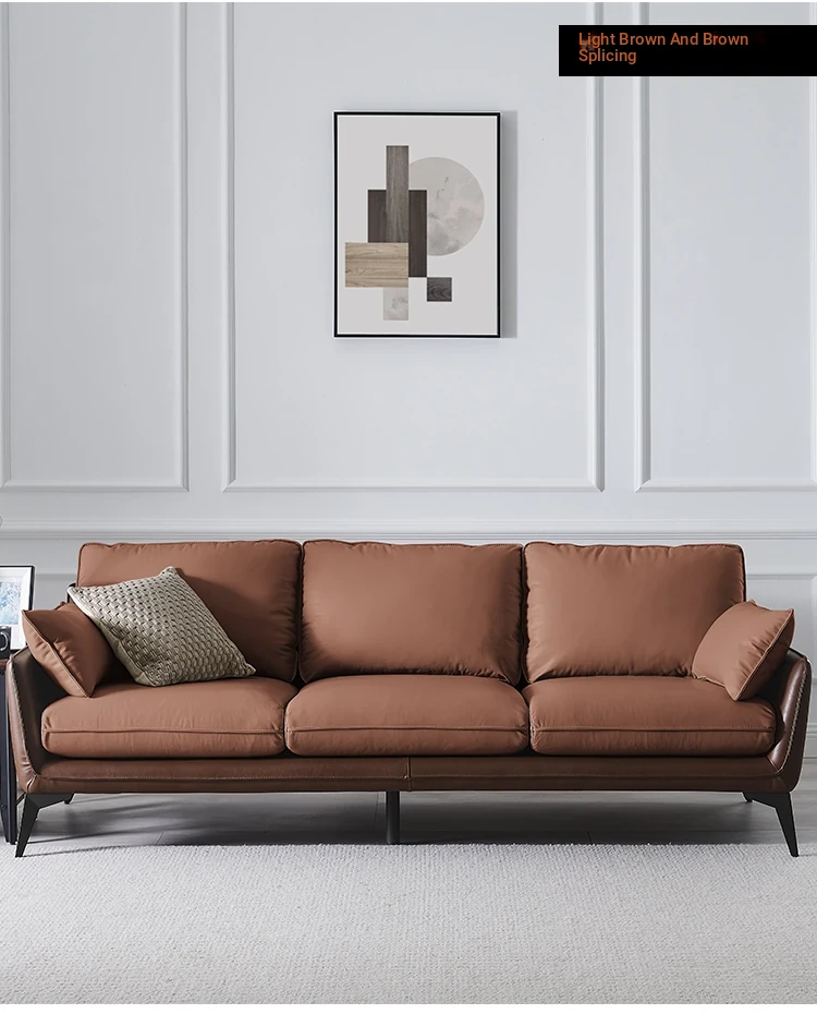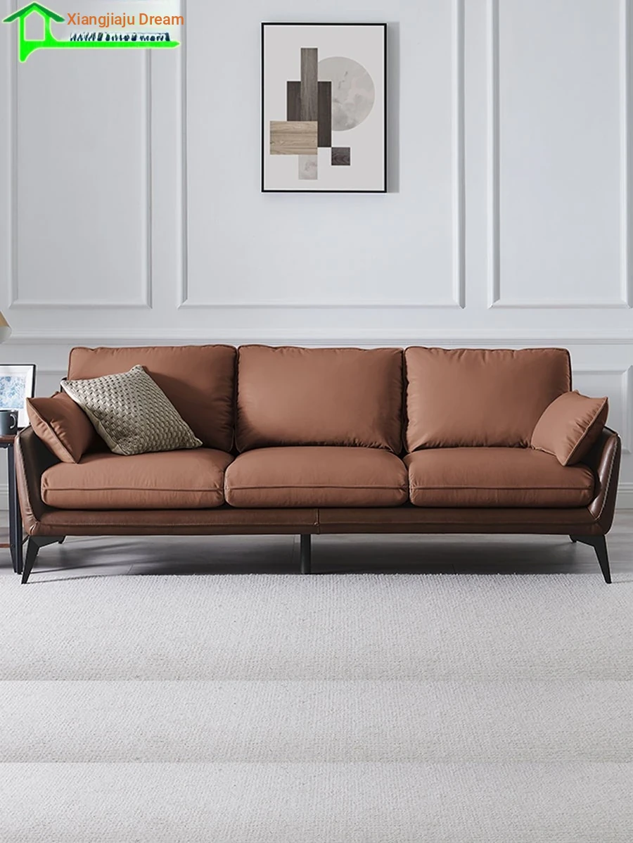 Nordic Italian Minimalist Genuine Leather Sofa - Stylish and Compact Design for Small Living Rooms and Cafés - New 2025 Collection