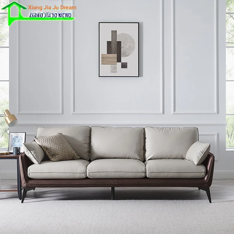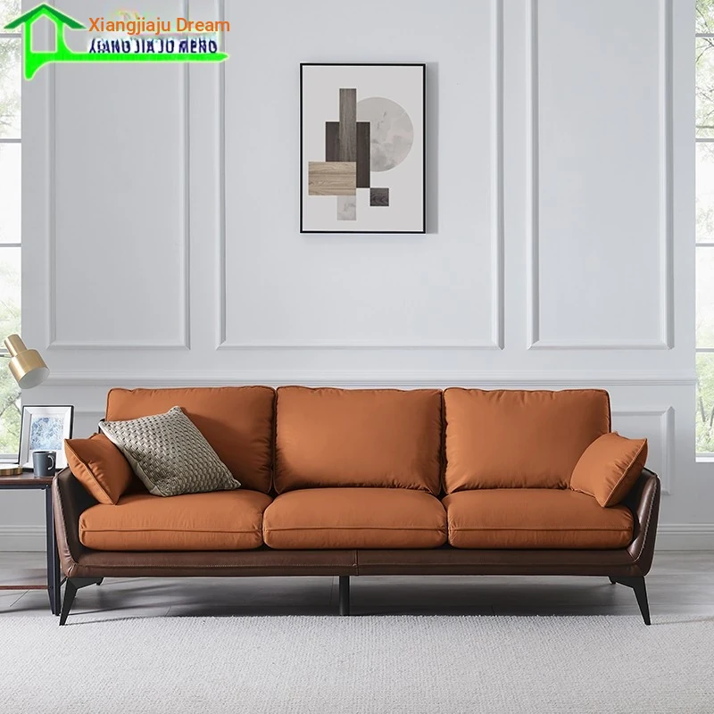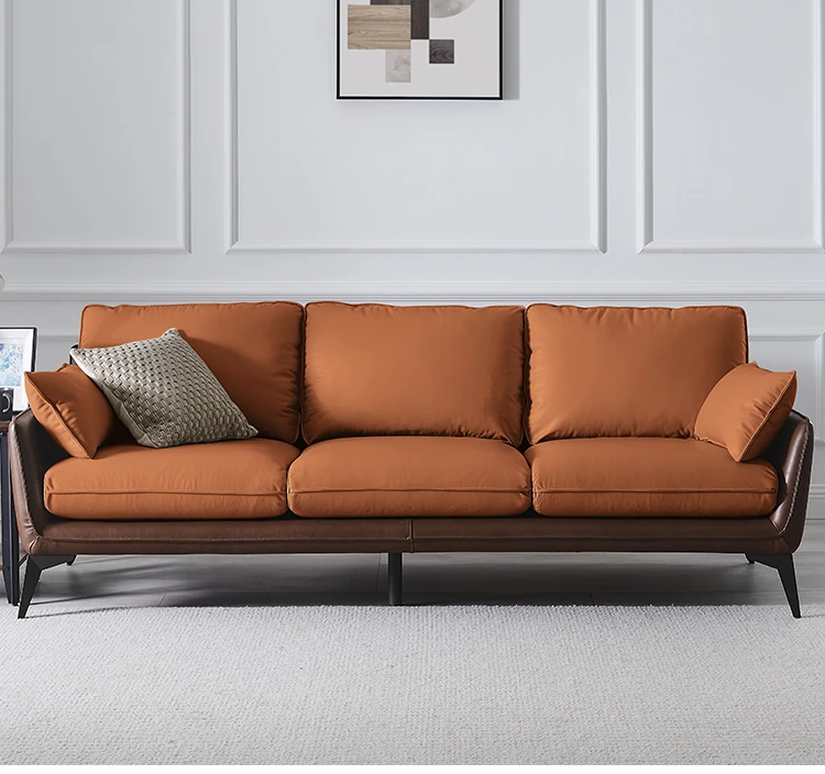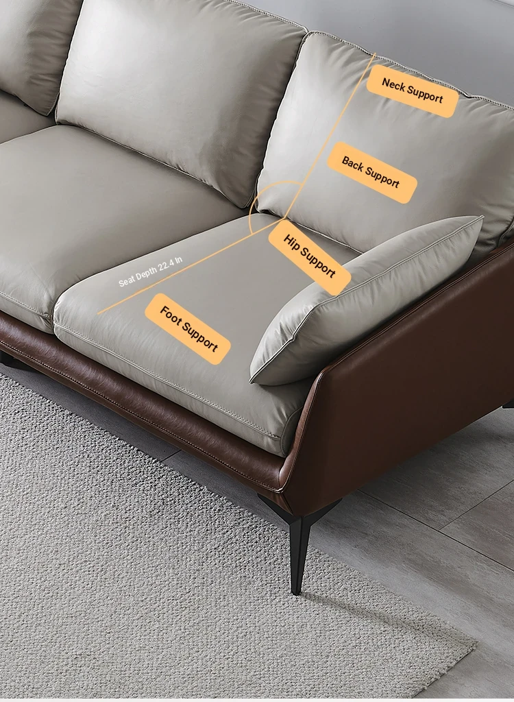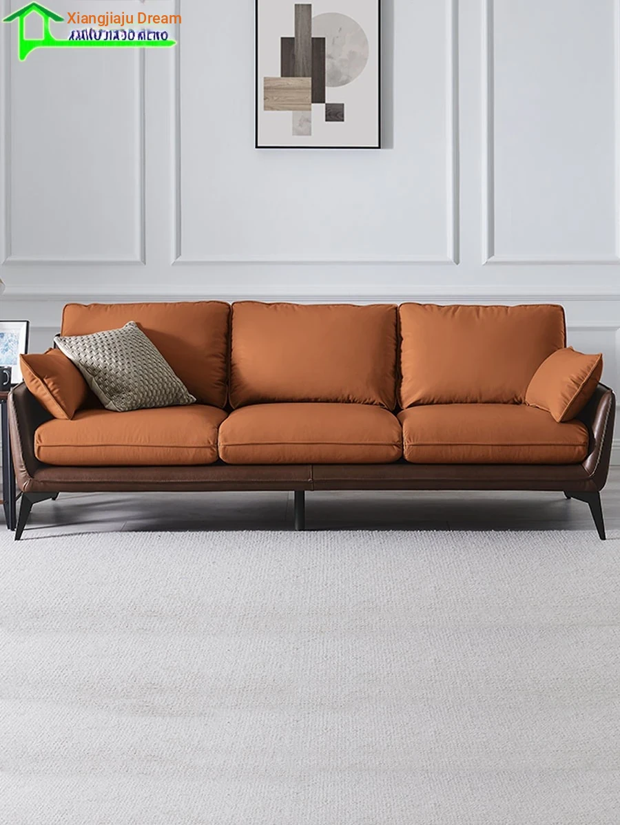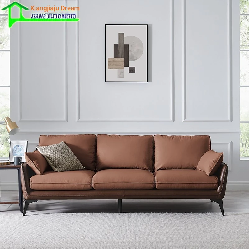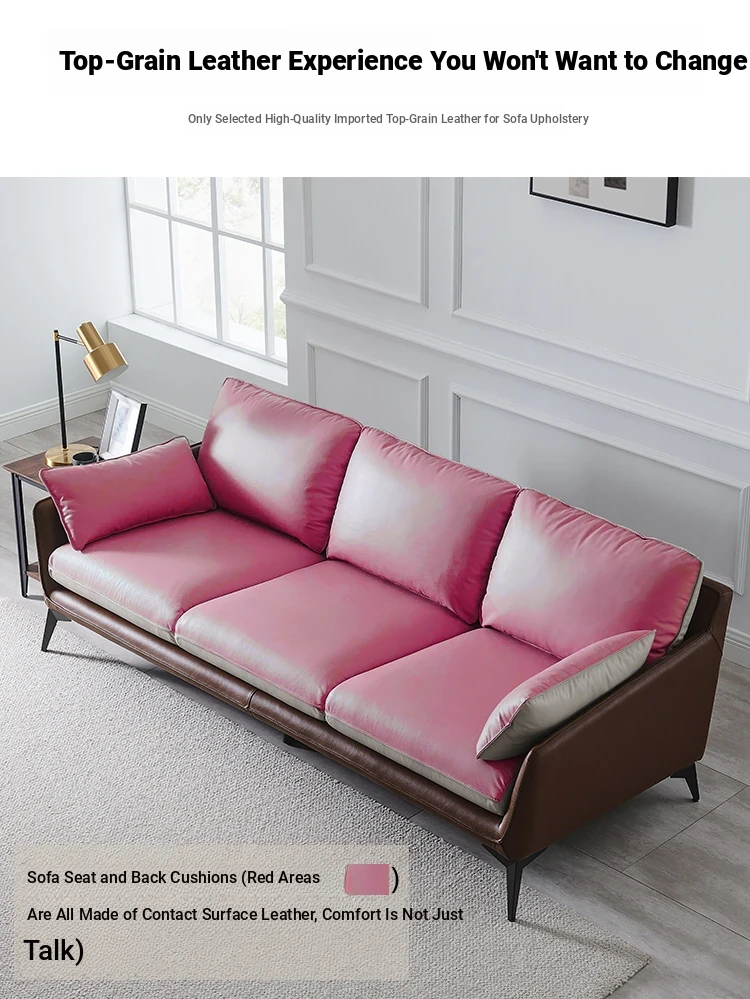Nordic Italian Minimalist Genuine Leather Sofa - Stylish and Compact Design for Small Living Rooms and Cafés - New 2025 Collection