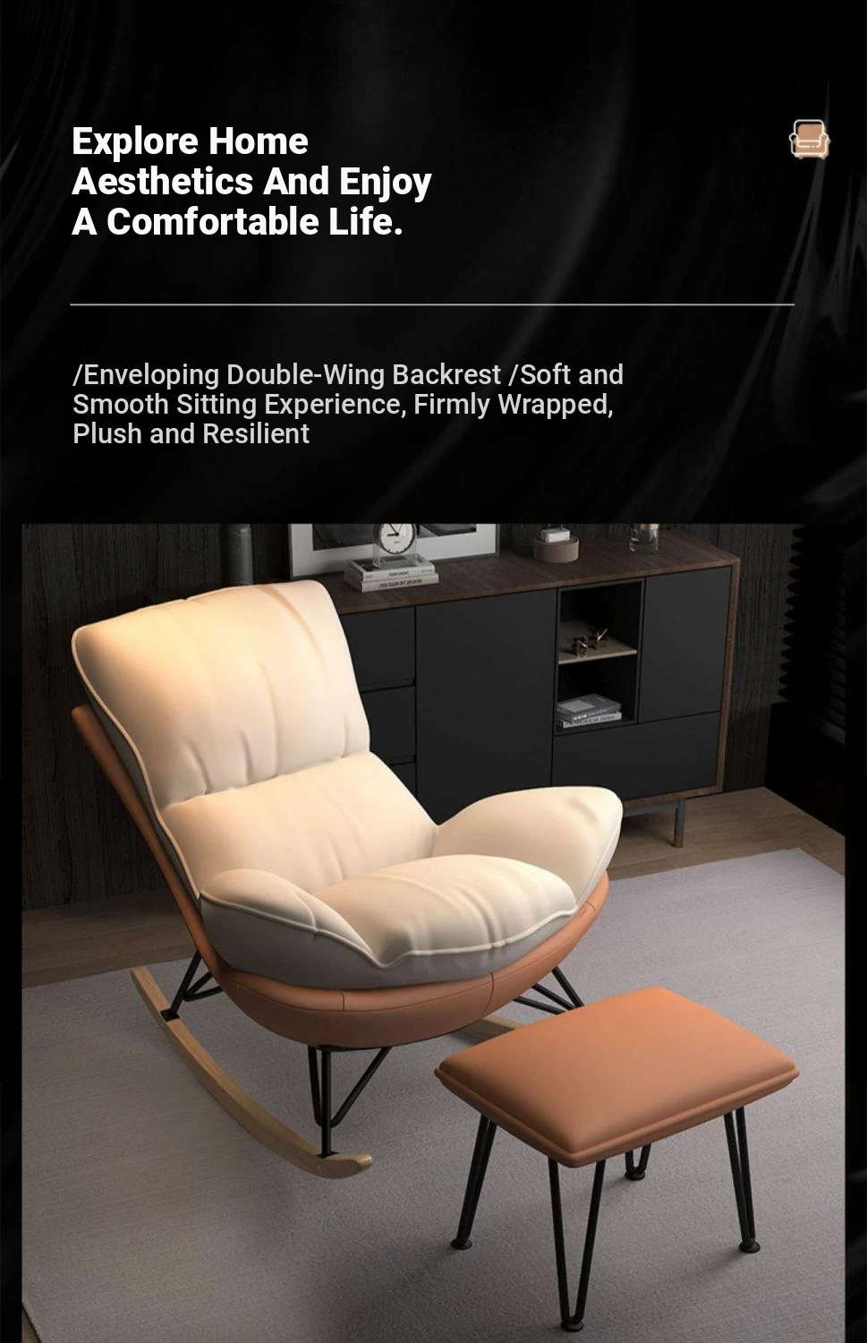 Nordic Style Trendy Rocking Chair - Comfortable Lounge Chair for Home, Perfect for Relaxing, Napping, or Enjoying Your Balcony. Elegant Single Sofa for Your Living Room.