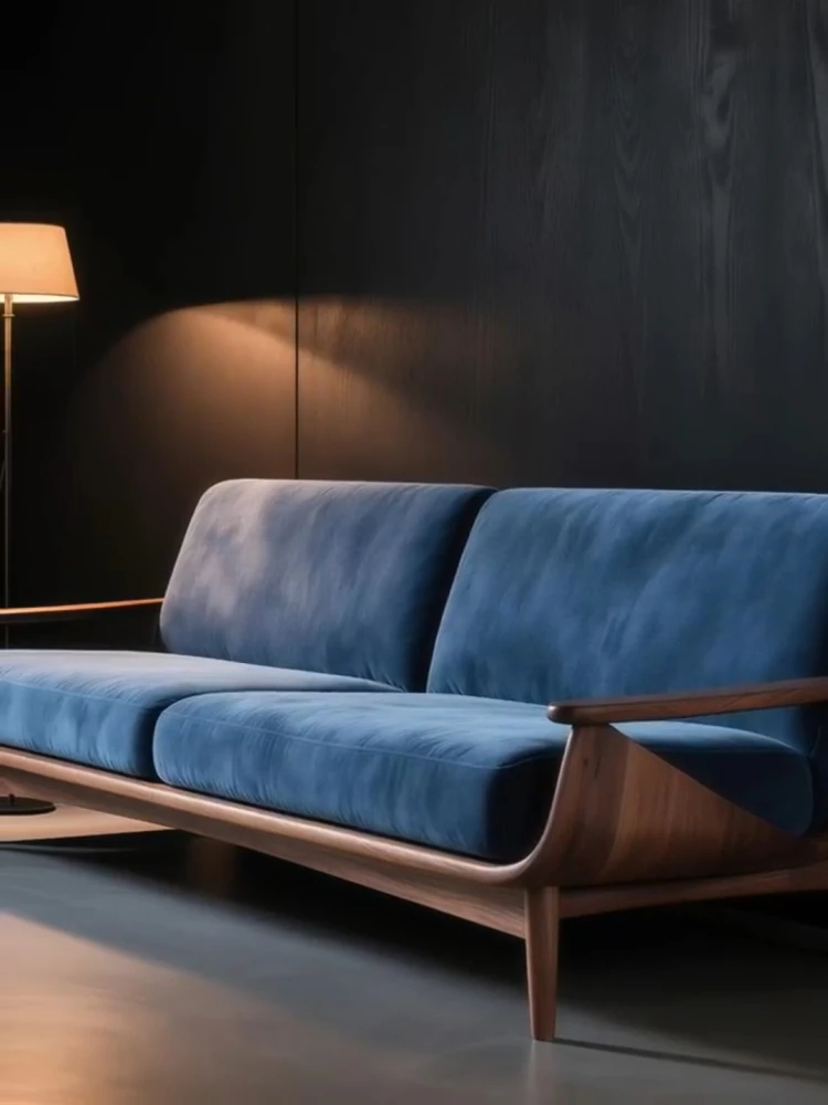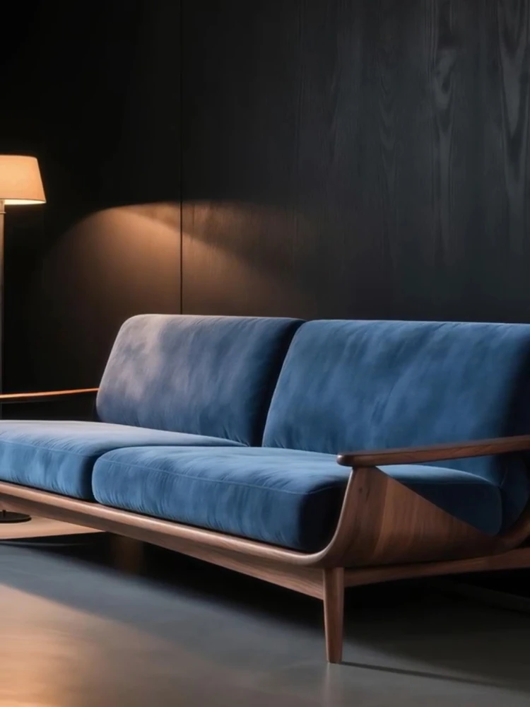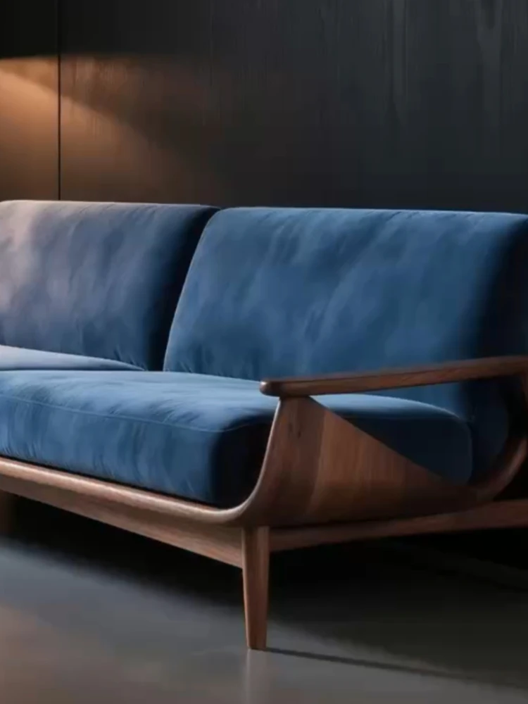 North American Black Walnut Sofa - Solid Wood Song Style Aesthetic Furniture for Living Rooms, Villas, Hotels, and Wabi-Sabi Inspired Spaces.