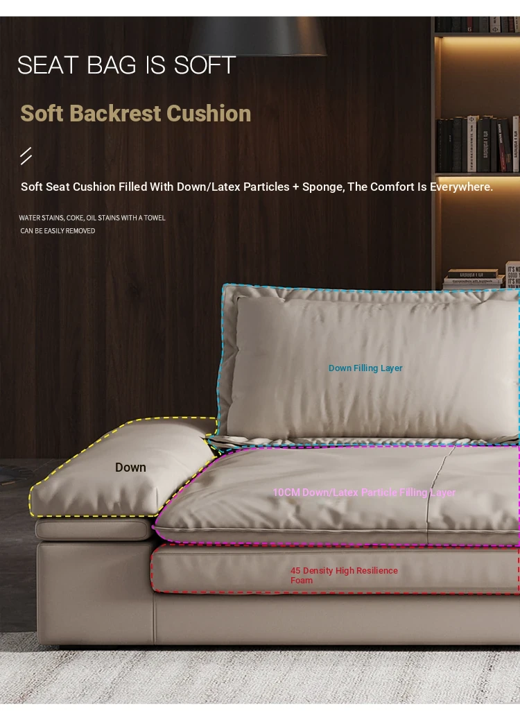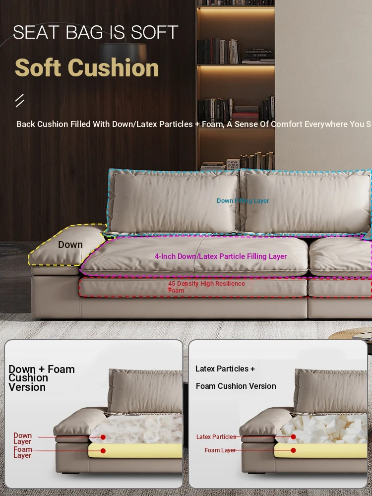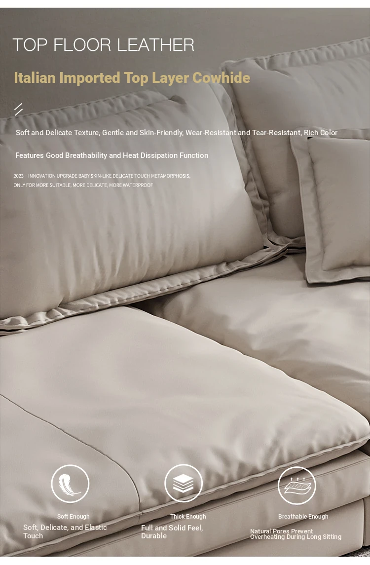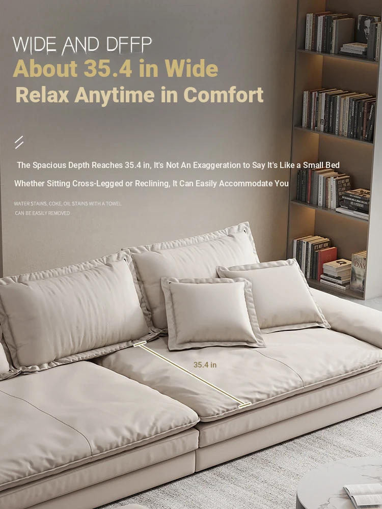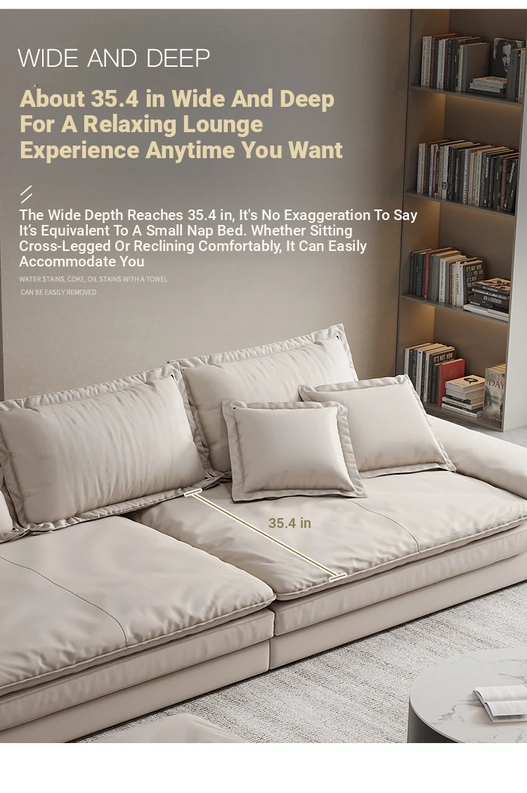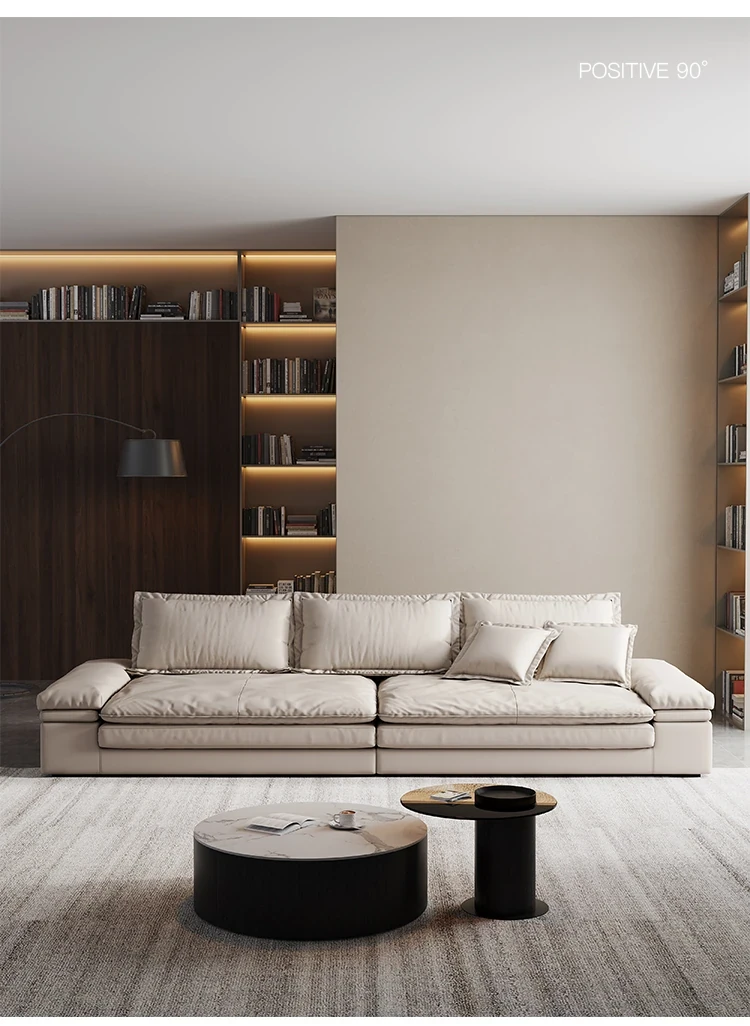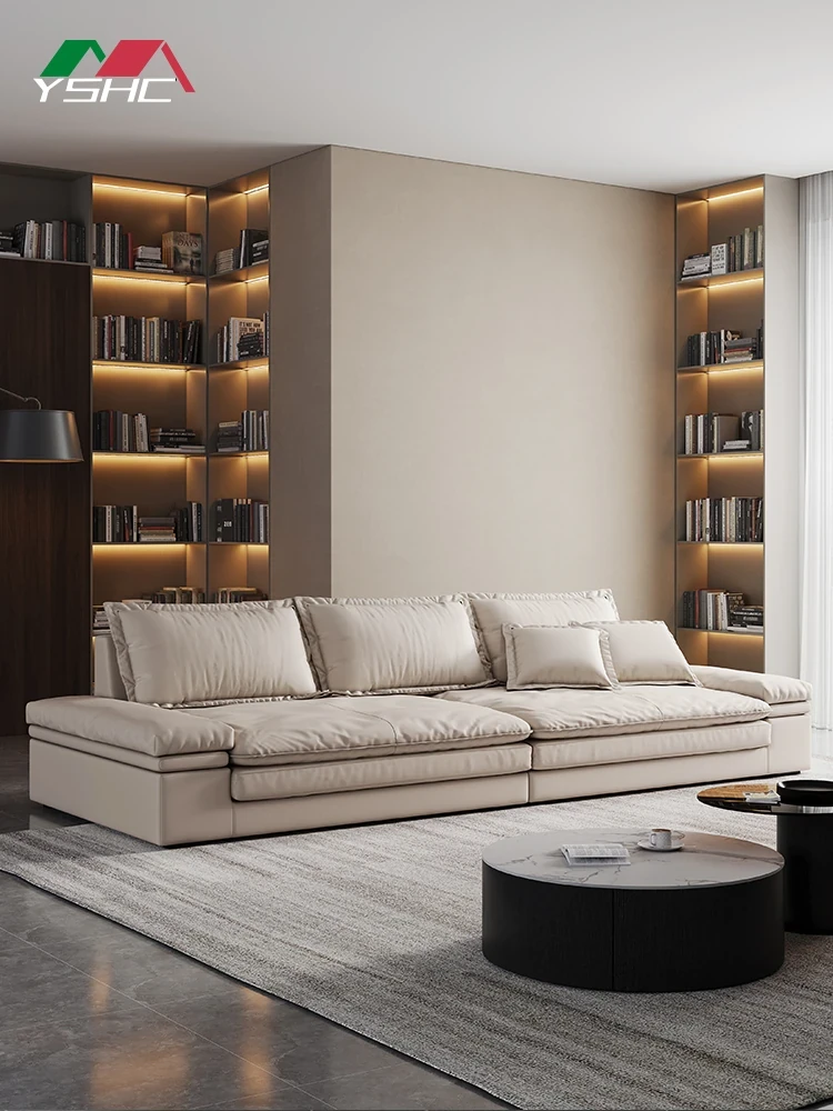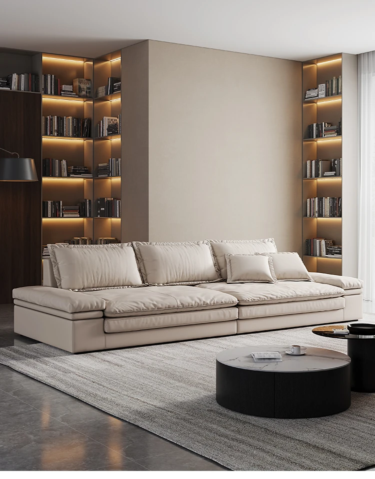 Oversized Italian Minimalist Sofa - Extra Deep & Wide, Imported Genuine Leather, Perfect for Spacious Living Rooms in Foshan - Ideal for Large Homes