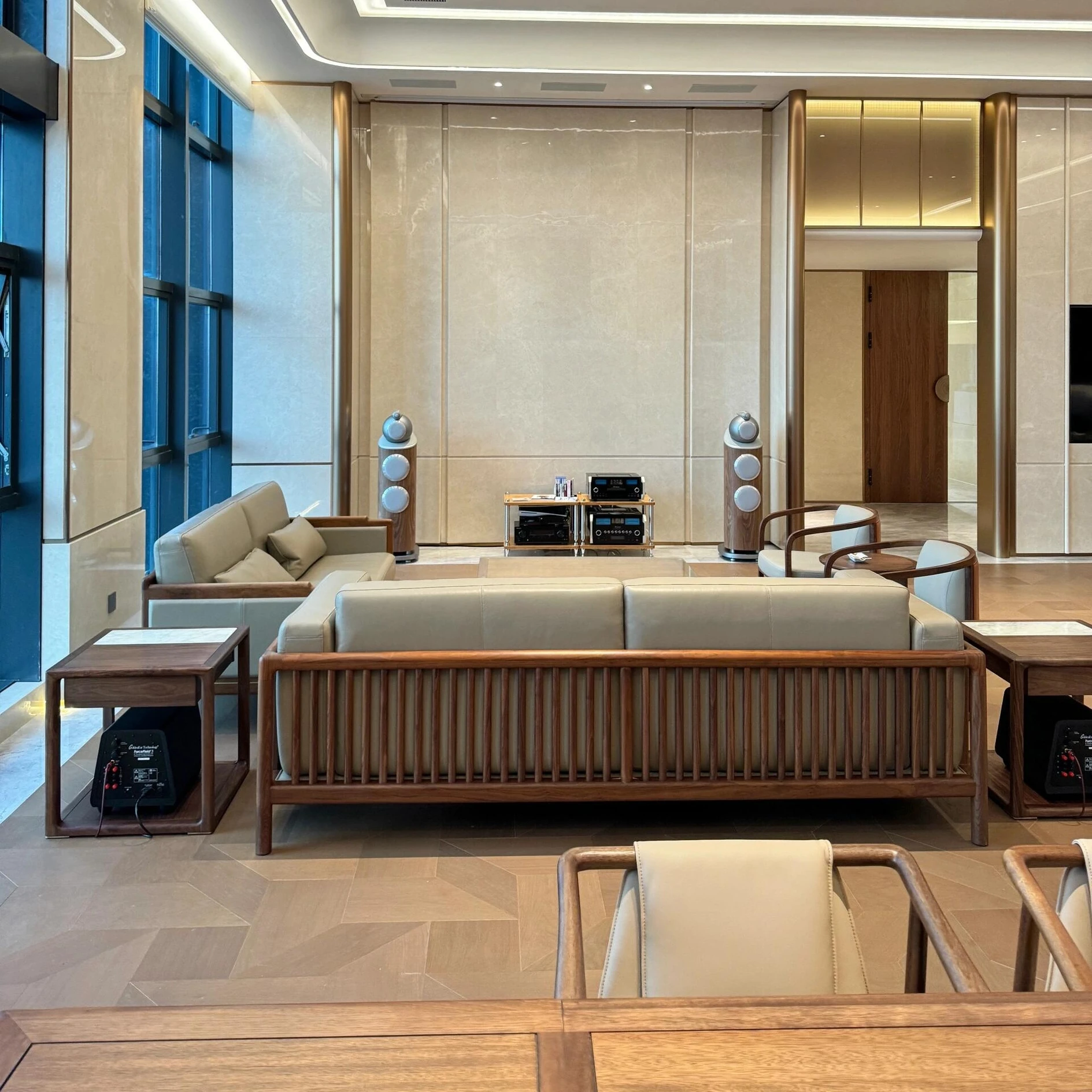Premium Black Walnut Solid Wood Sofa for Spacious Villas and Luxury Apartments - Modern Minimalist Design for High-End Living Rooms.