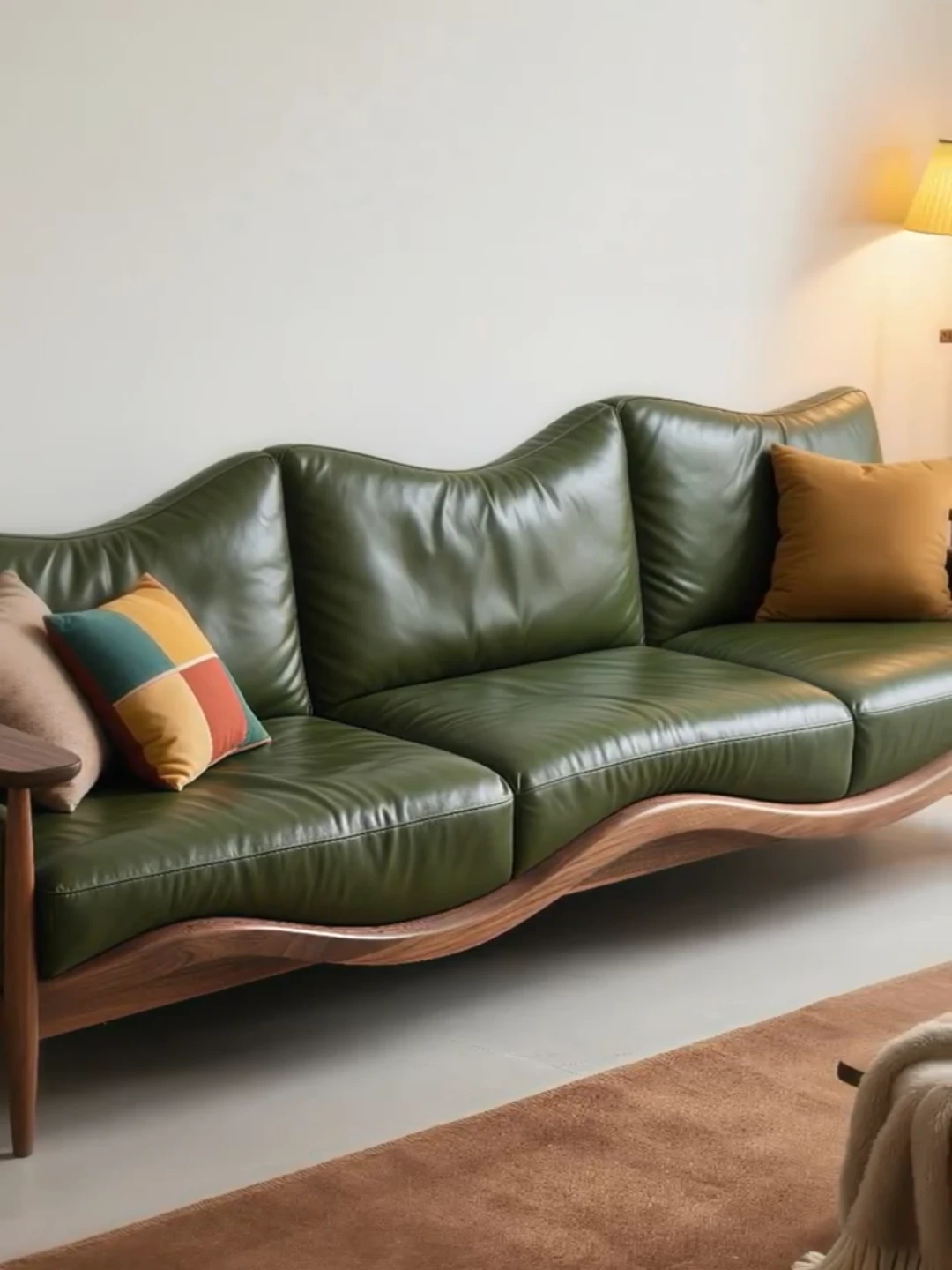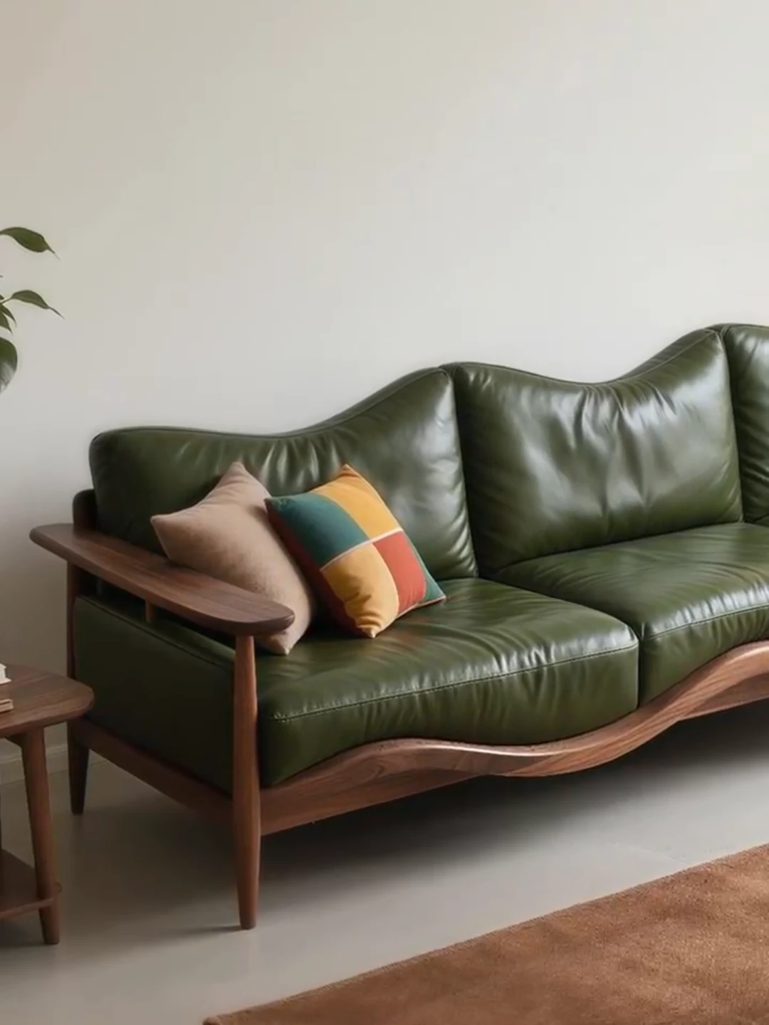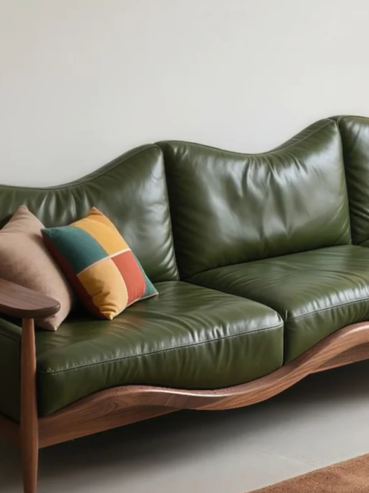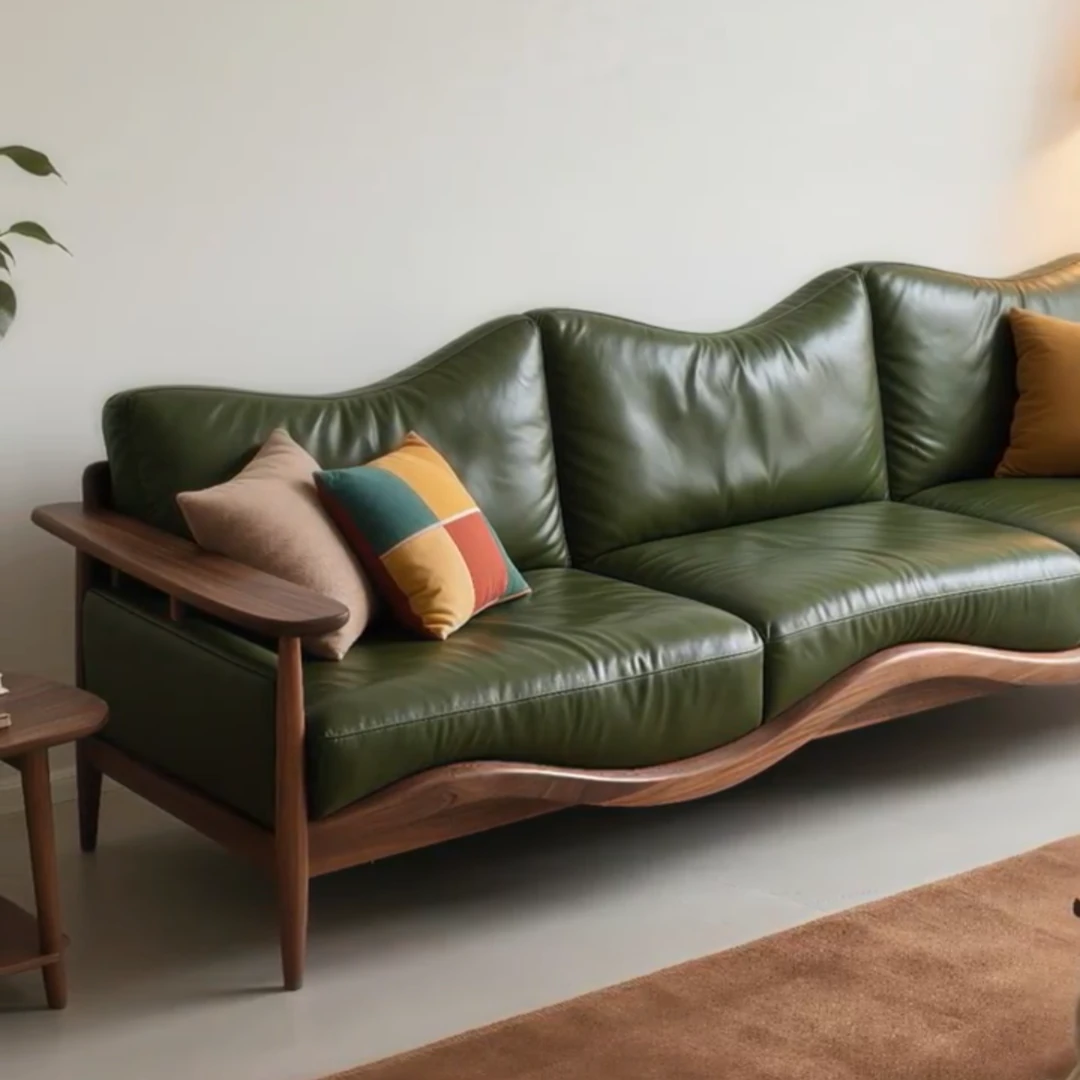 Premium North American Black Walnut Sofa - Modern Design, Luxury Leather Furniture for Hotels, Villas, and Various Sized Living Rooms and Lounges. Elevate Your Space with Sophisticated Comfort and Style!
