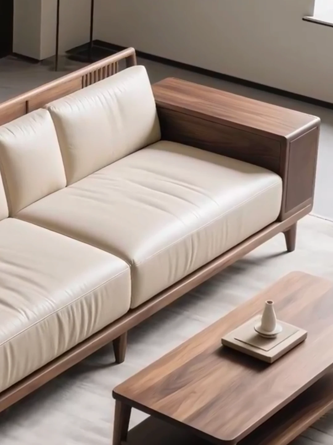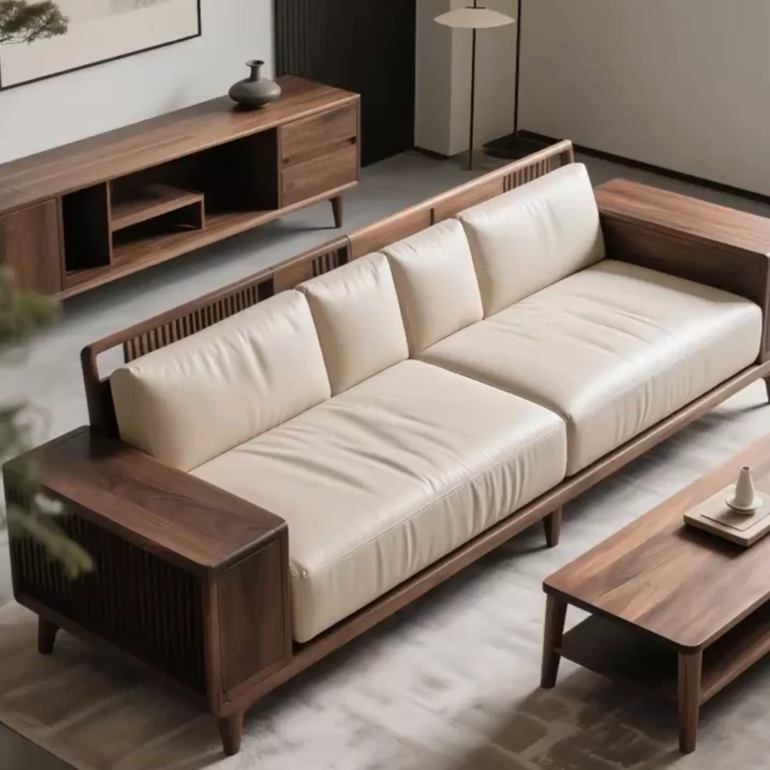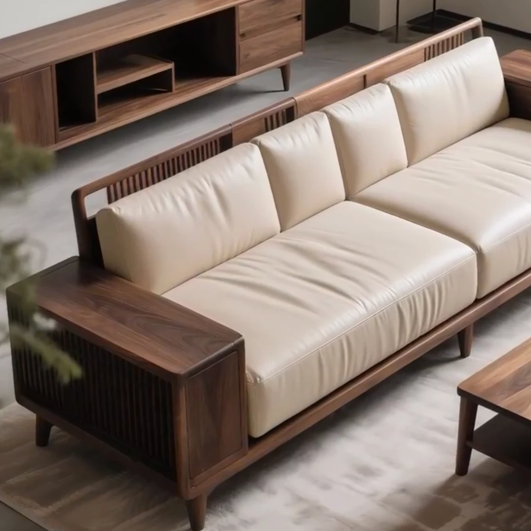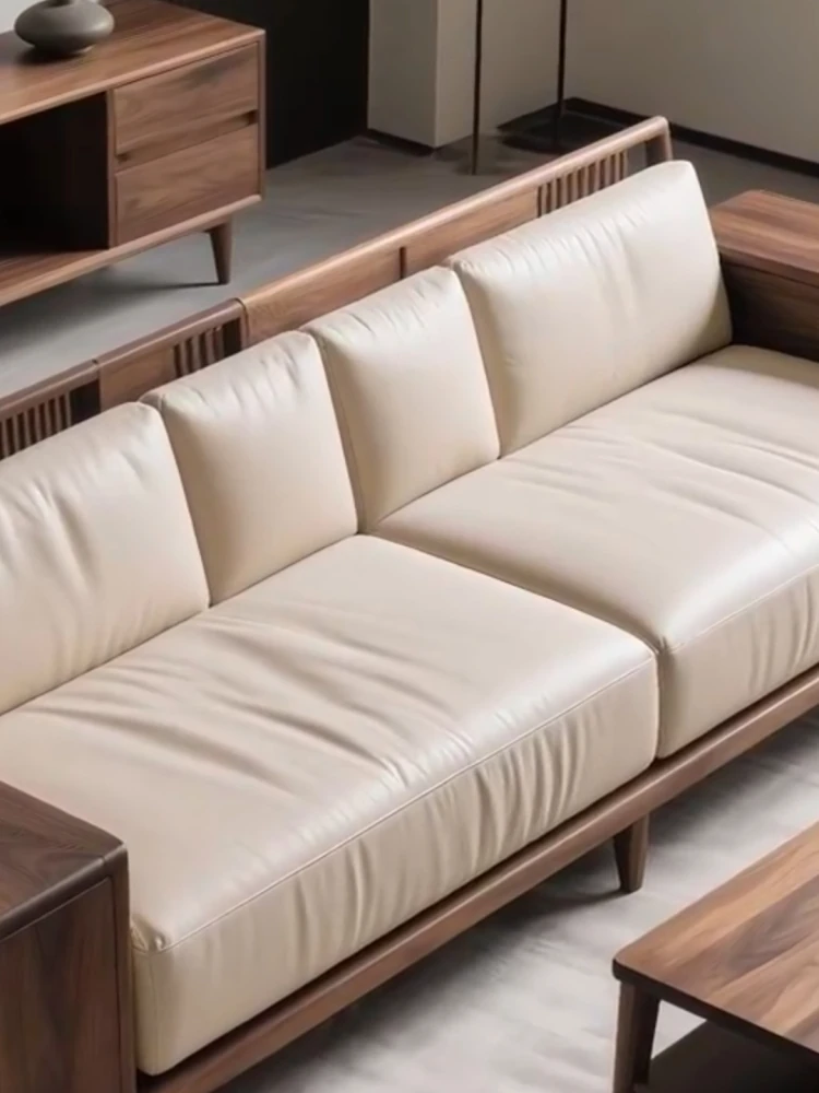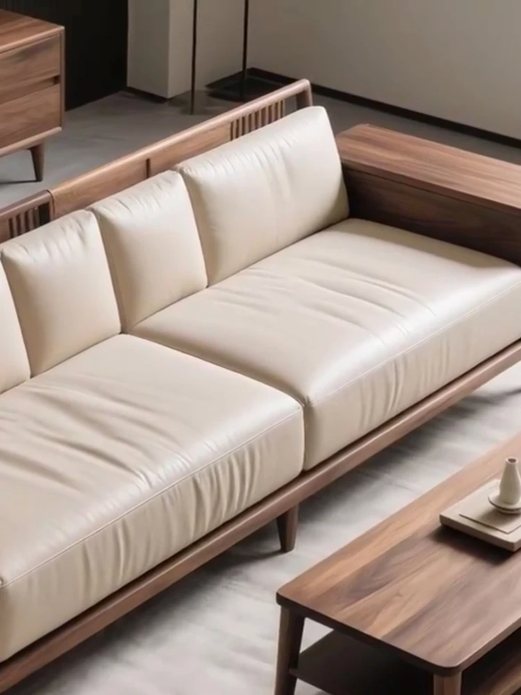 Premium North American Black Walnut Sofa - Modern Minimalist Design for Luxury Living Rooms, Hotels, Villas, and Clubs. High-Quality Genuine Leather Furniture for Any Space.