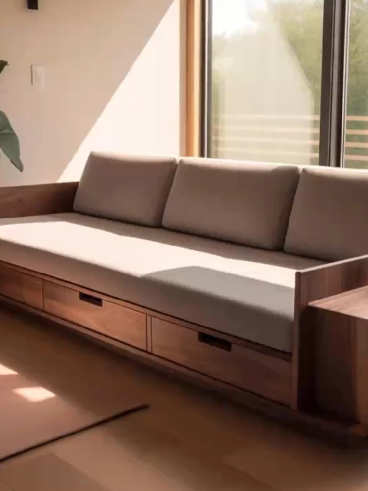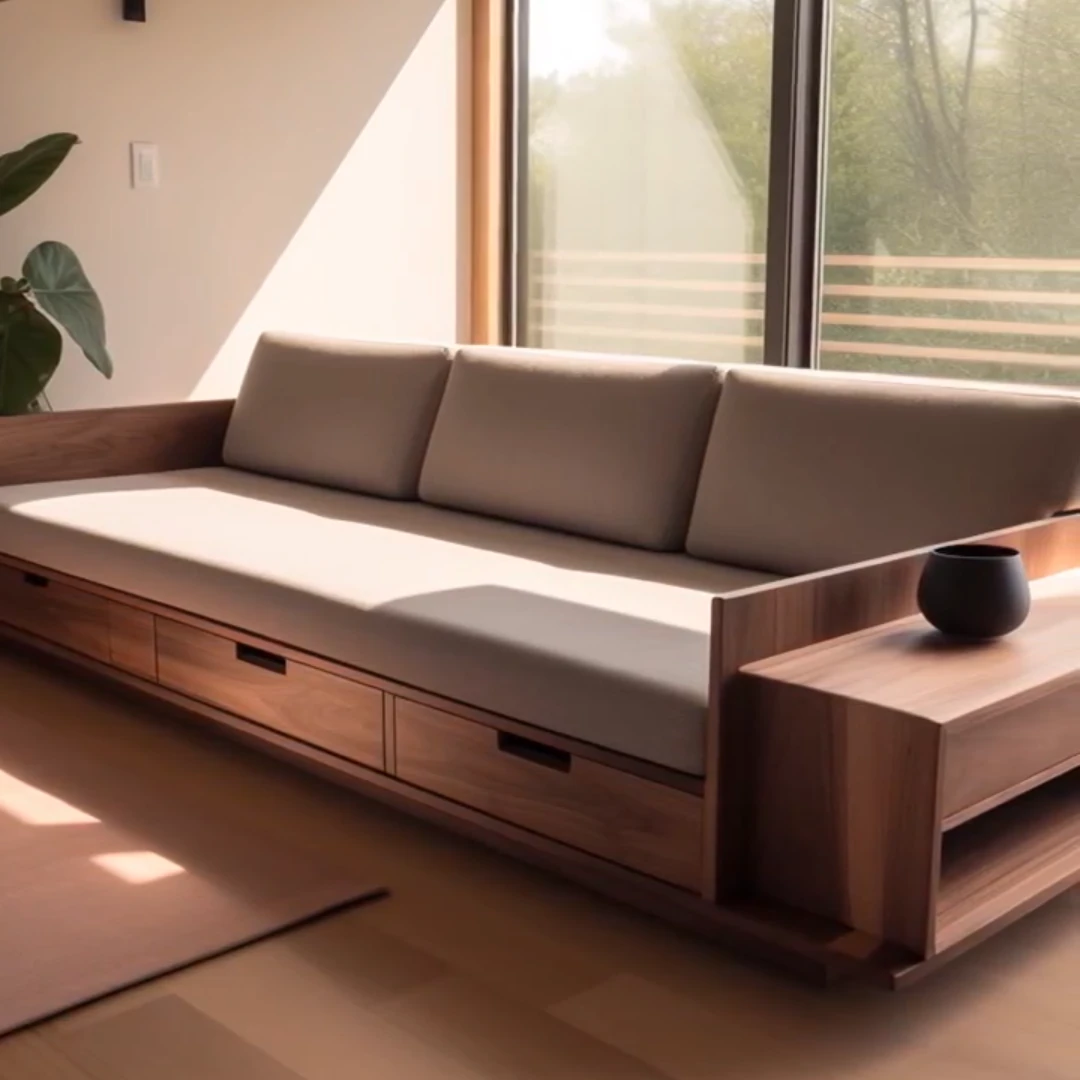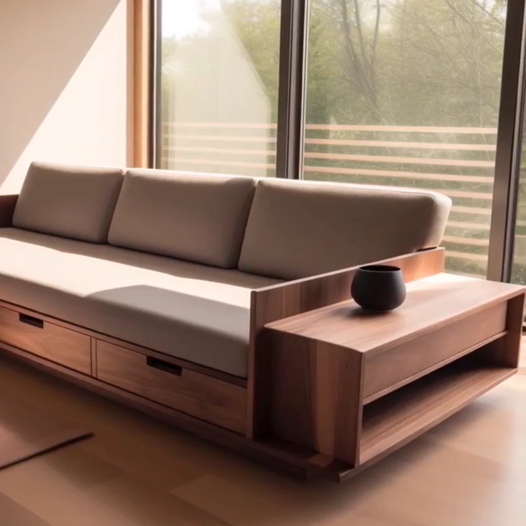 Premium North American Black Walnut Solid Wood Sofa - Modern Design for Stylish Living Rooms, Hotels, Villas, and Clubs - Perfect for Any Space