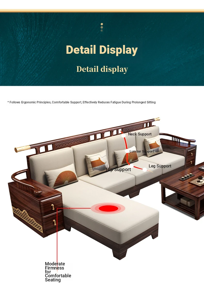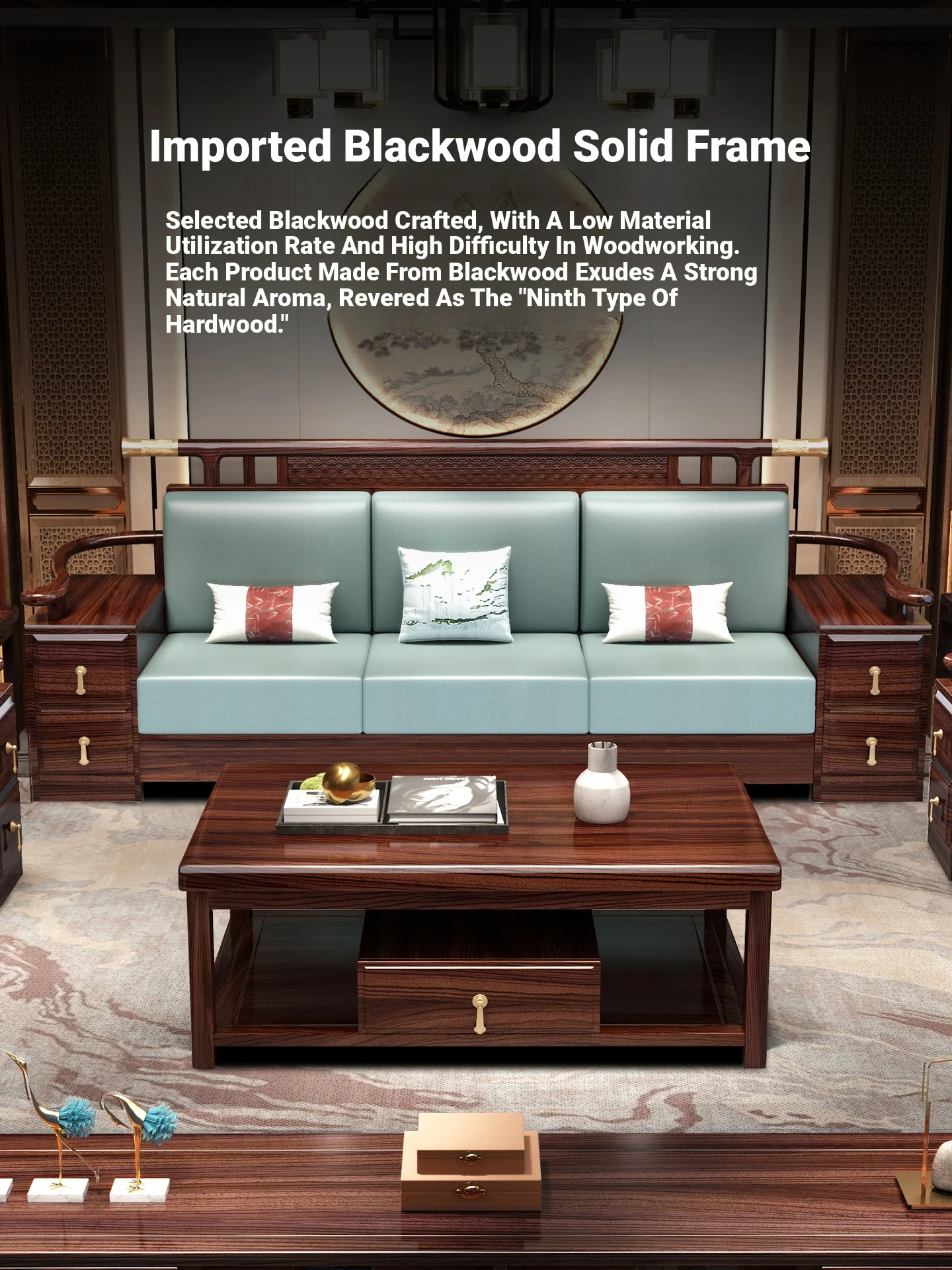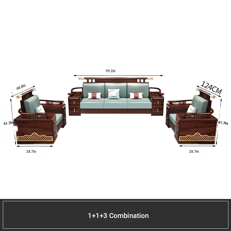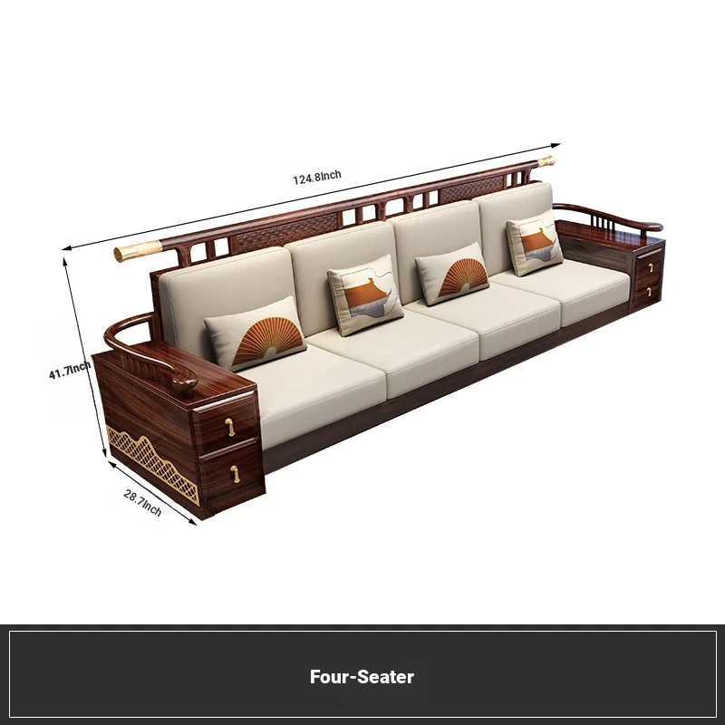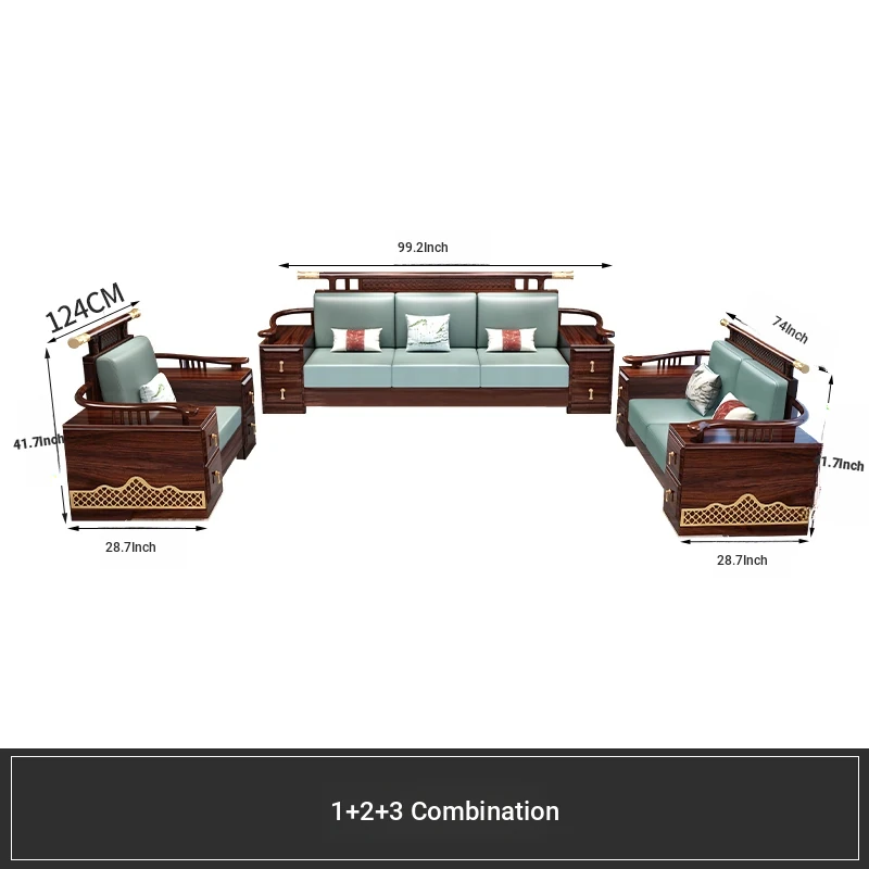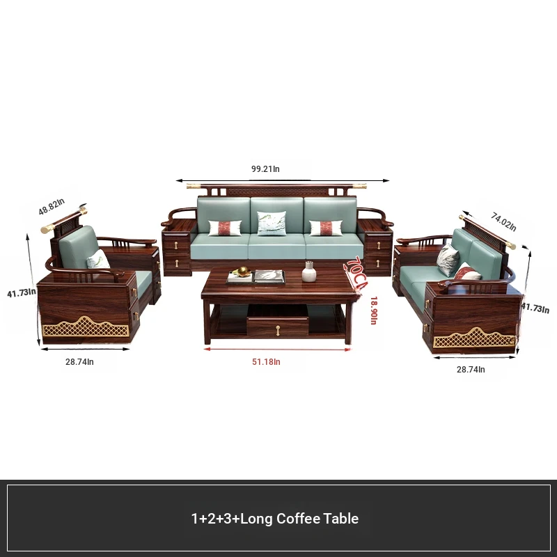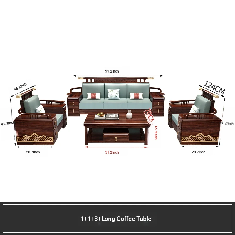 Premium Wu Jin Wood Solid Wood Sofa Set 1+2+3 - New Chinese Style Light Luxury Corner Chaise Lounge for Living Room - Elegant Chinese Wooden Furniture
