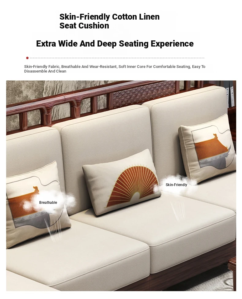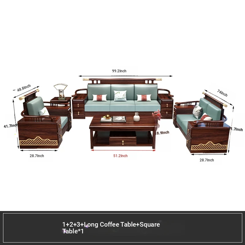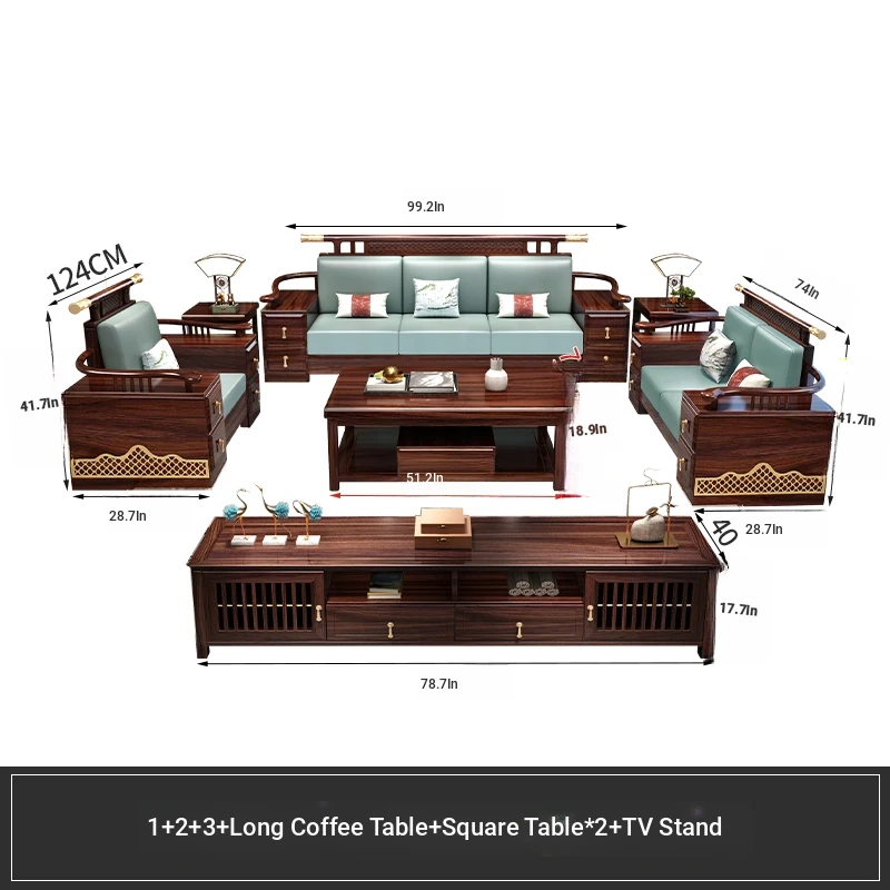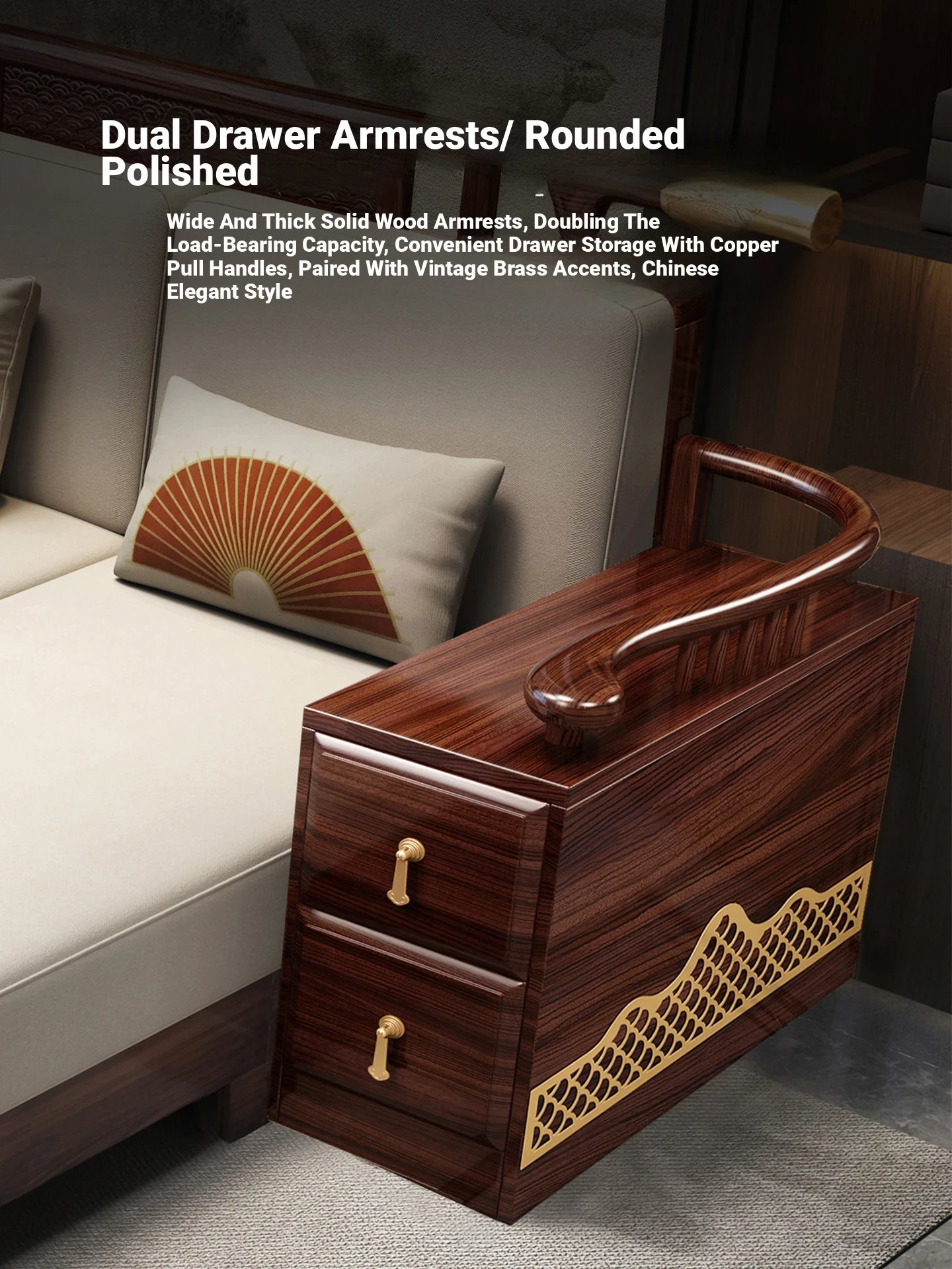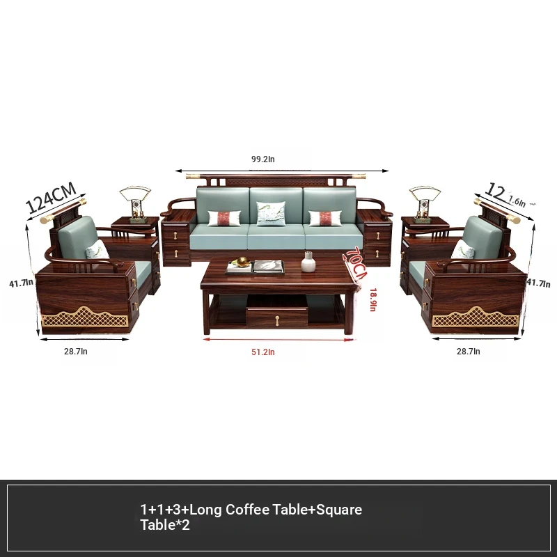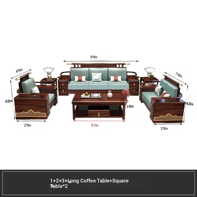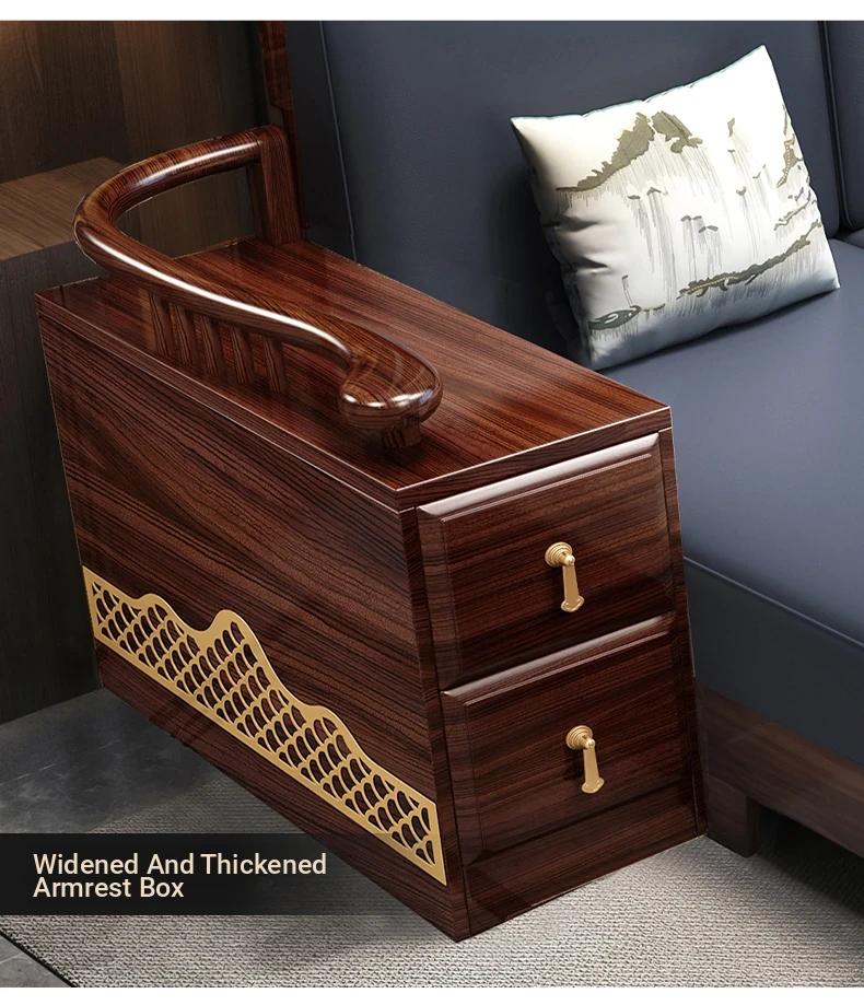 Premium Wu Jin Wood Solid Wood Sofa Set 1+2+3 - New Chinese Style Light Luxury Corner Chaise Lounge for Living Room - Elegant Chinese Wooden Furniture