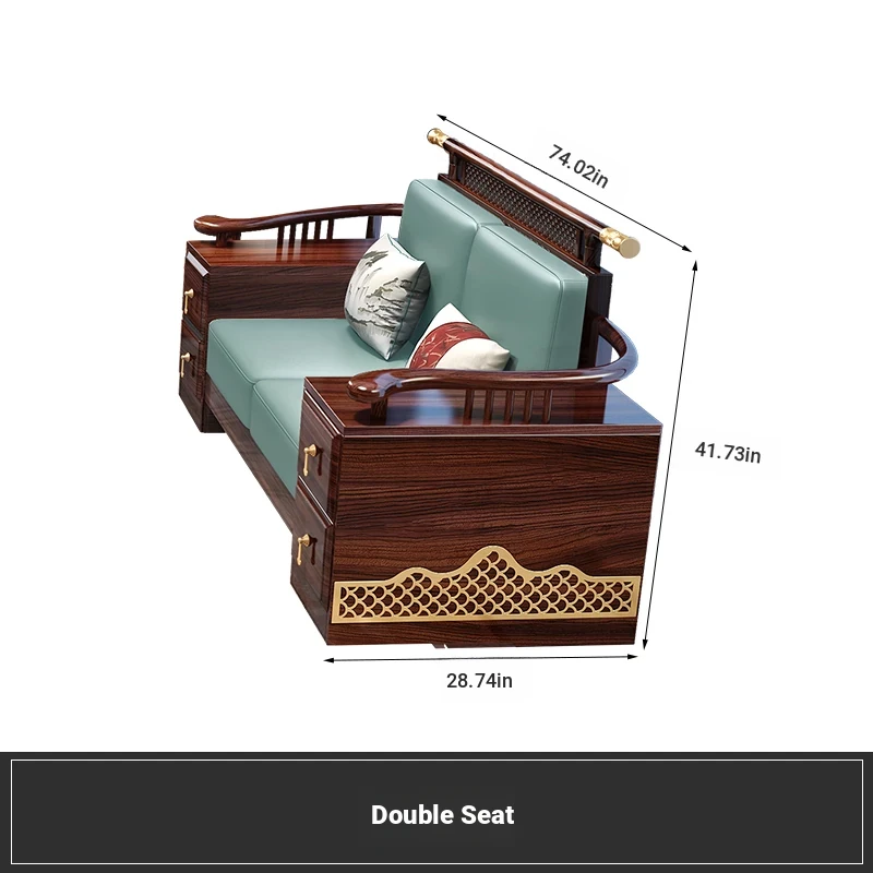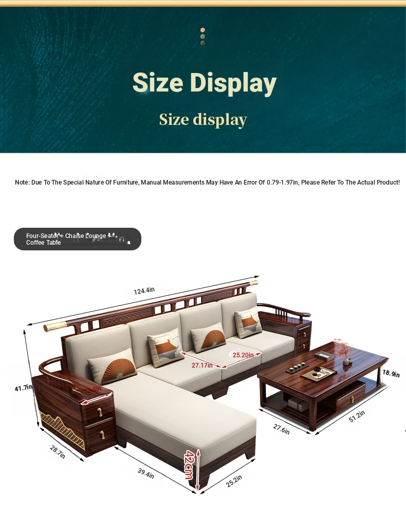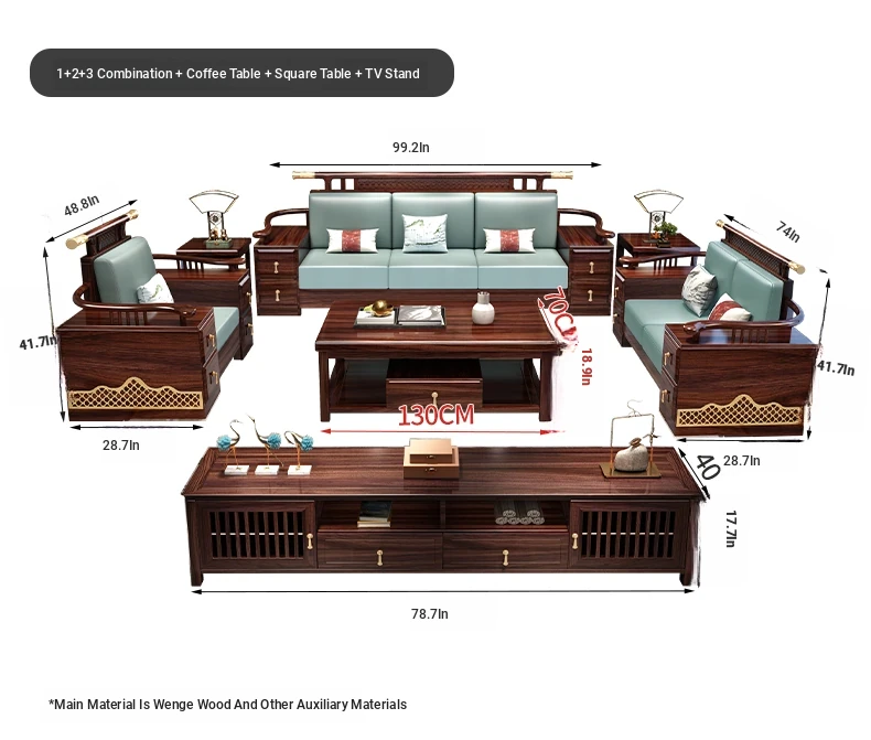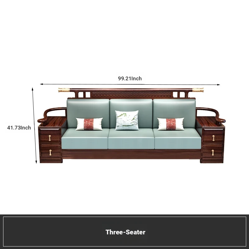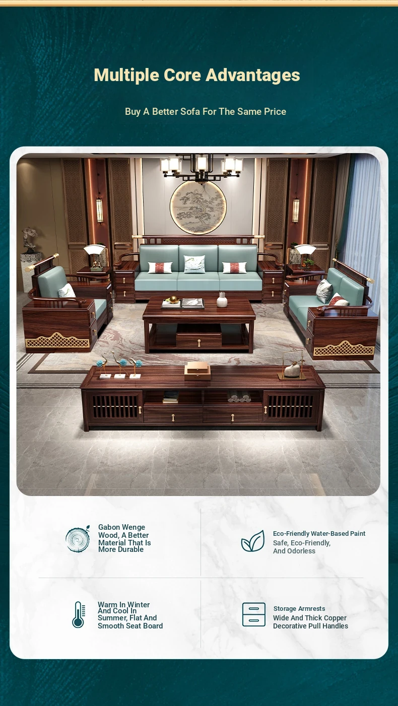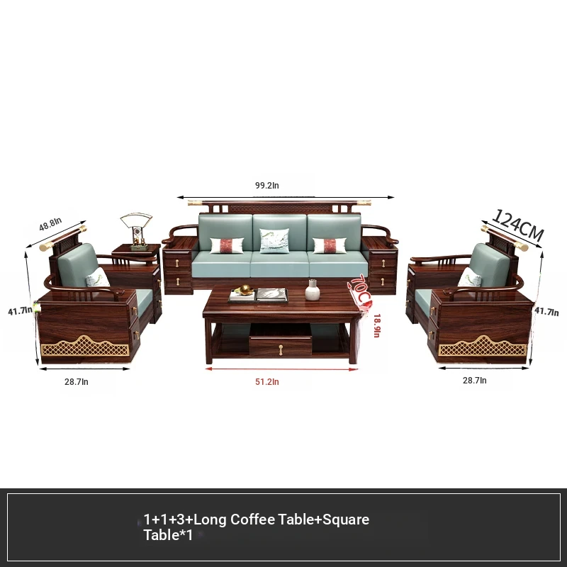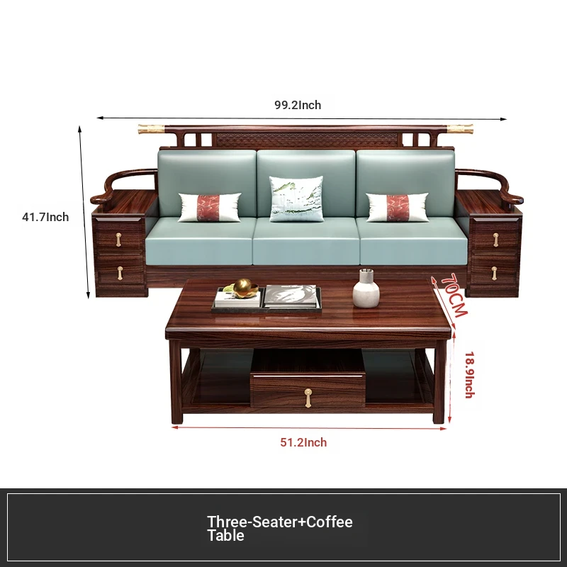 Premium Wu Jin Wood Solid Wood Sofa Set 1+2+3 - New Chinese Style Light Luxury Corner Chaise Lounge for Living Room - Elegant Chinese Wooden Furniture