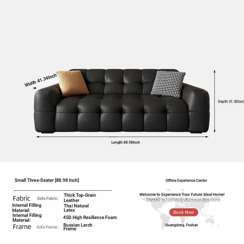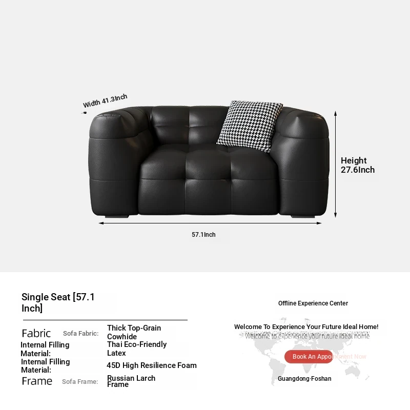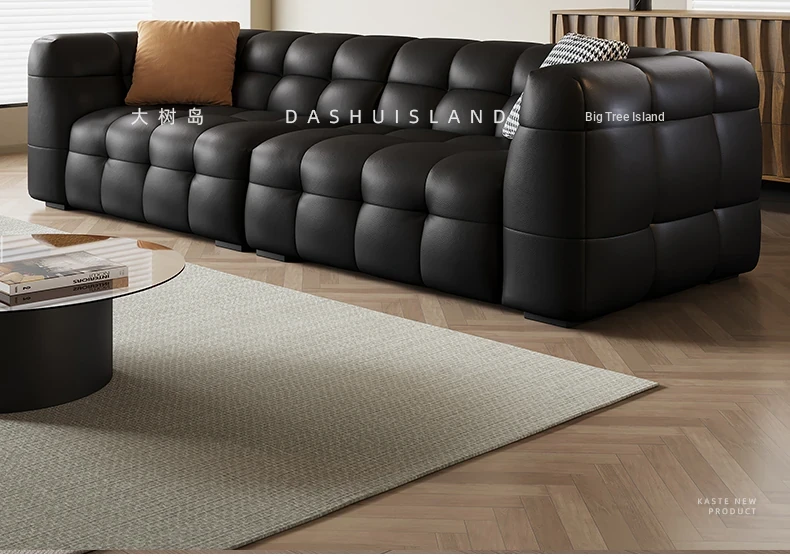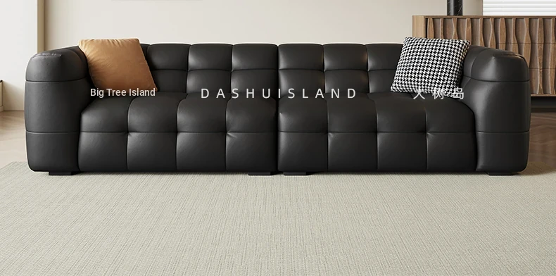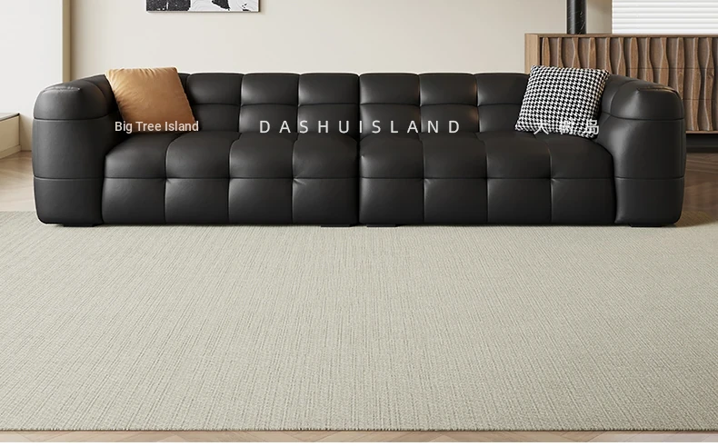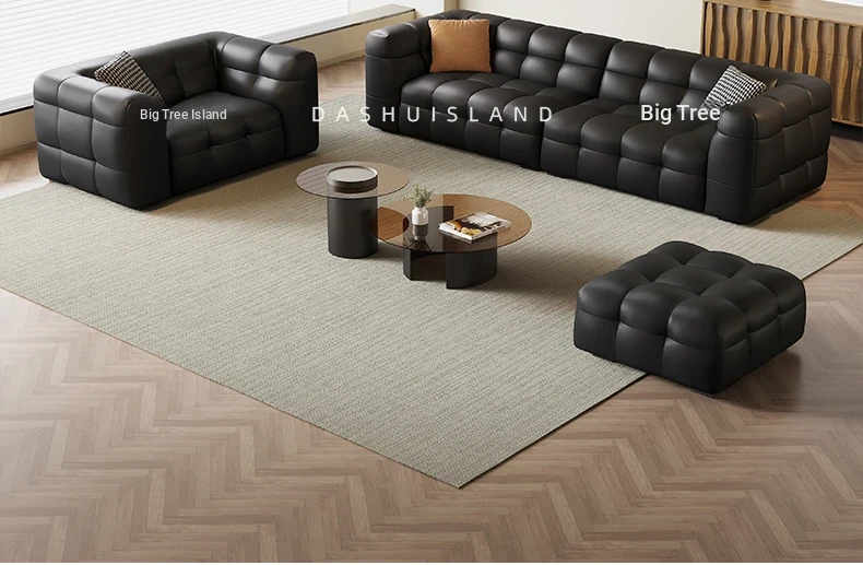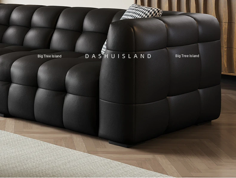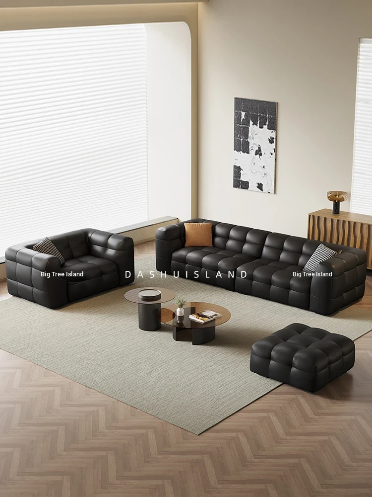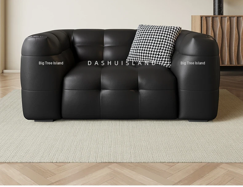 Retro Wabi-Sabi Style Sofa for Living Room - French Cream Cotton Candy Genuine Leather Lounge Chair from Big Tree Island Home Decor
