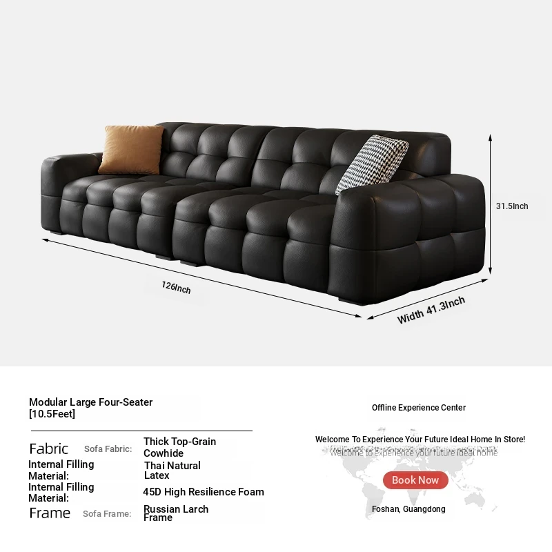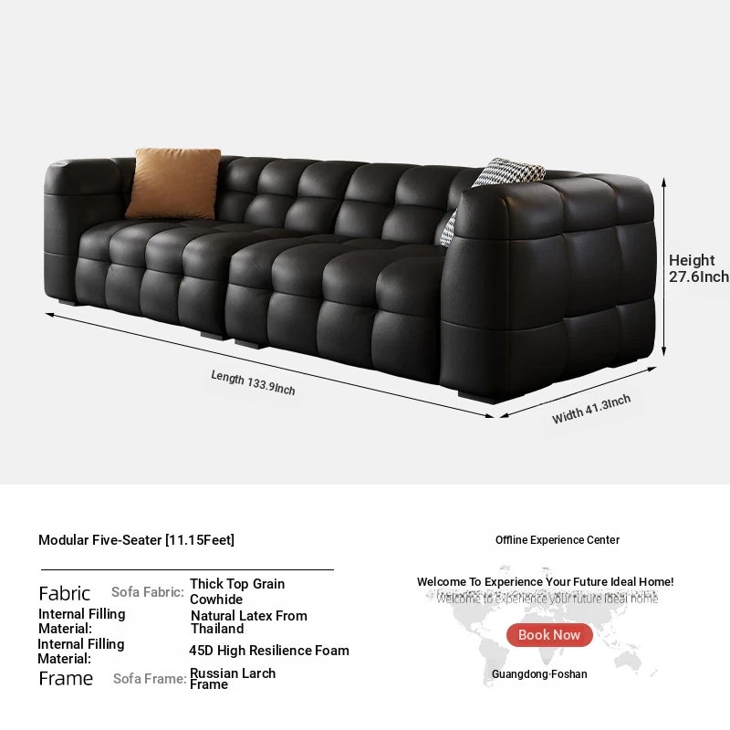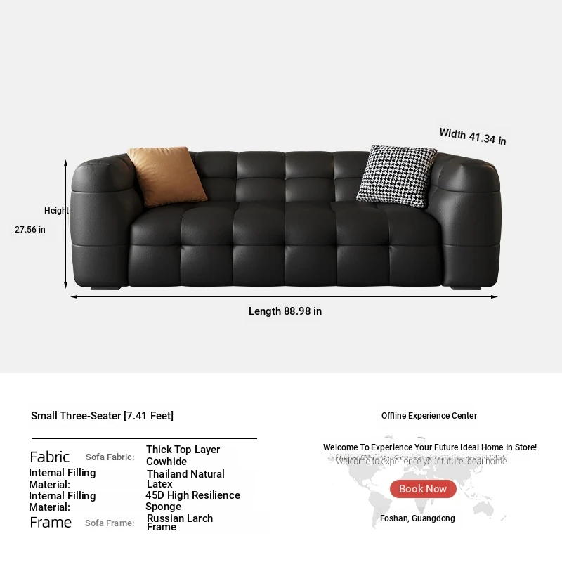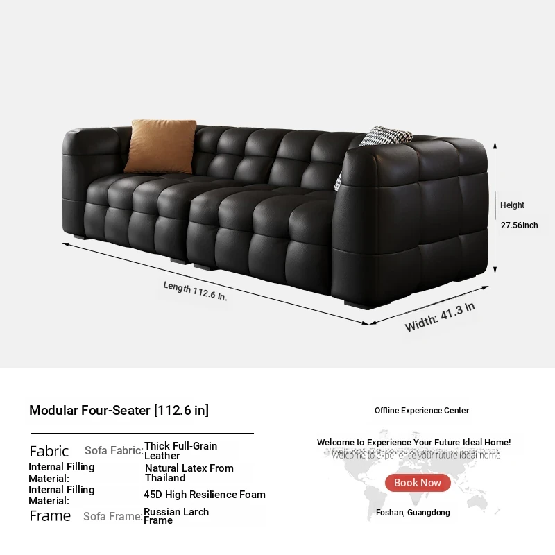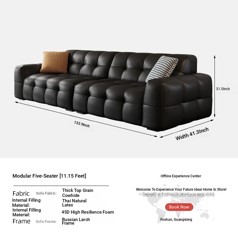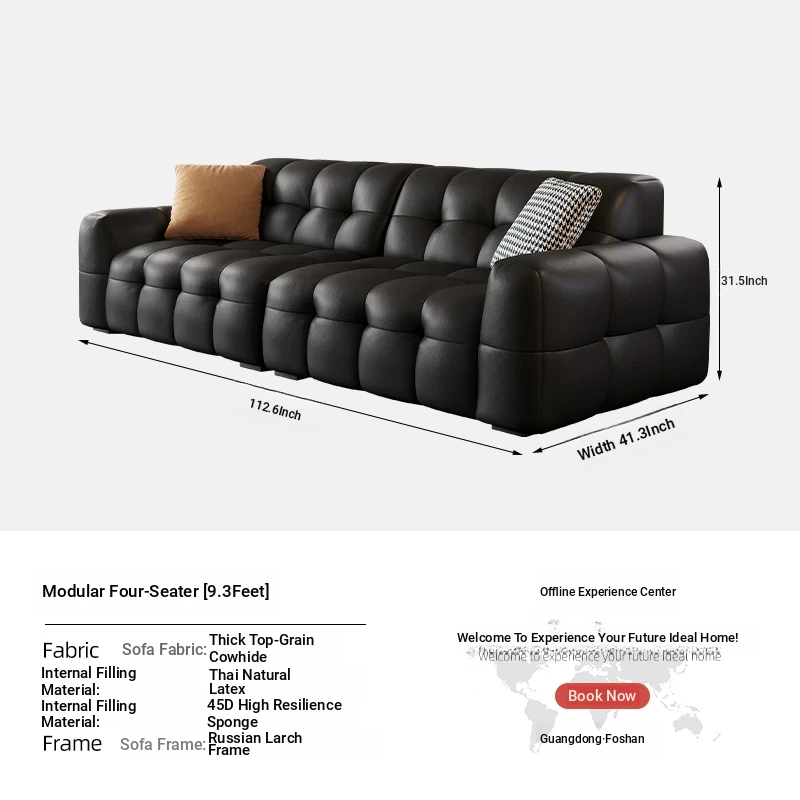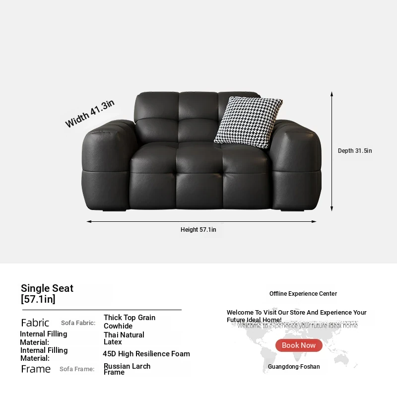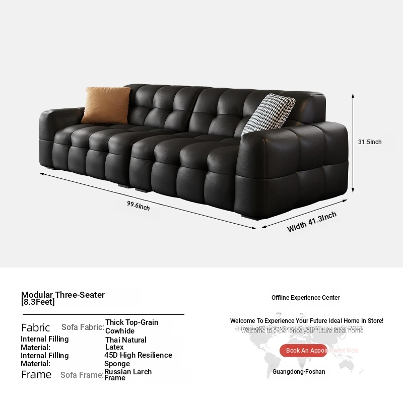 Retro Wabi-Sabi Style Sofa for Living Room - French Cream Cotton Candy Genuine Leather Lounge Chair from Big Tree Island Home Decor