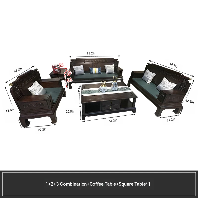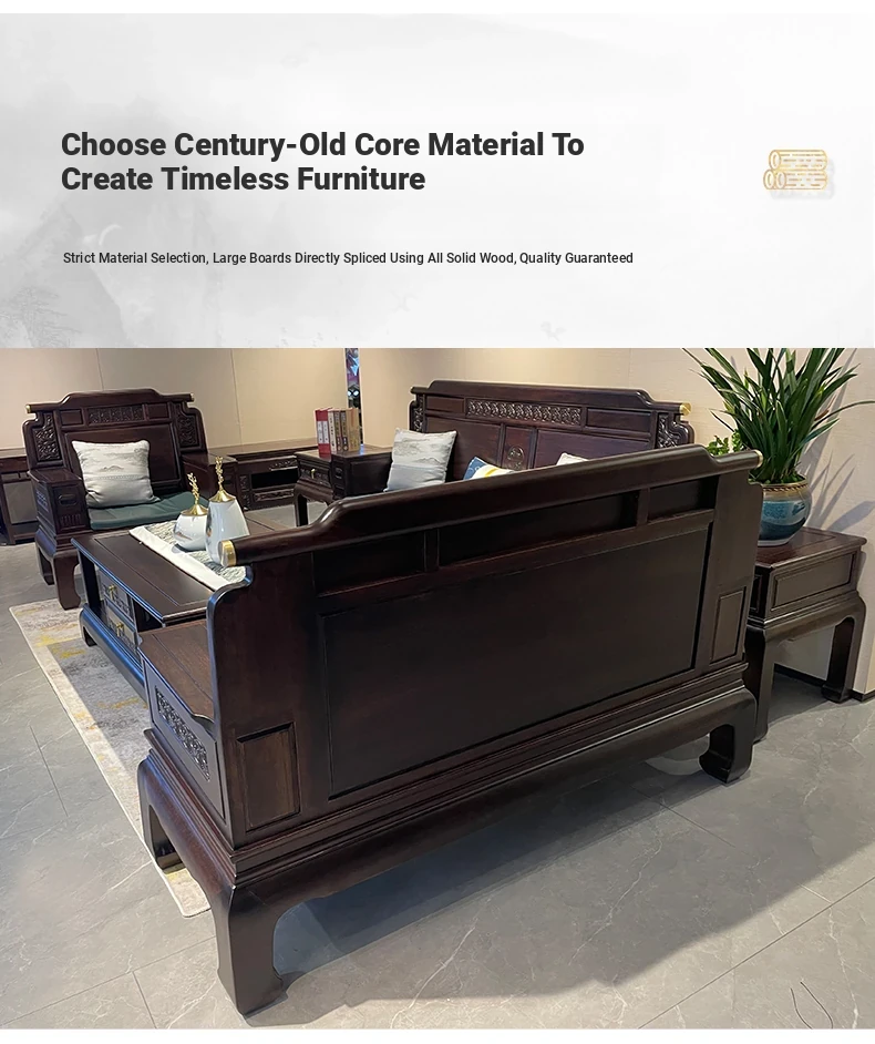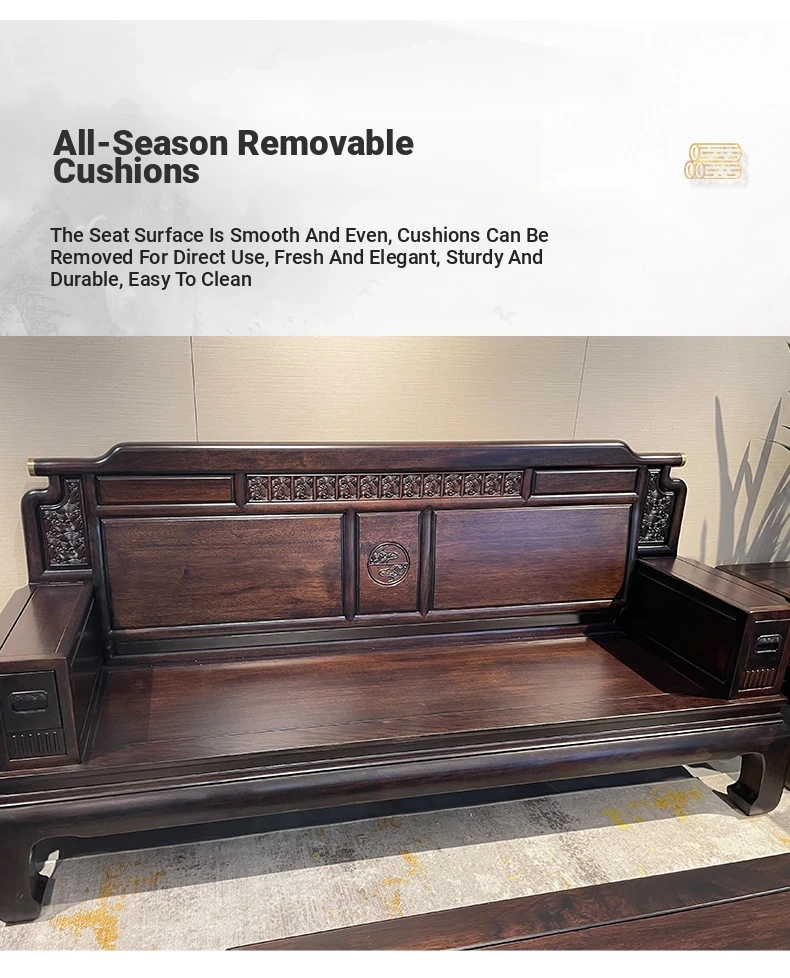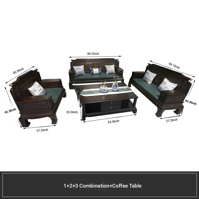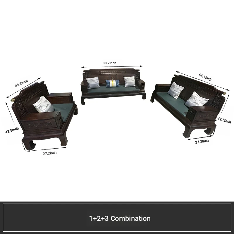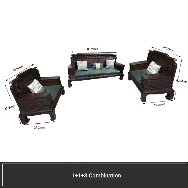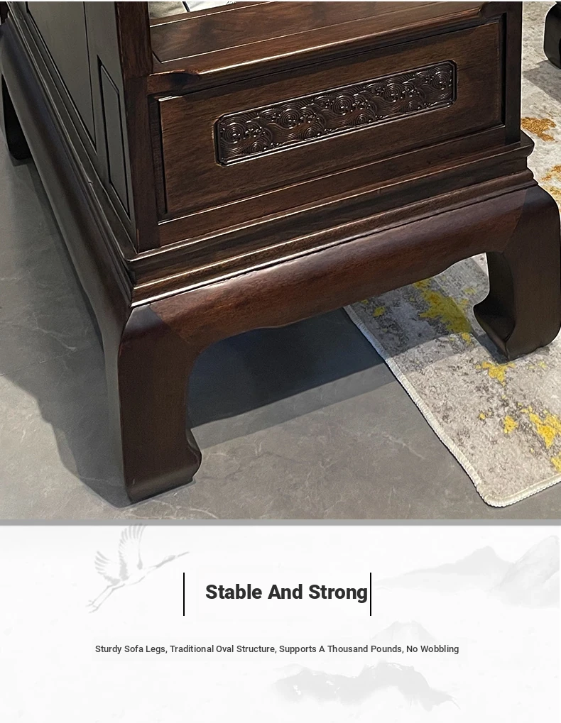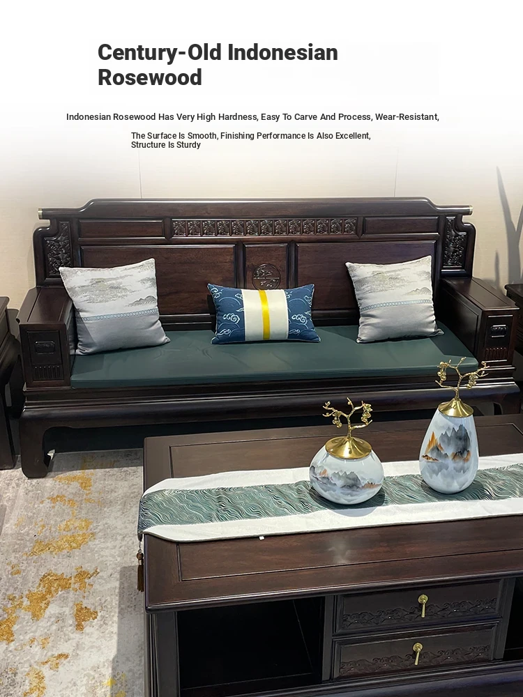 Rosewood Solid Wood Sofa Set - 123 Combination, Versatile for Winter and Summer, New Chinese Style, Compact Design for Small Spaces, Antique Tiger Foot Redwood Furniture