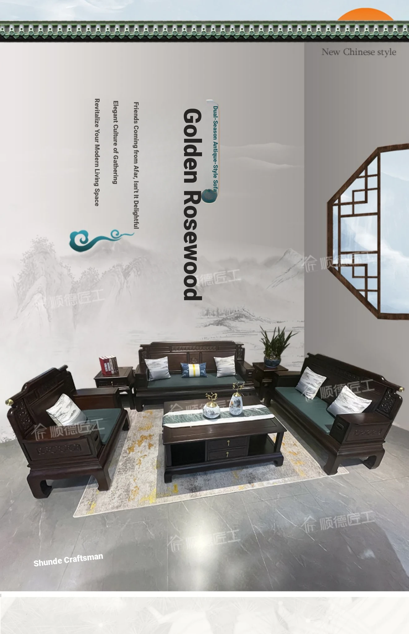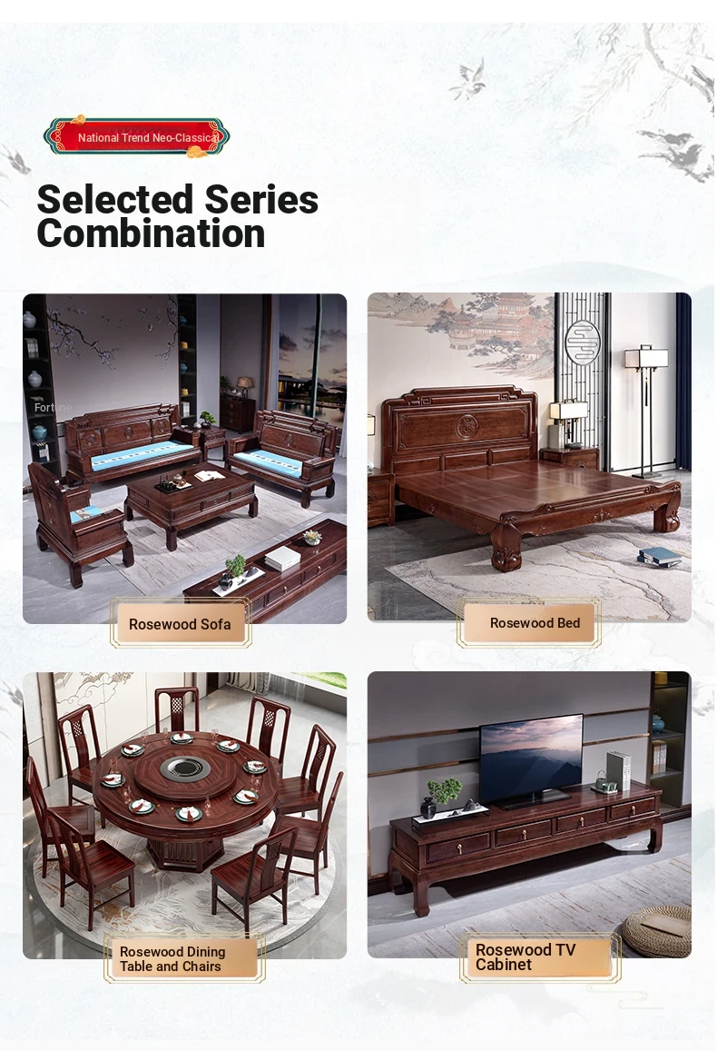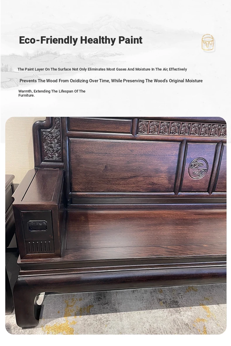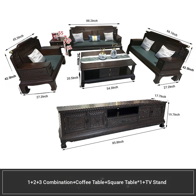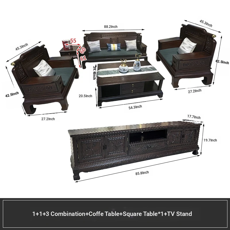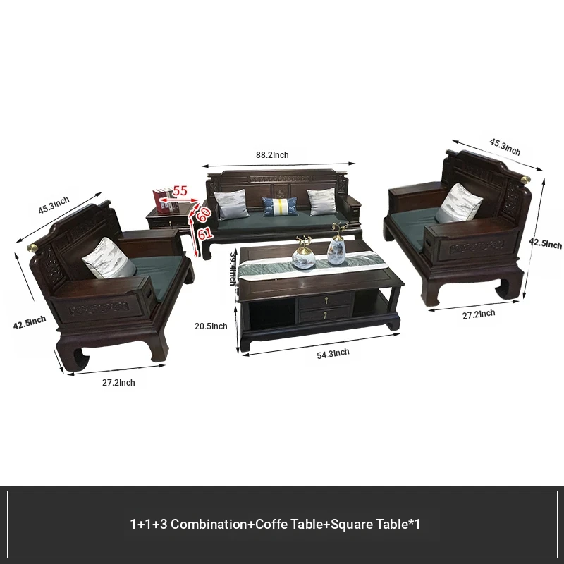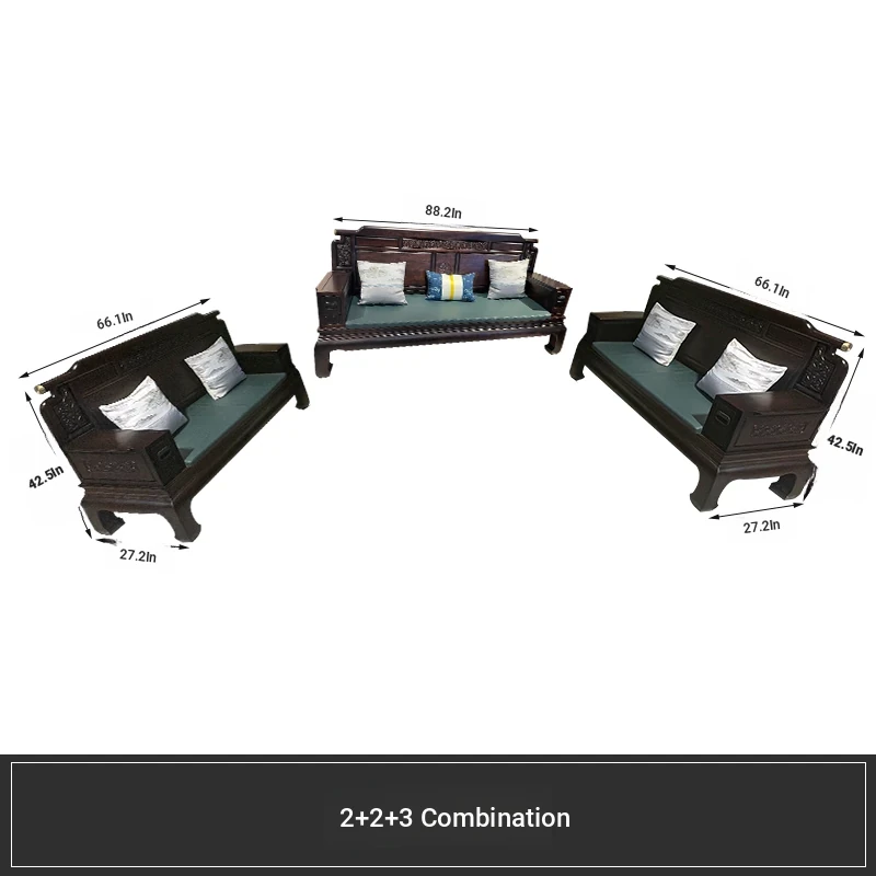 Rosewood Solid Wood Sofa Set - 123 Combination, Versatile for Winter and Summer, New Chinese Style, Compact Design for Small Spaces, Antique Tiger Foot Redwood Furniture
