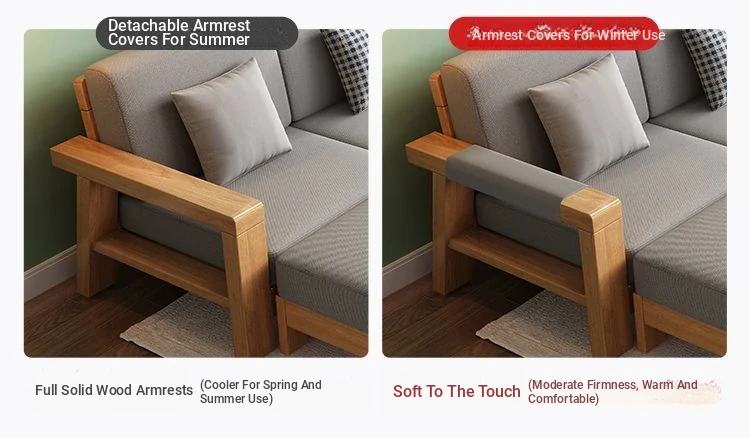 Solid Rubber Wood Sofa Set - Modern Minimalist Convertible Sofa Bed for Small Spaces, Perfect for Your Living Room!