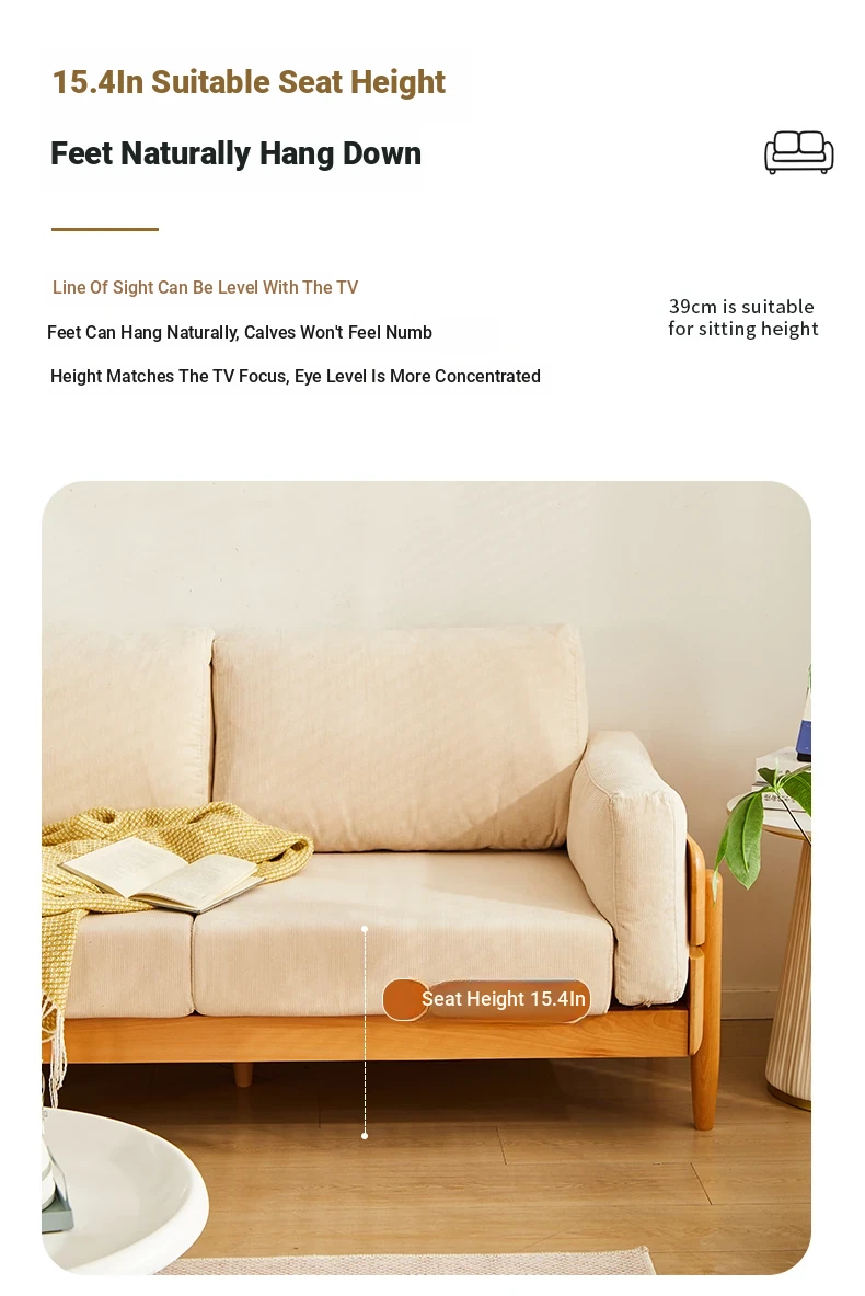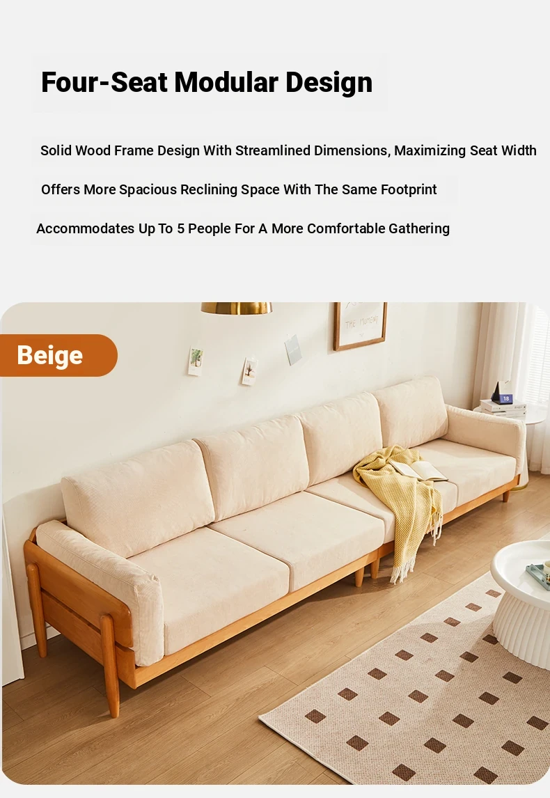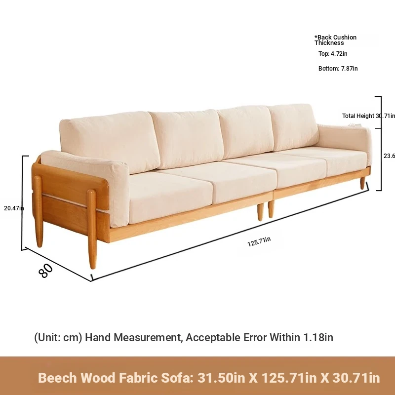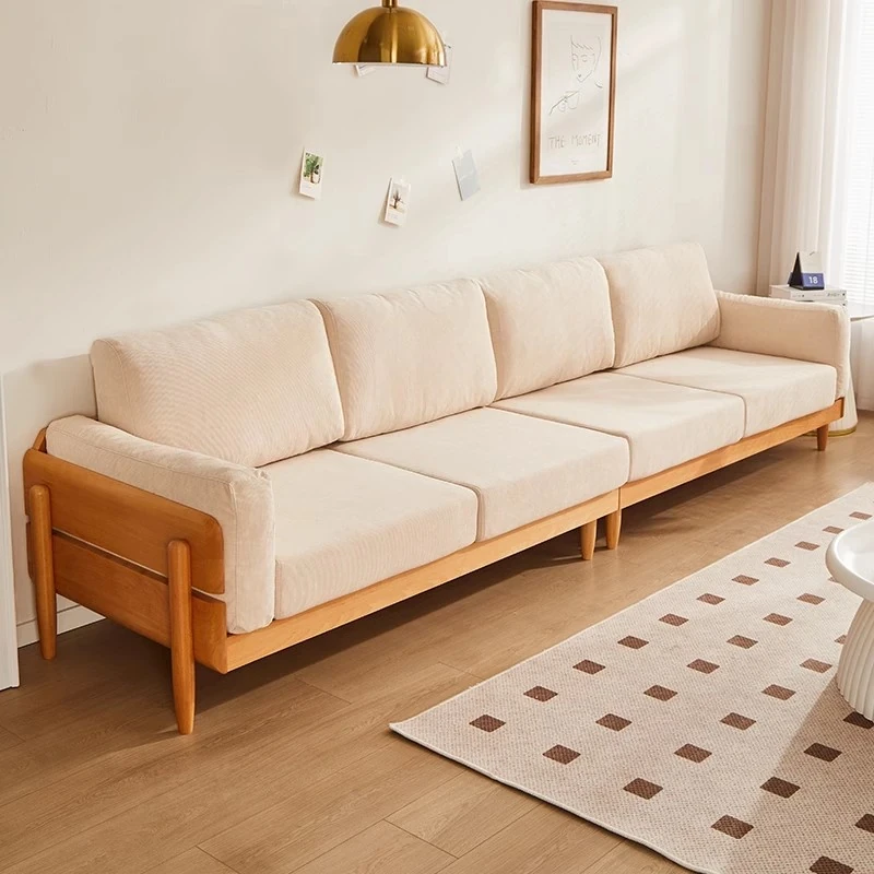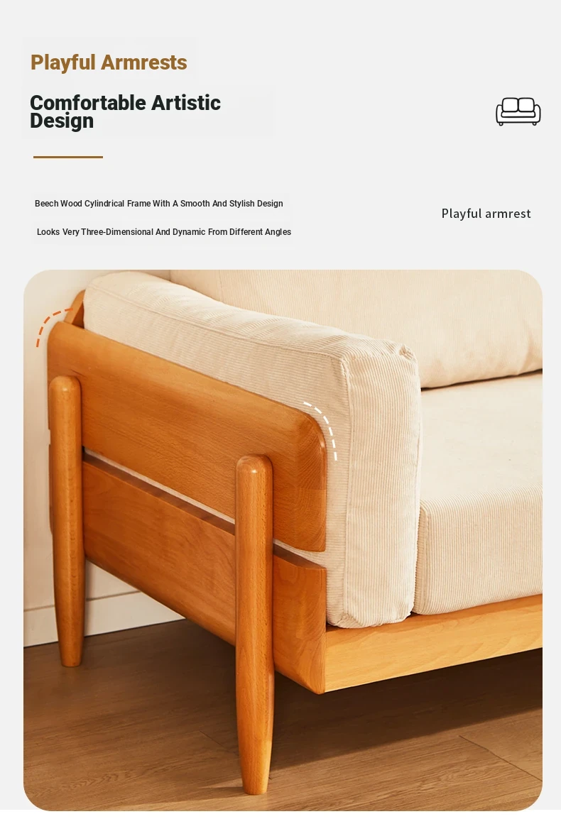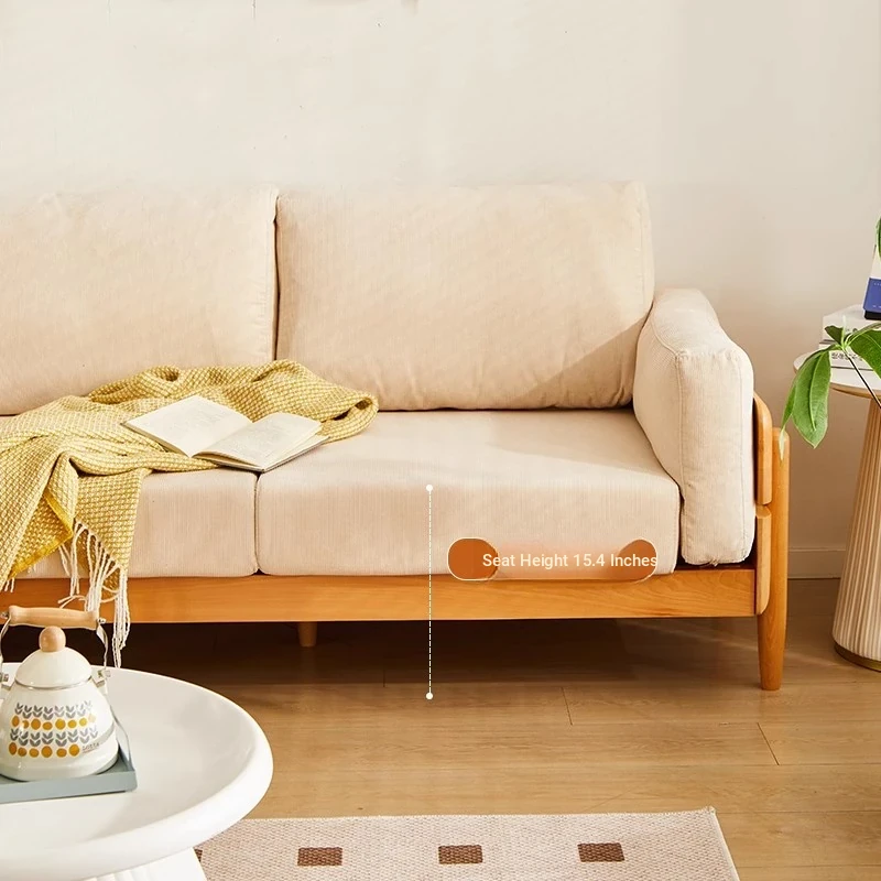 Solid Wood Sofa for Small Spaces - Nordic Minimalist Fabric Couch with Beech Wood, Washable Design in Creamy Tones, Perfect for Japanese Style Living Rooms.