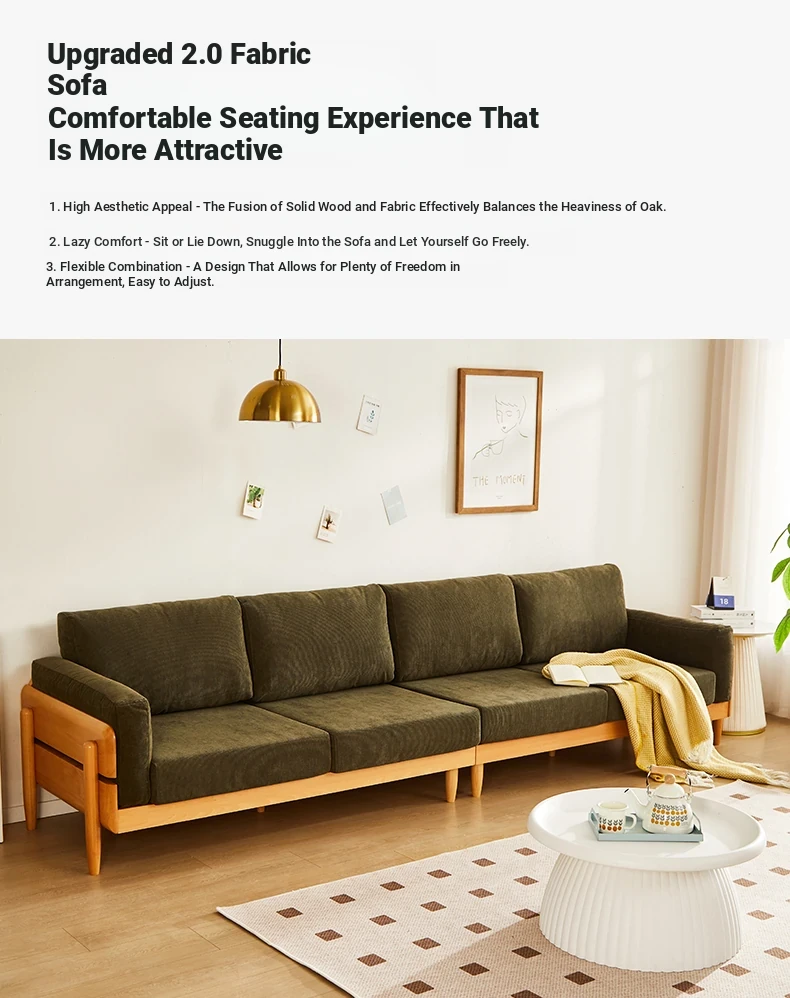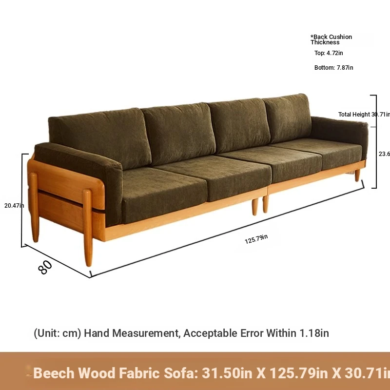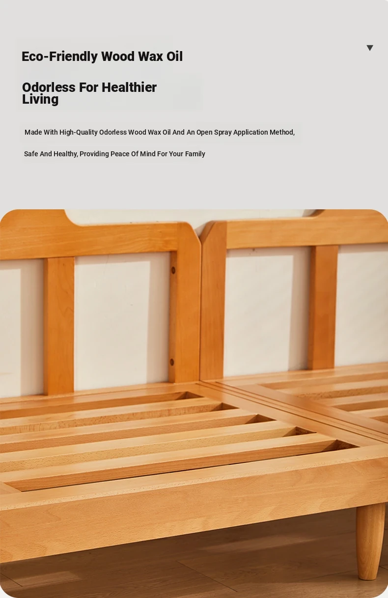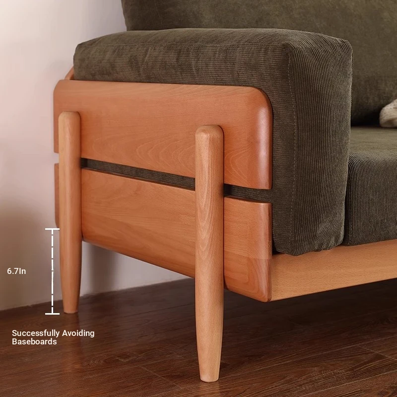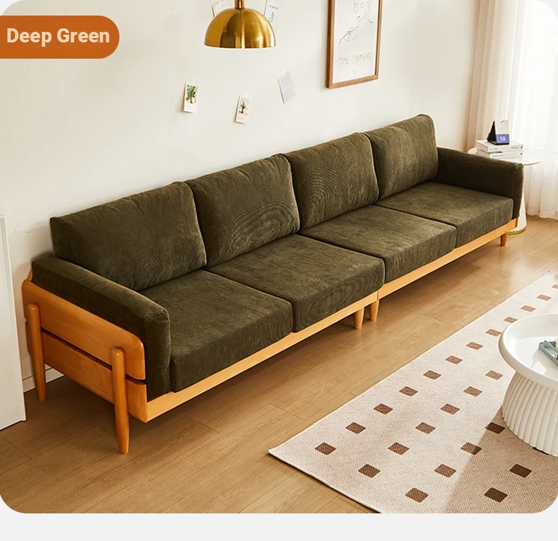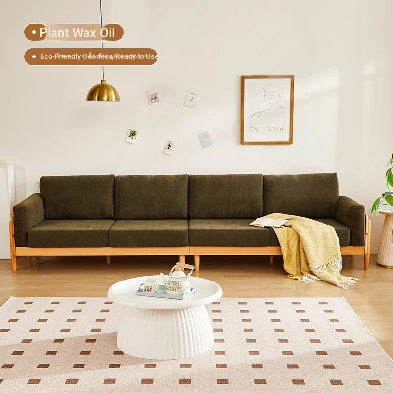 Solid Wood Sofa for Small Spaces - Nordic Minimalist Fabric Couch with Beech Wood, Washable Design in Creamy Tones, Perfect for Japanese Style Living Rooms.