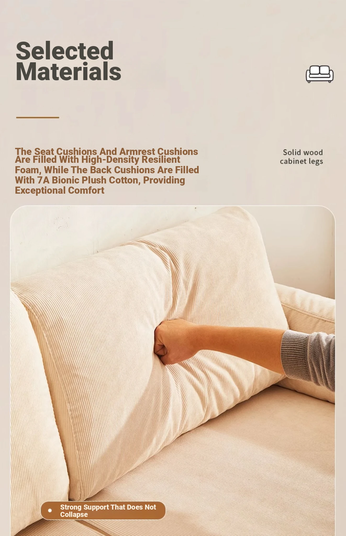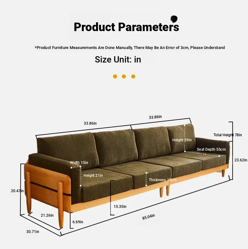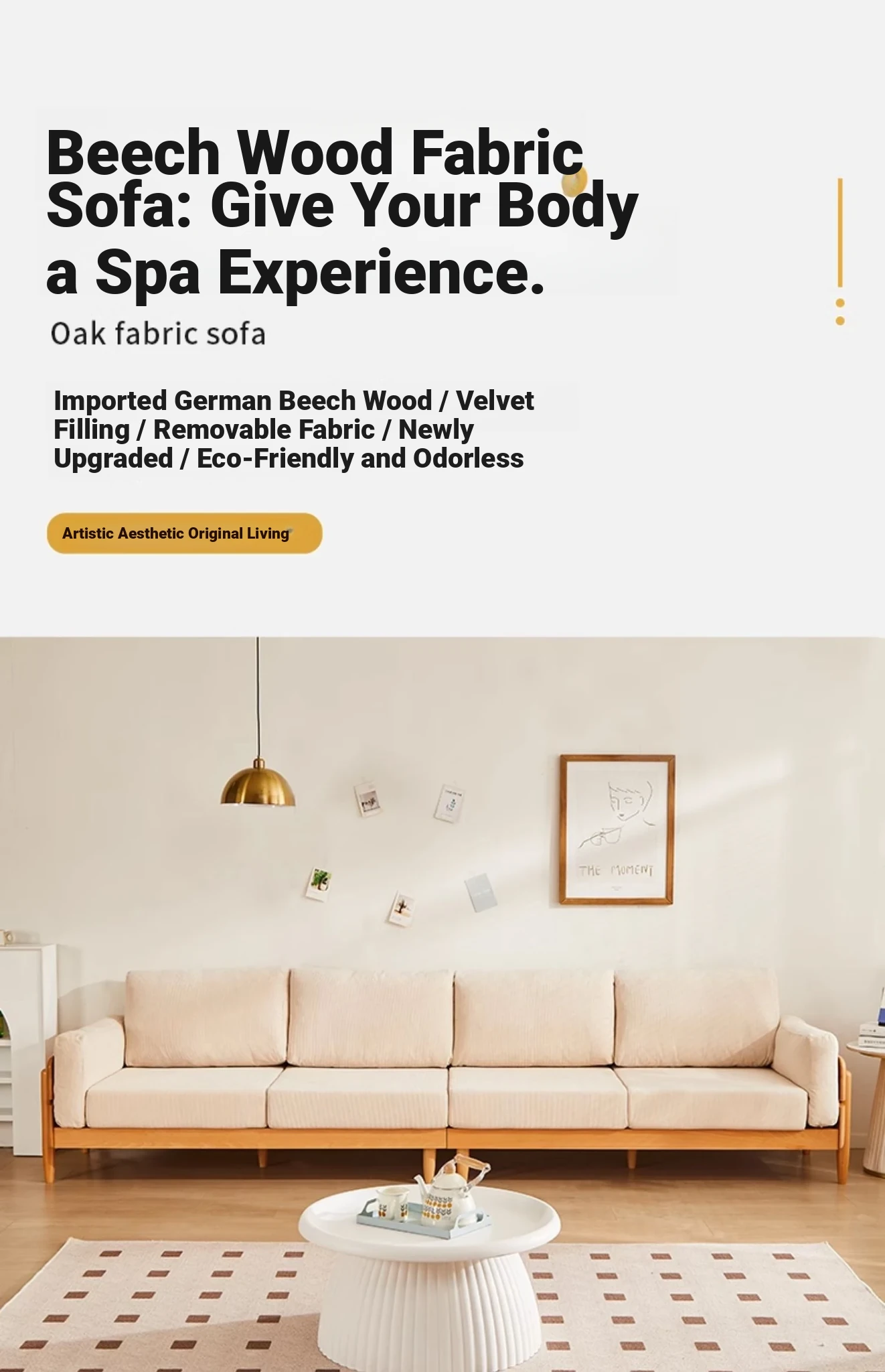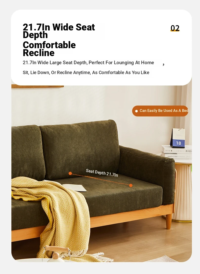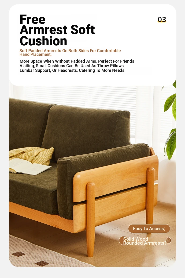 Solid Wood Sofa for Small Spaces - Nordic Minimalist Fabric Couch with Beech Wood, Washable Design in Creamy Tones, Perfect for Japanese Style Living Rooms.