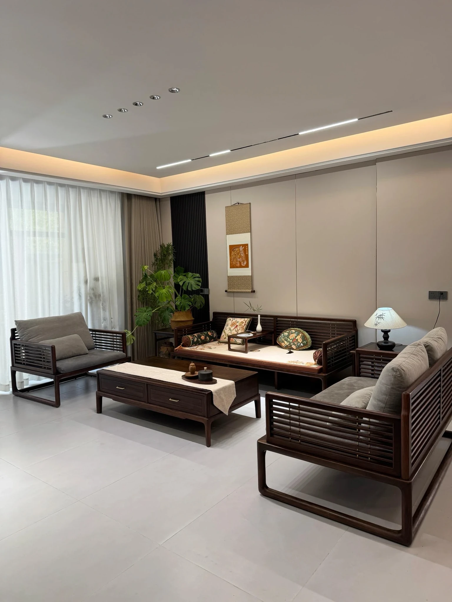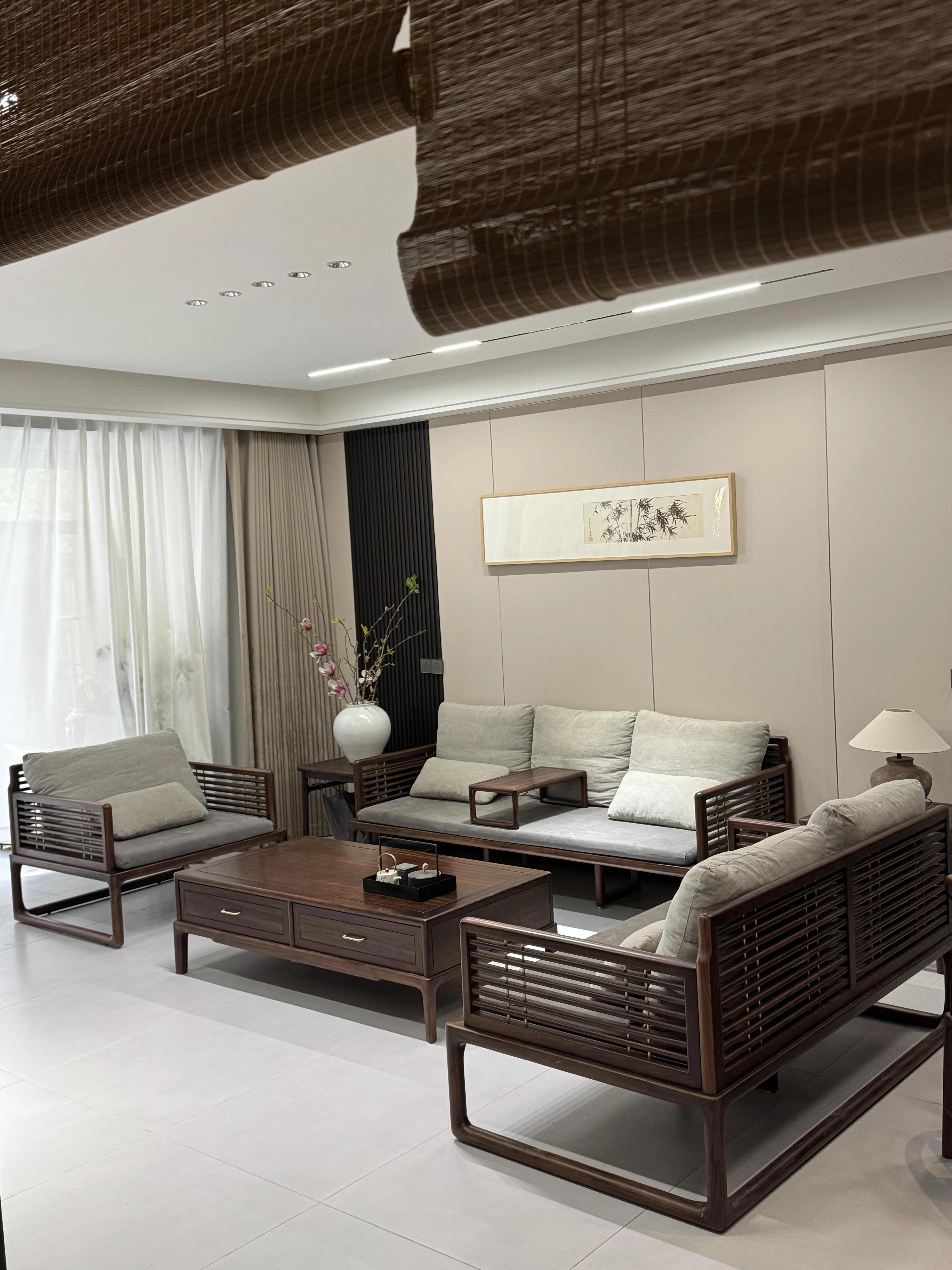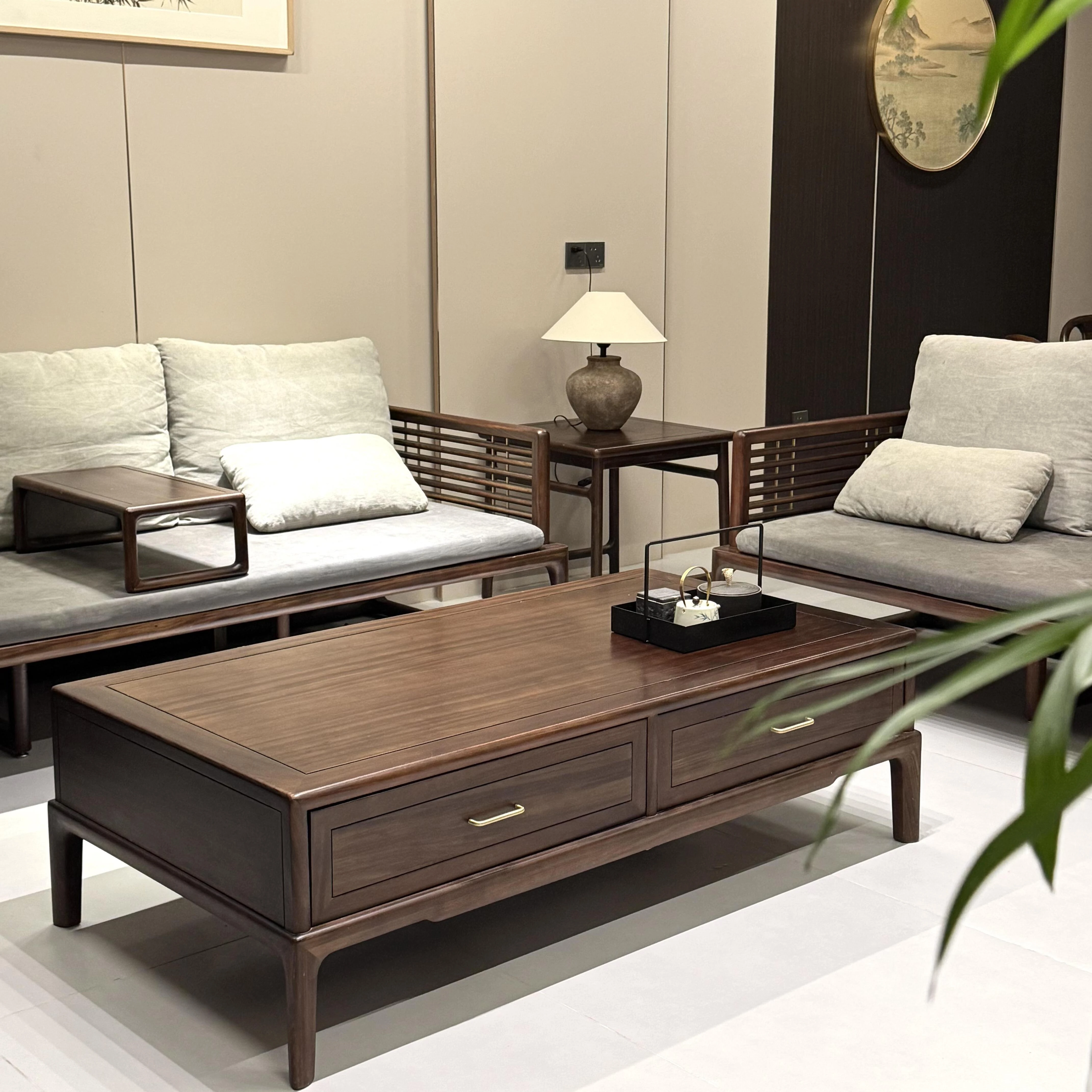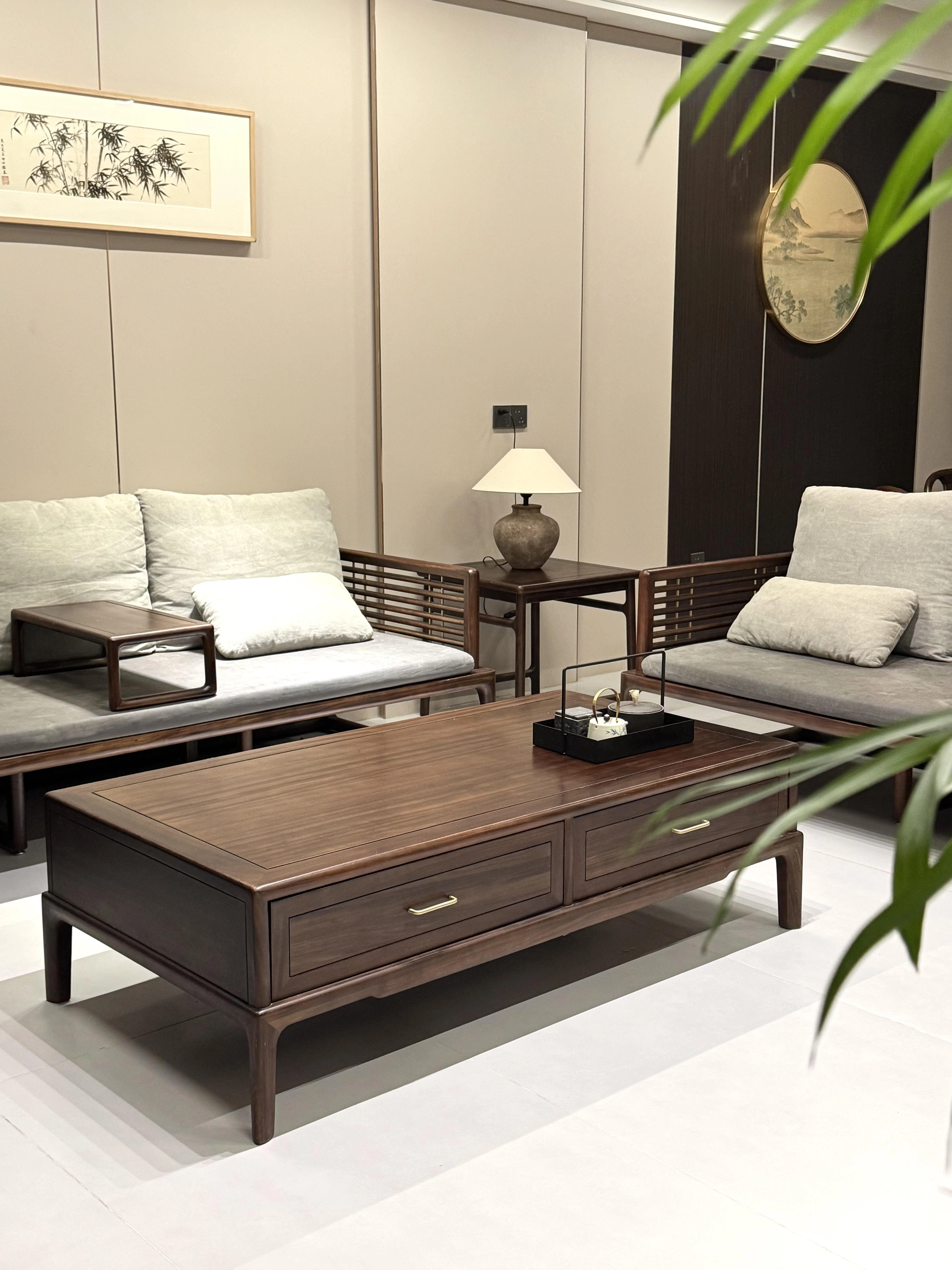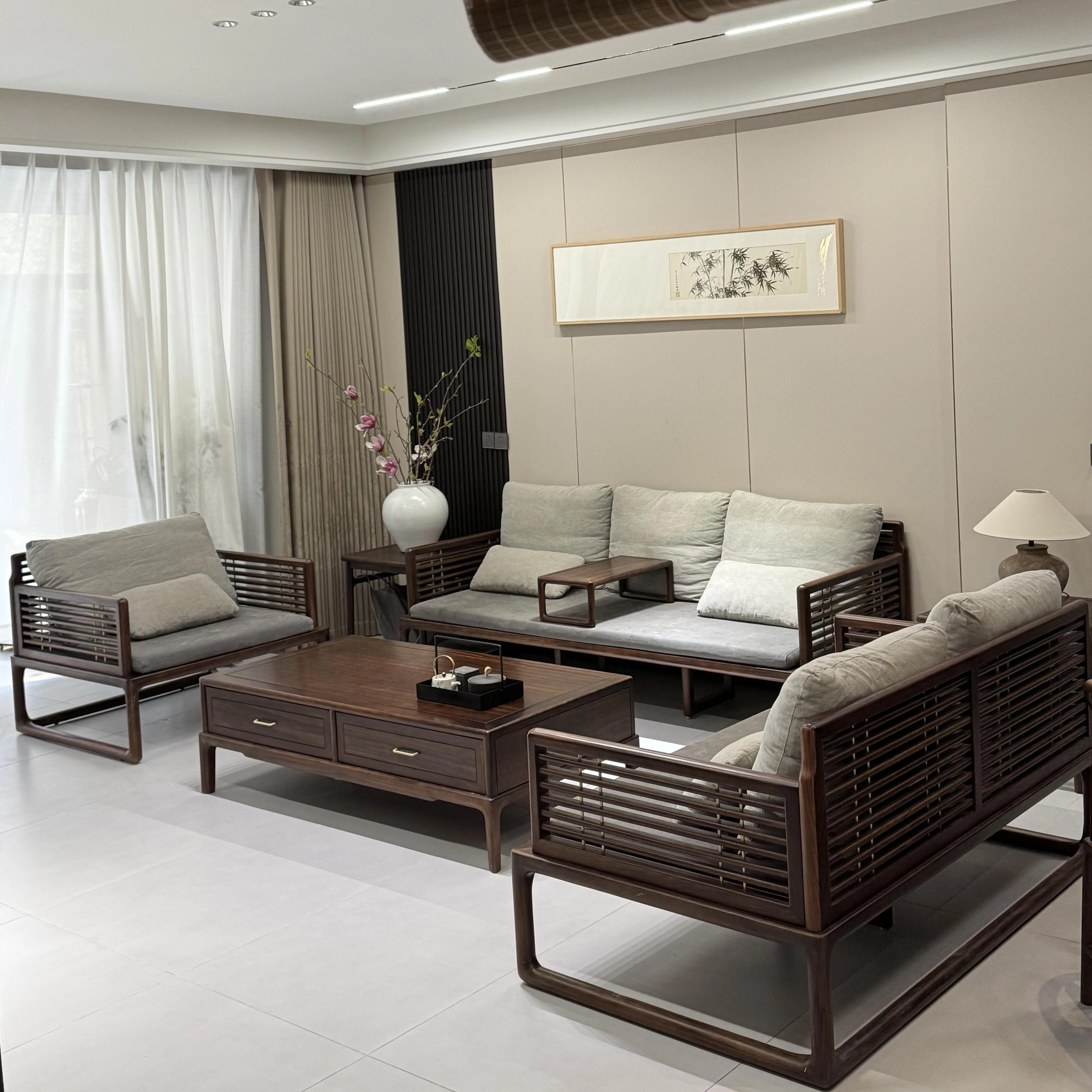 Song Style New Chinese Solid Wood Sofa Set - Elegant Zen-Inspired Living Room and Office Reception Couch Furniture for Home and Guest Areas