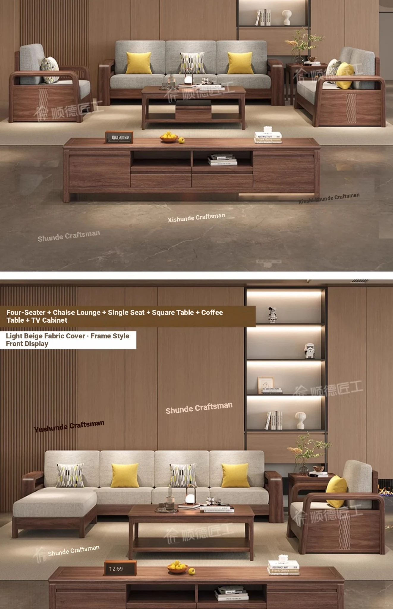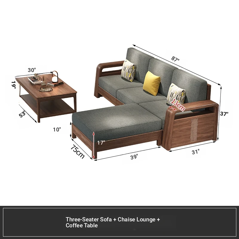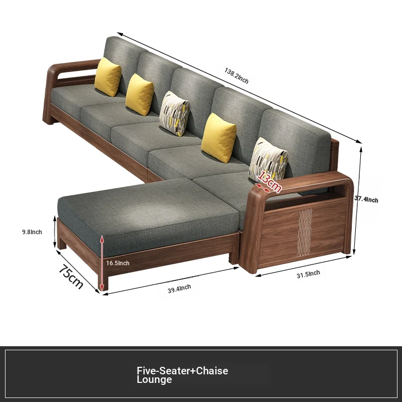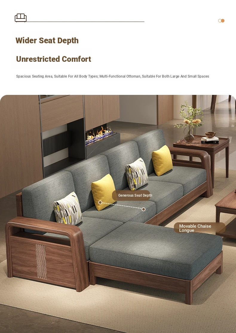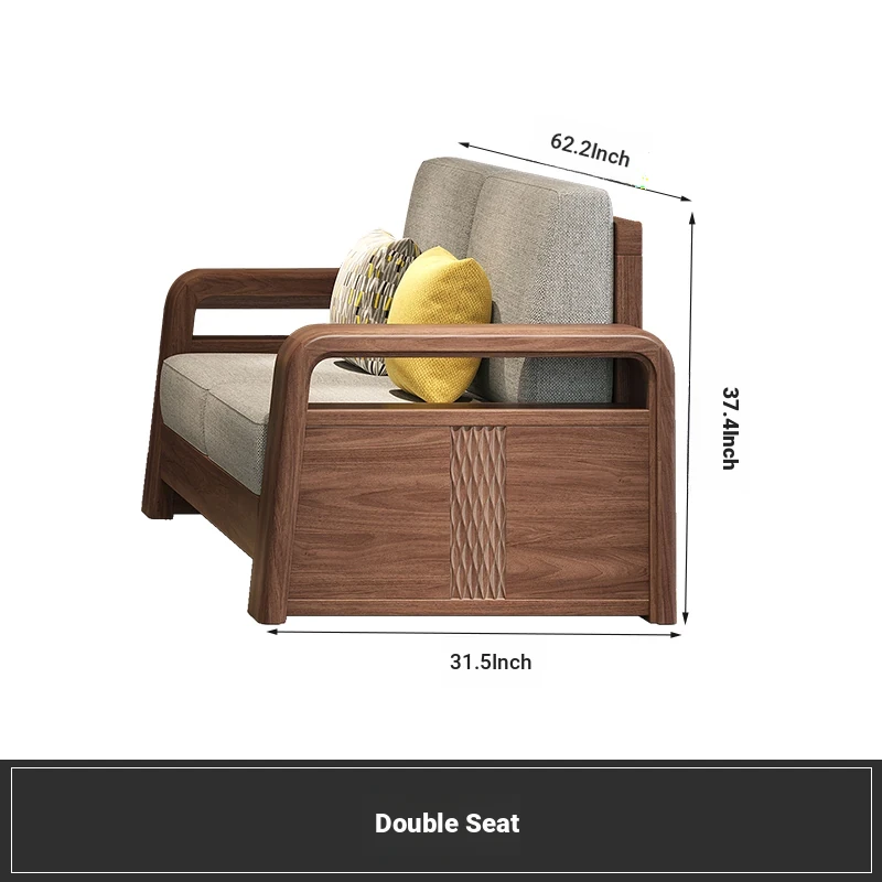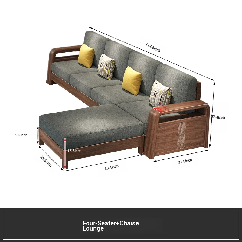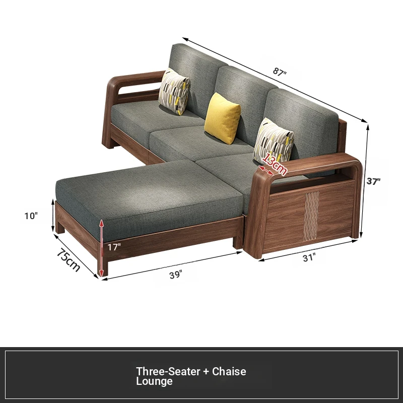 Stylish Black Walnut Solid Wood Sofa - New Chinese Style, Versatile Winter-Summer Corner Storage, Exquisite Carvings, Minimalist Design Perfect for Small Living Rooms