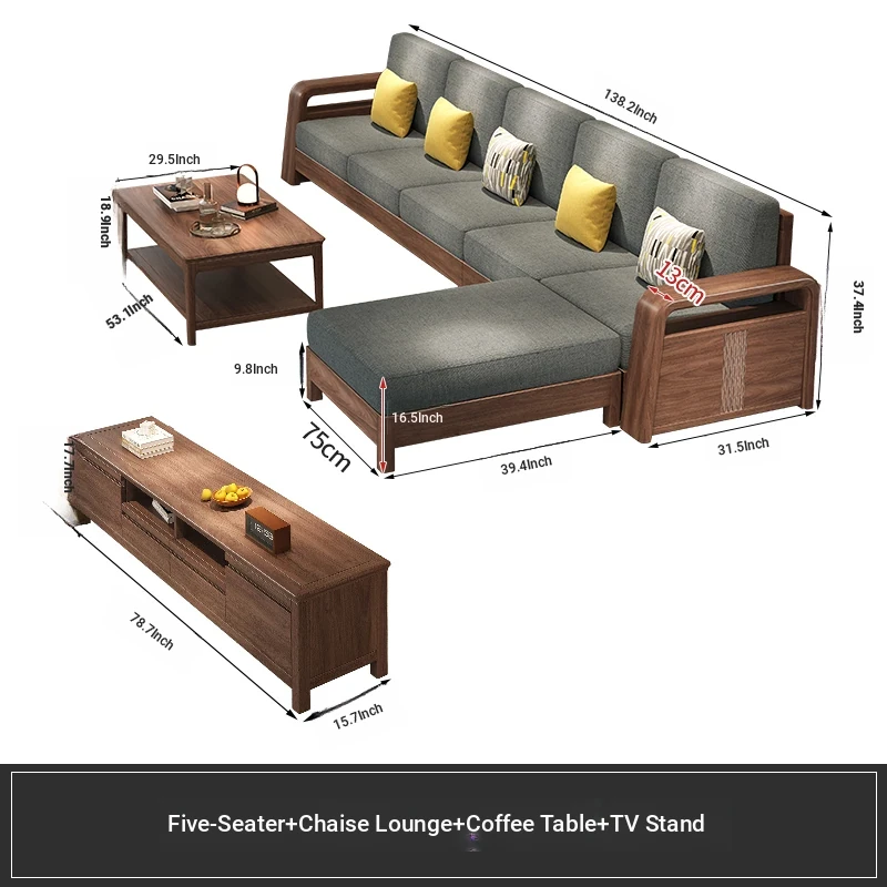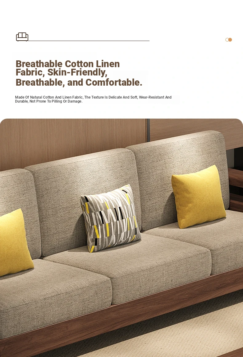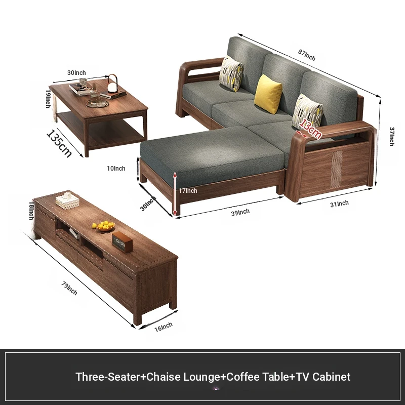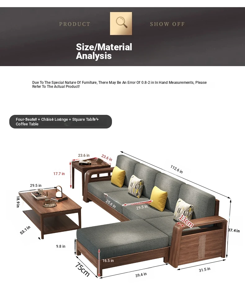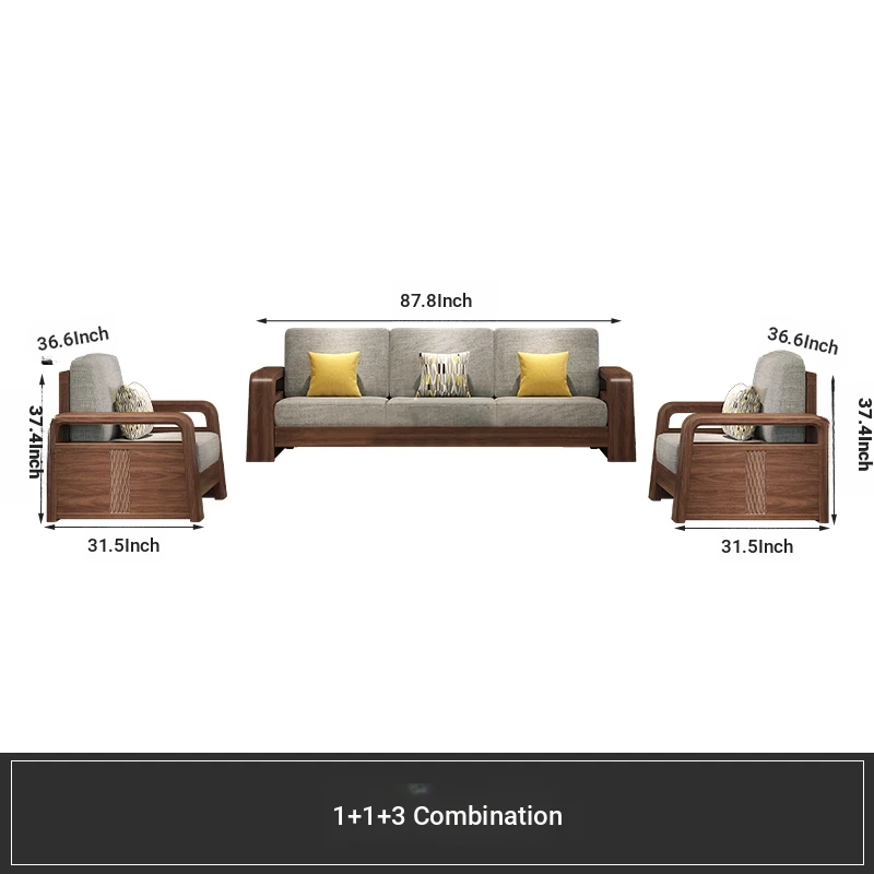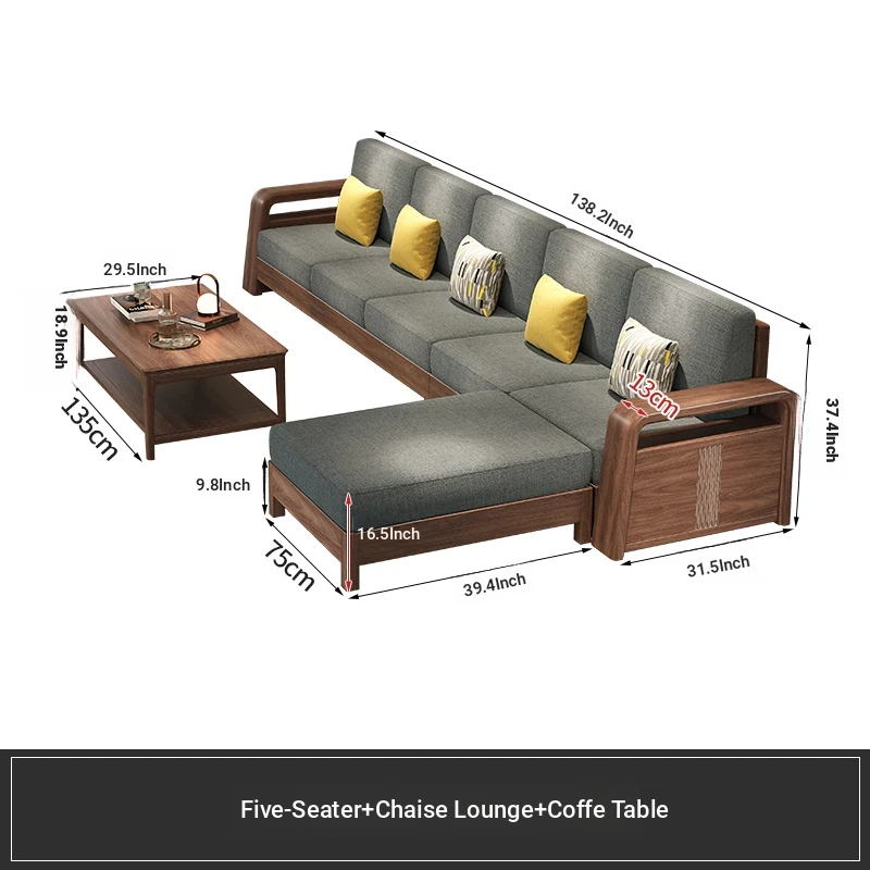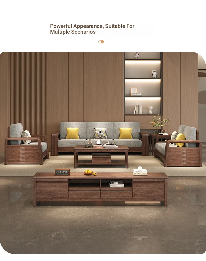 Stylish Black Walnut Solid Wood Sofa - New Chinese Style, Versatile Winter-Summer Corner Storage, Exquisite Carvings, Minimalist Design Perfect for Small Living Rooms