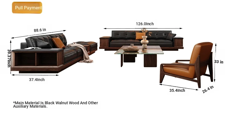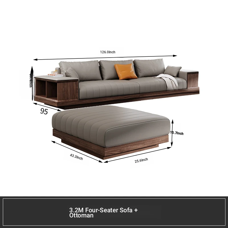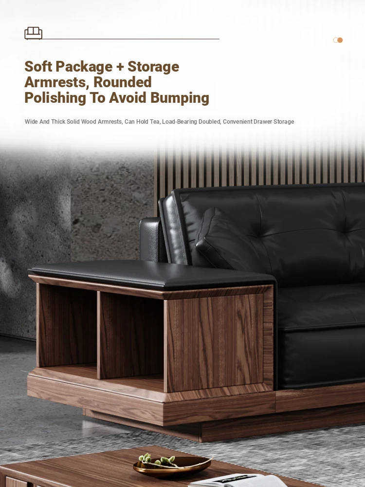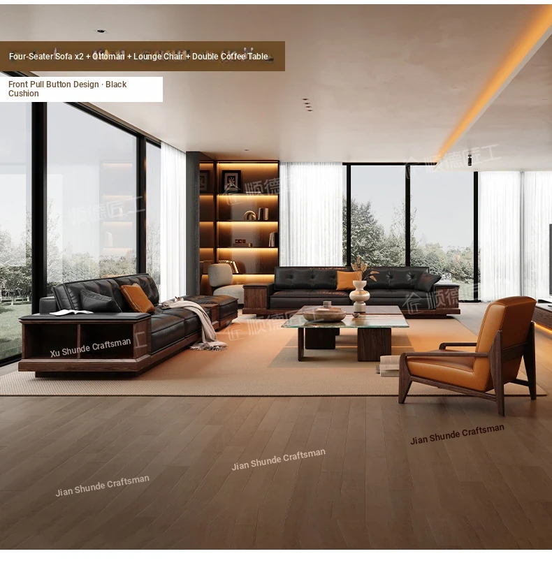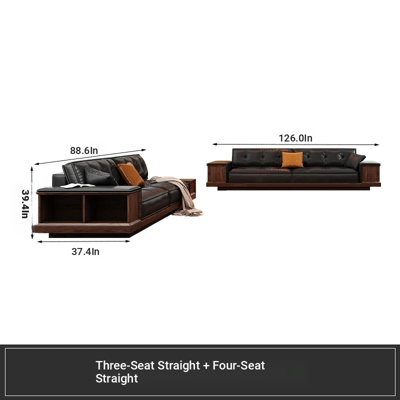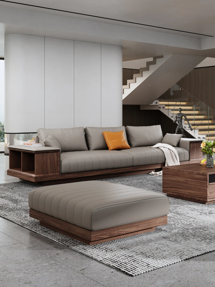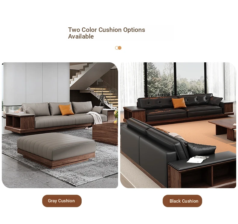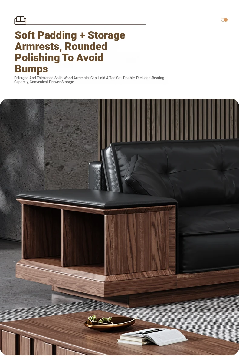Stylish Black Walnut Solid Wood Sofa with Genuine Leather - Modern Minimalist Design for All Room Sizes - Perfect for Luxury Villas and Living Rooms