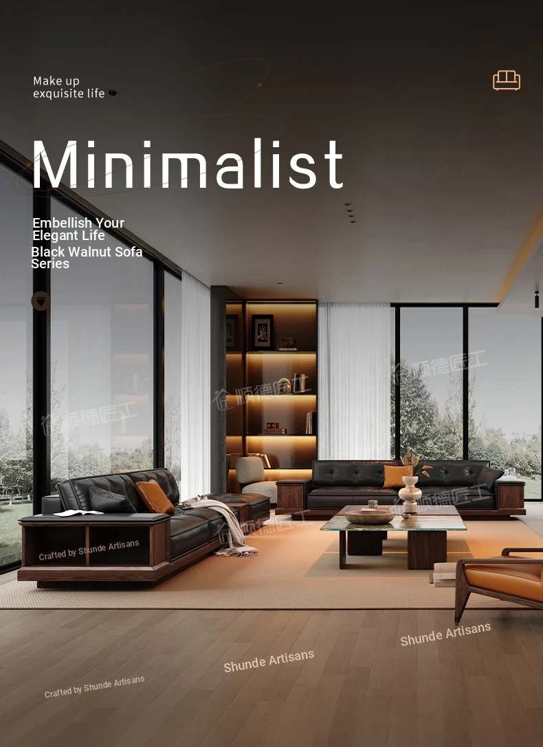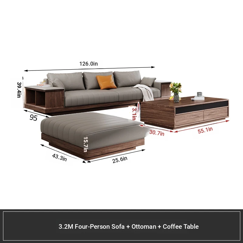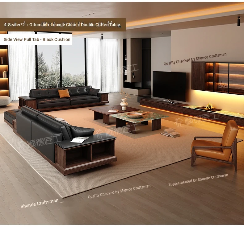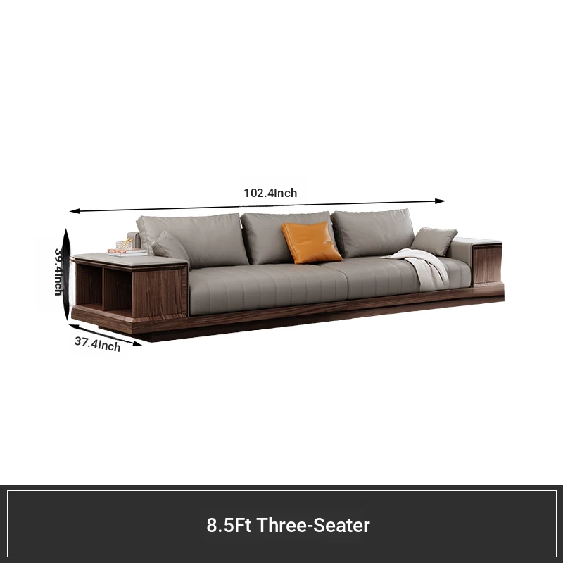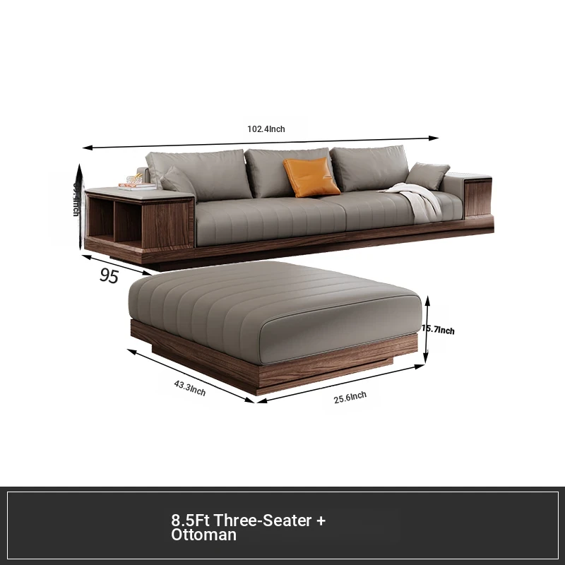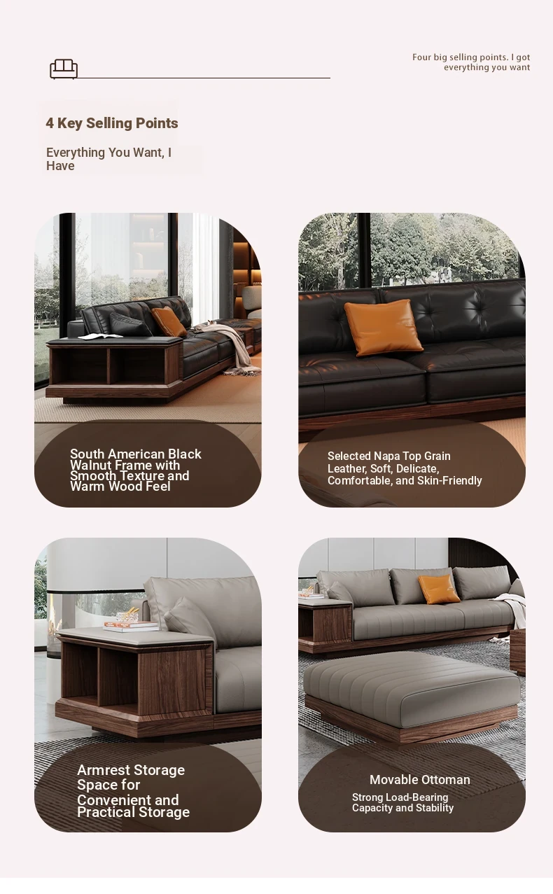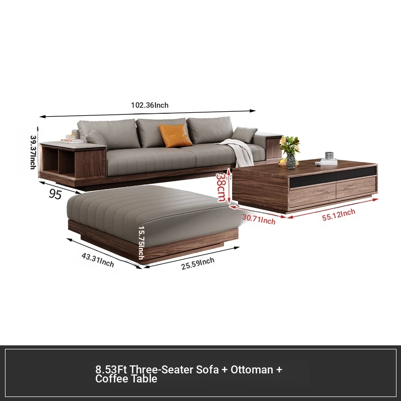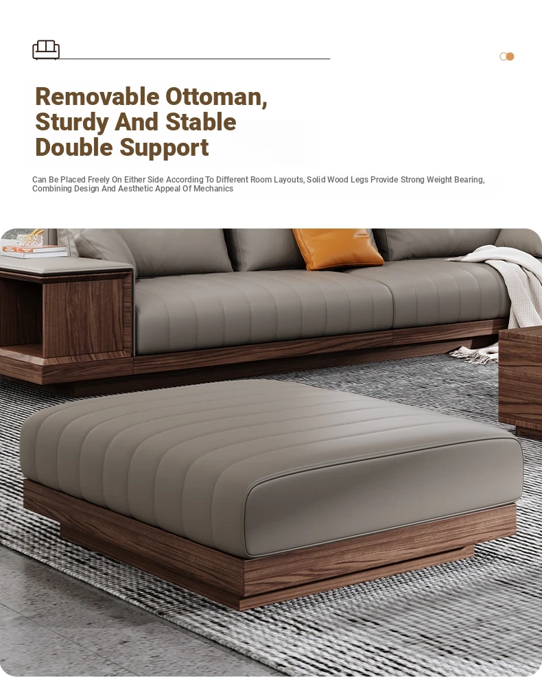 Stylish Black Walnut Solid Wood Sofa with Genuine Leather - Modern Minimalist Design for All Room Sizes - Perfect for Luxury Villas and Living Rooms