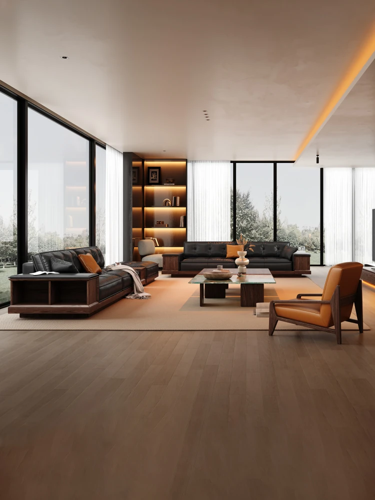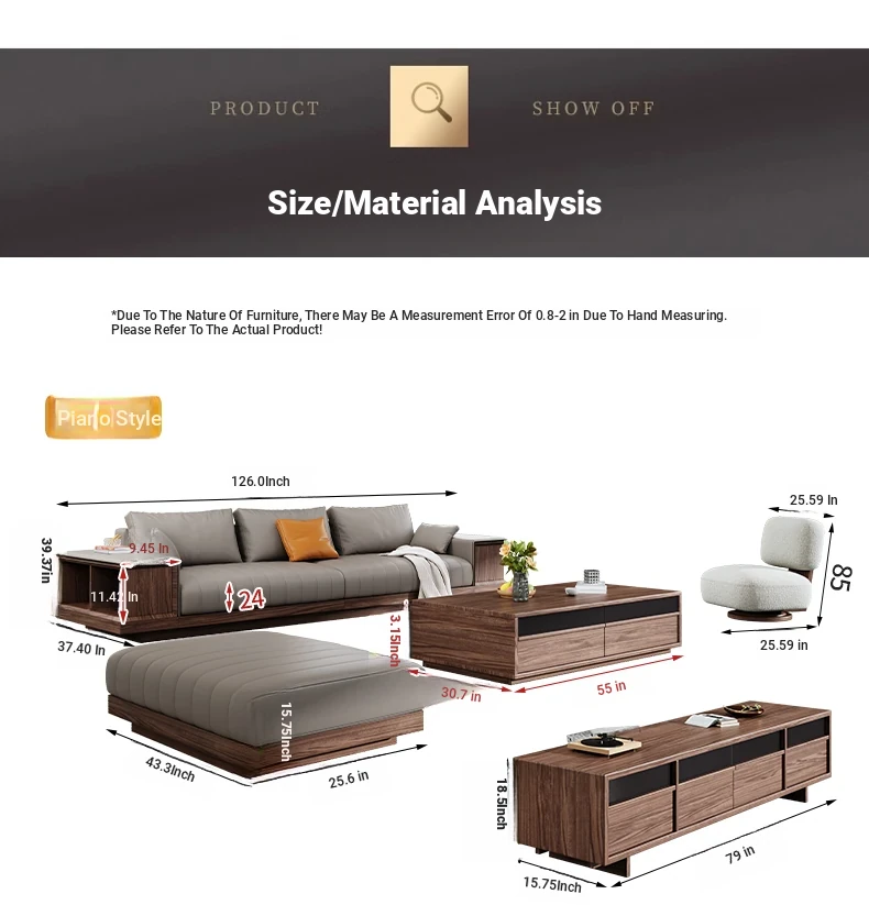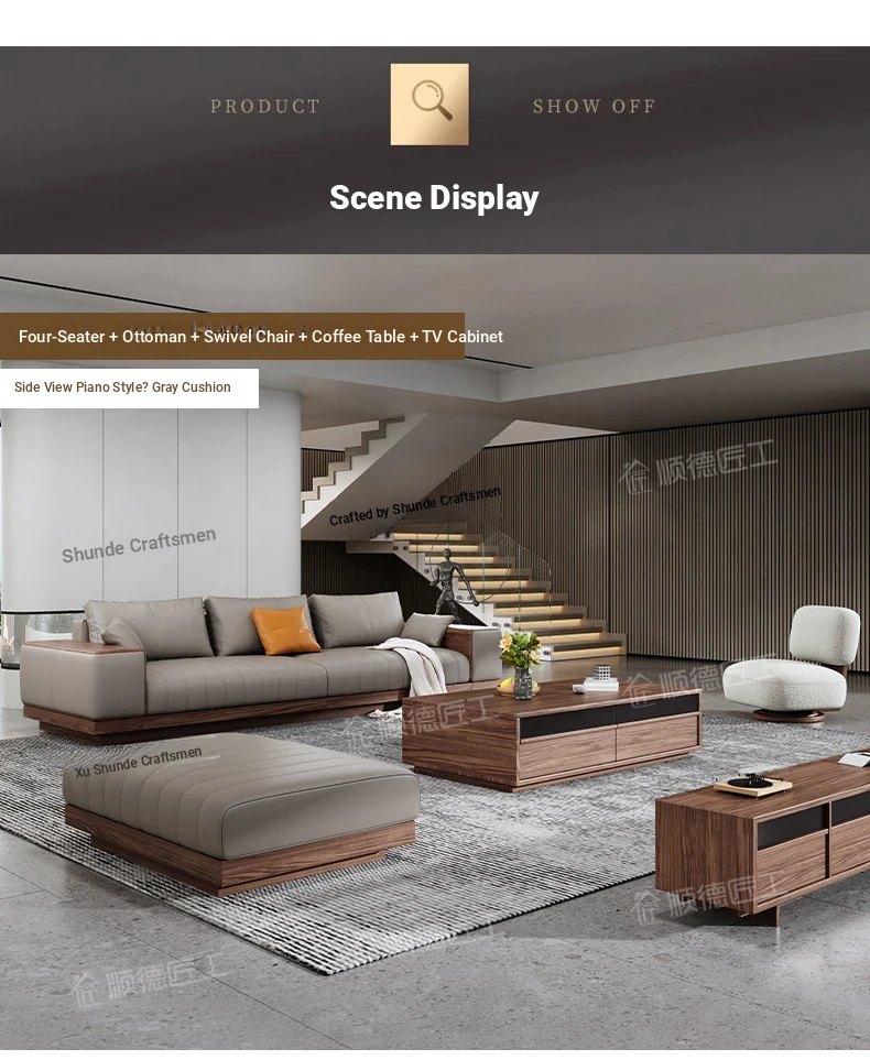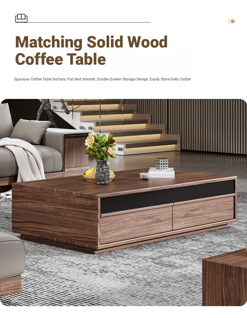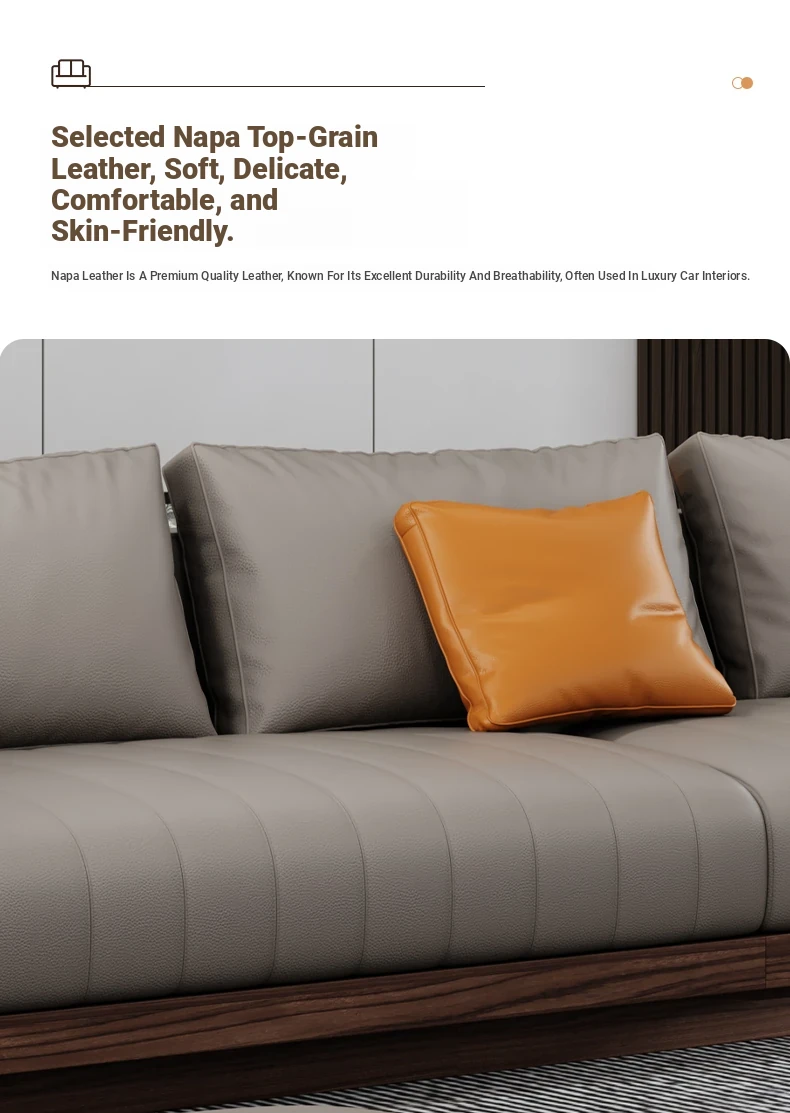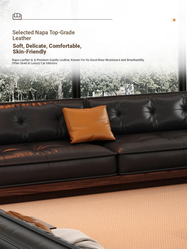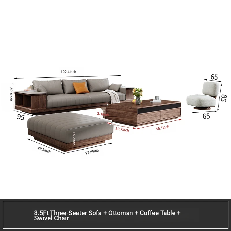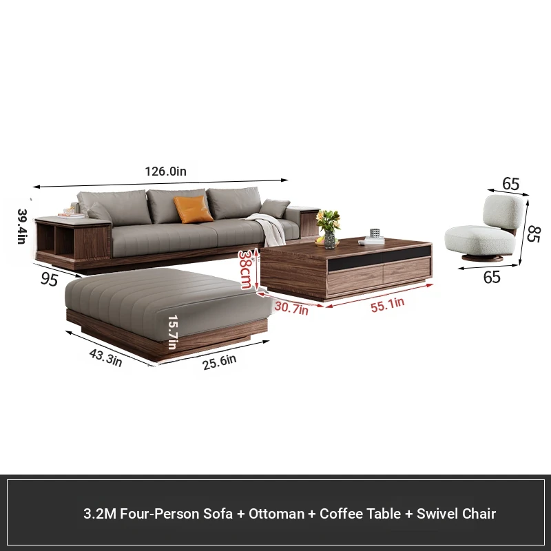 Stylish Black Walnut Solid Wood Sofa with Genuine Leather - Modern Minimalist Design for All Room Sizes - Perfect for Luxury Villas and Living Rooms